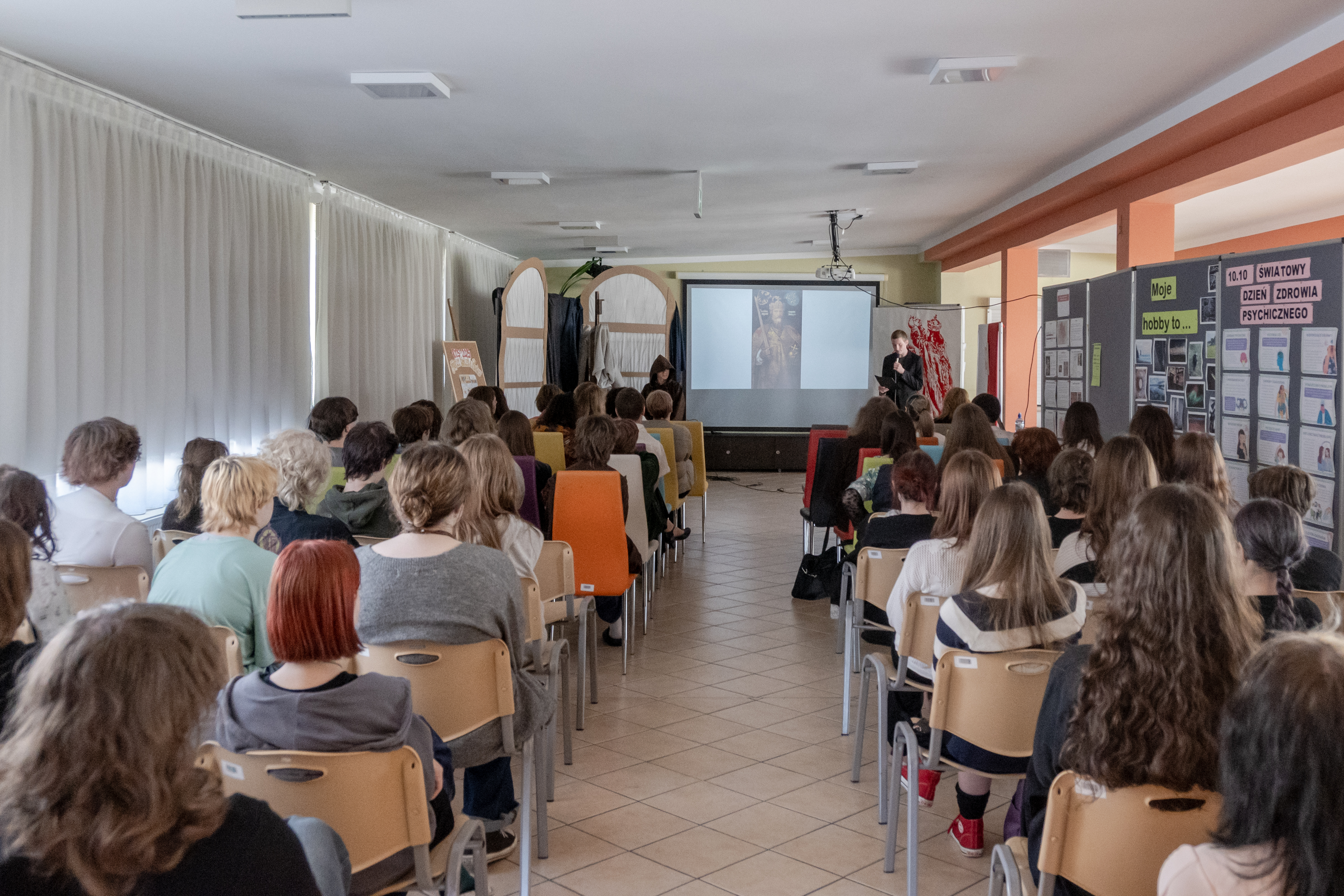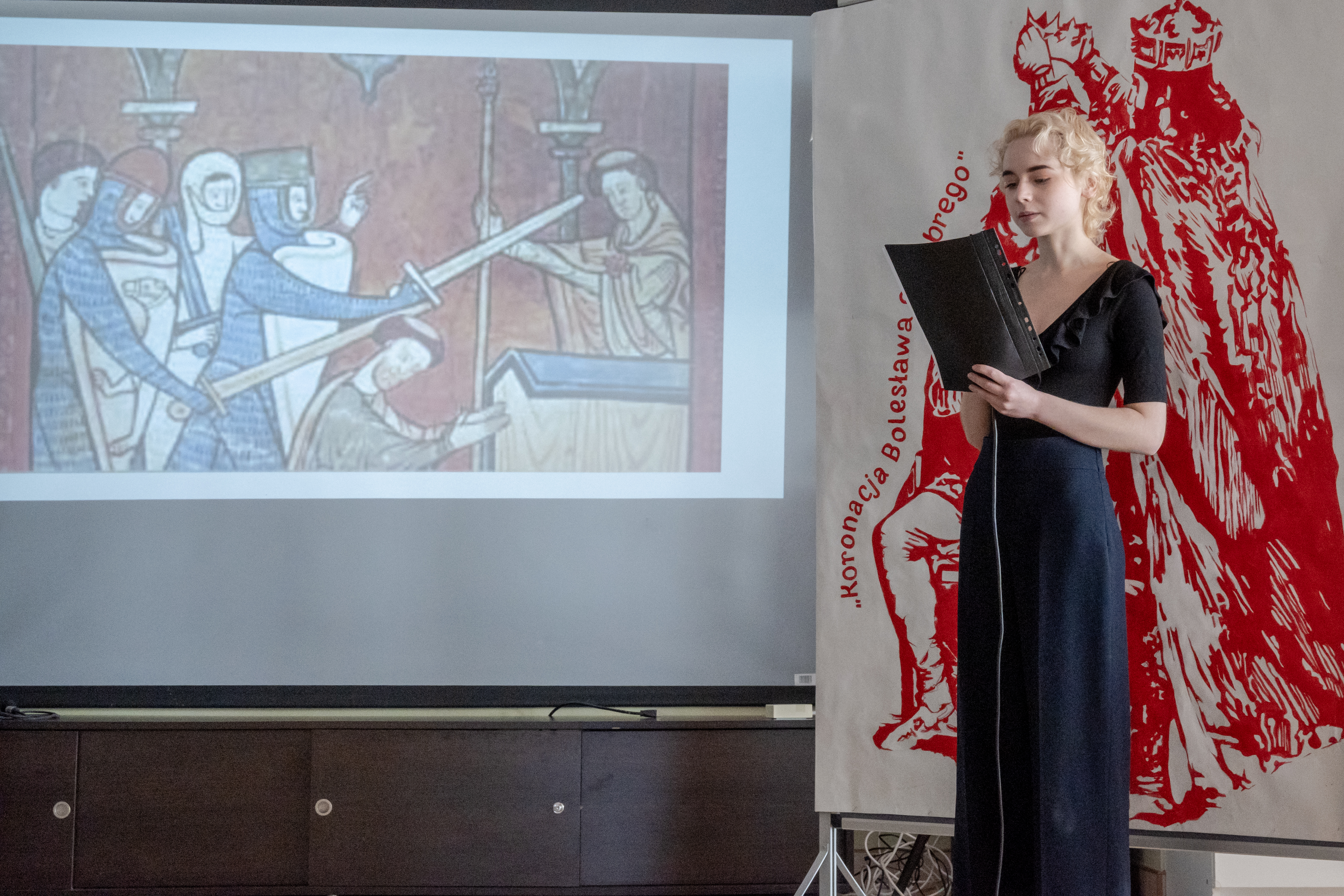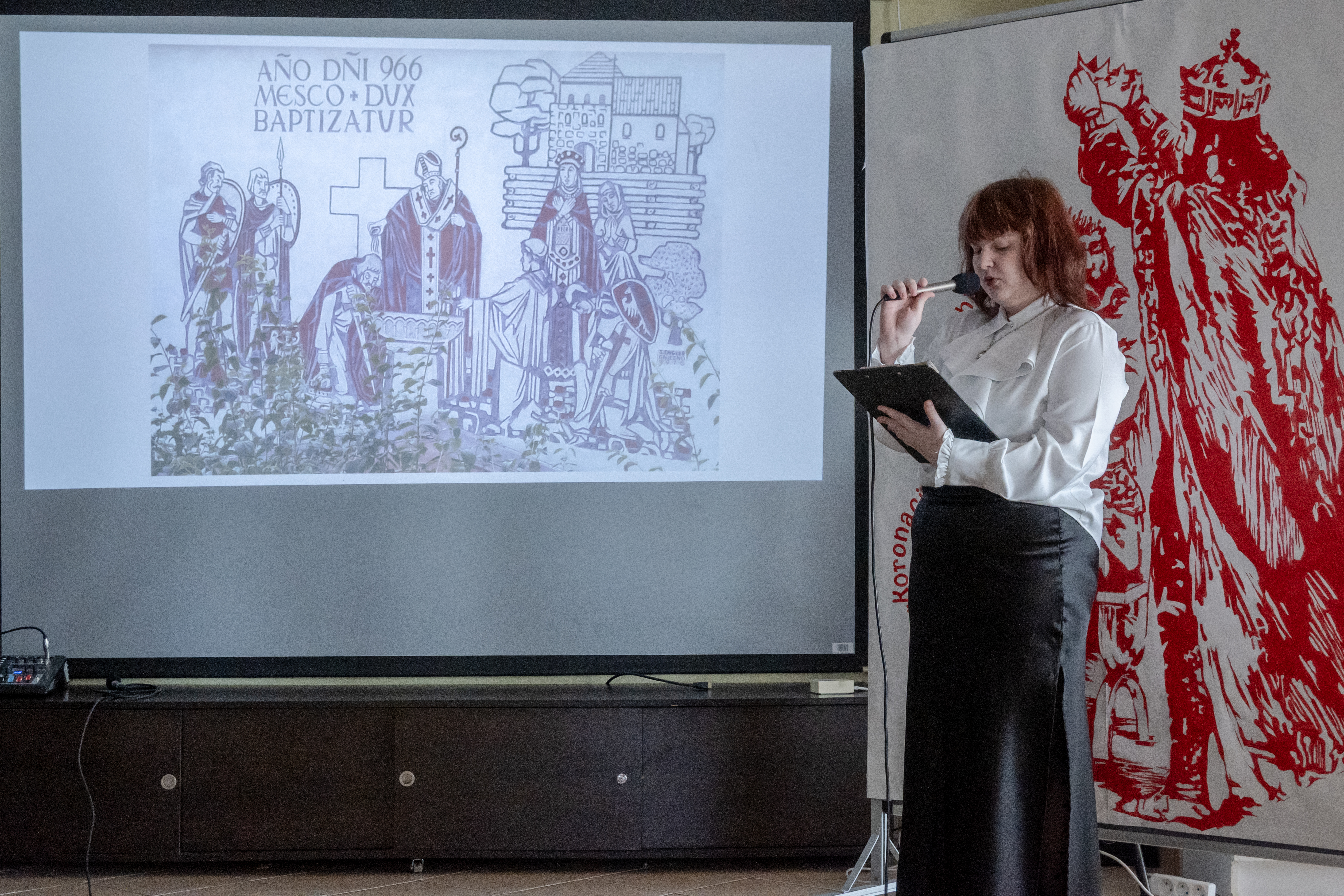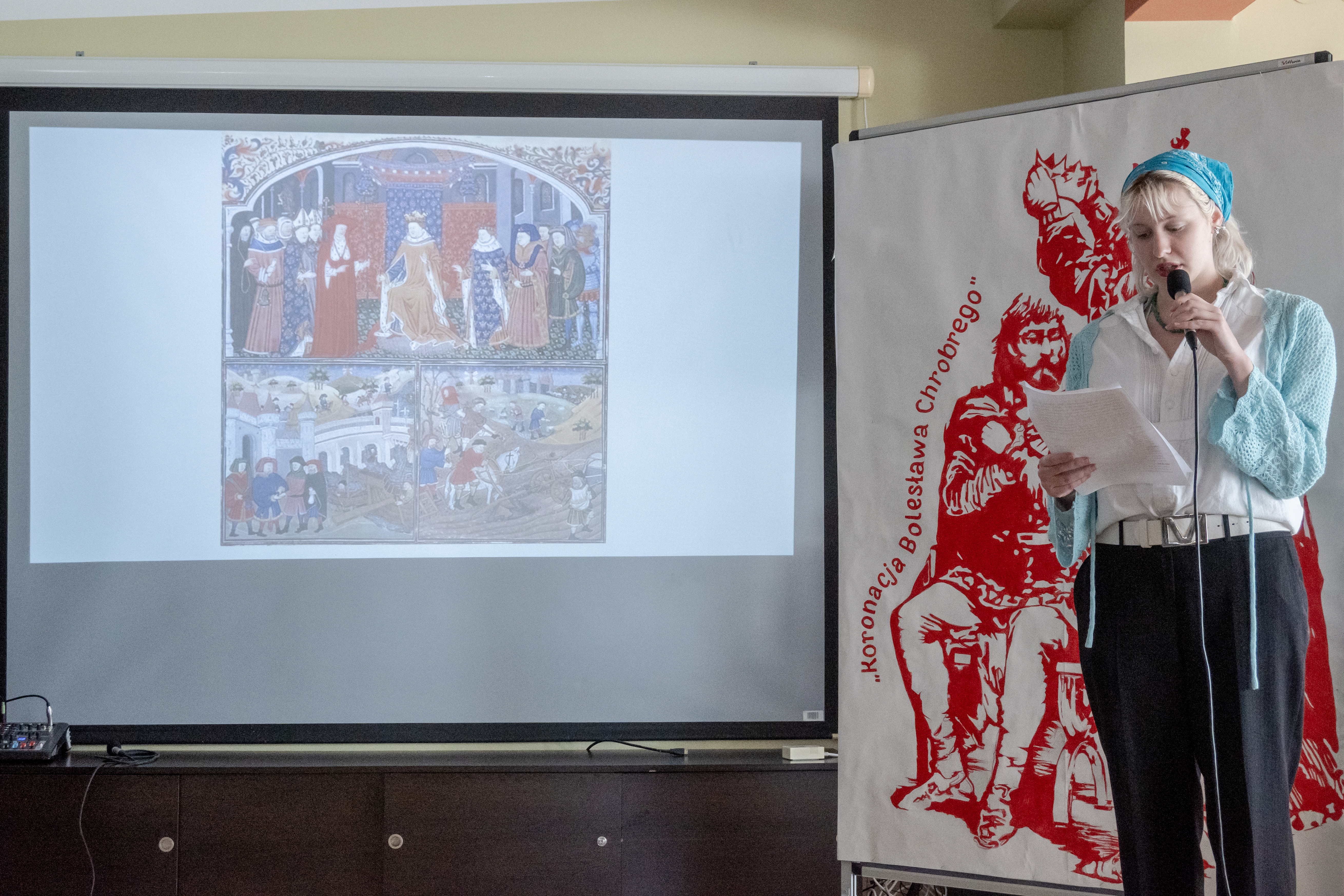Integralną częścią wydarzenia była scenografia wykonana podczas zajęć z rysunku i malarstwa. Uczniowie przygotowali tło stylizowane na średniowieczne skryptorium oraz dekoracje inspirowane motywem koronacji. Elementy te w znaczący sposób wzbogaciły narrację uroczystości i podkreśliły historyczny charakter całego przedsięwzięcia.