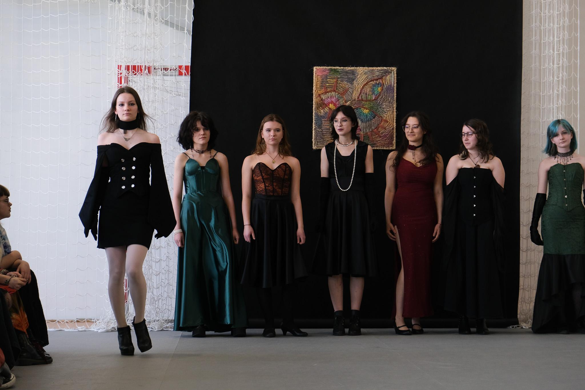 1. Emilia Czyżewska z klasy II, w kolekcji Ja tak sobie tylko szyję, inspirowała się dobrym krawiectwem, wiktoriańskimi gorsetami i ciekawą formą.