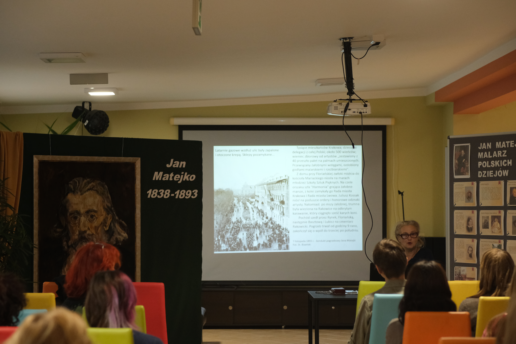 We wtorek, 7 listopada, w świetlicy internatu odbyło się spotkanie poświęcone osobie Jana Matejki. Opowieść o Mistrzu poprowadziła pani Agnieszka Opioła, pracownik Muzeum Pamiątek po Janie Matejce Koryznówka w Nowym Wiśniczu.