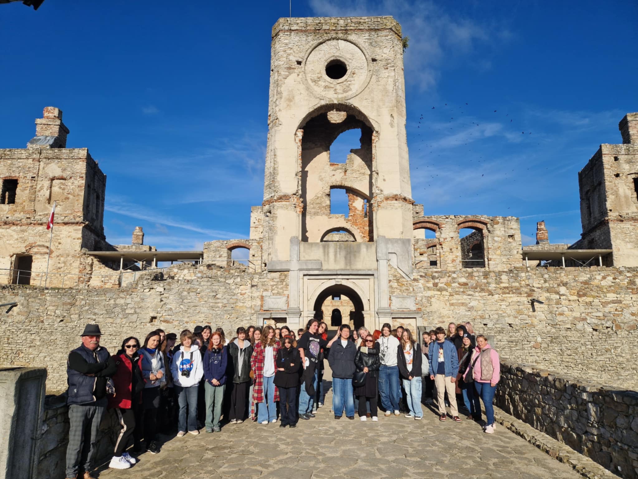 W środę, 23 października - piękny jesienny dzień grupa uczniów naszej szkoły spędziła na Ziemi Świętokrzyskiej. Realizacja programu wycieczki rozpoczęła się od zwiedzania ruin rezydencji pałacowej Krzyżtopór w Ujeździe. W jednej z sal balowych zatańczyliśmy nawet belgijkę.