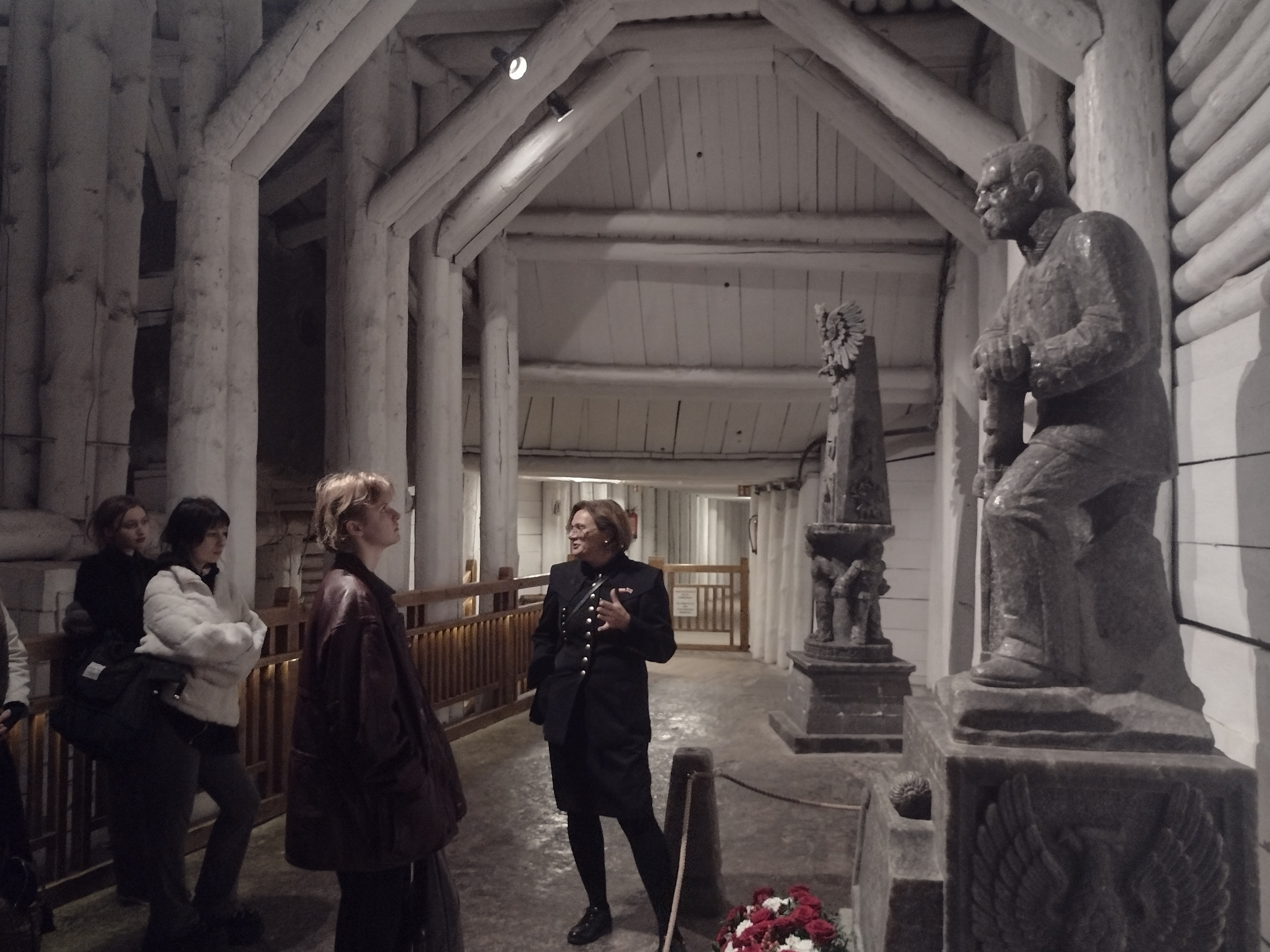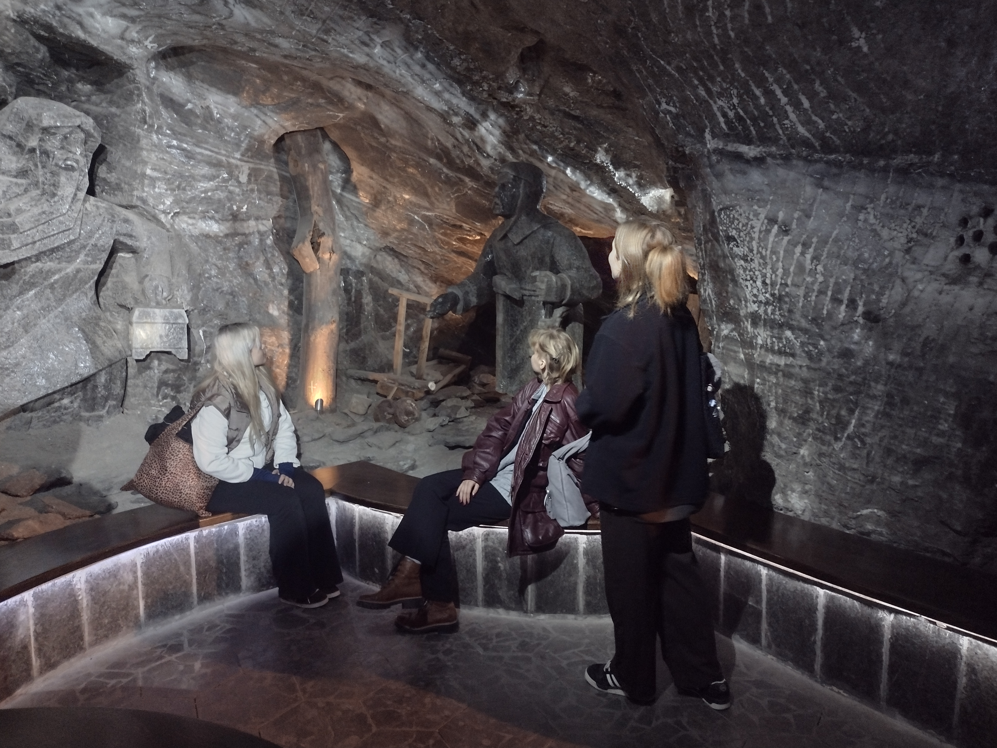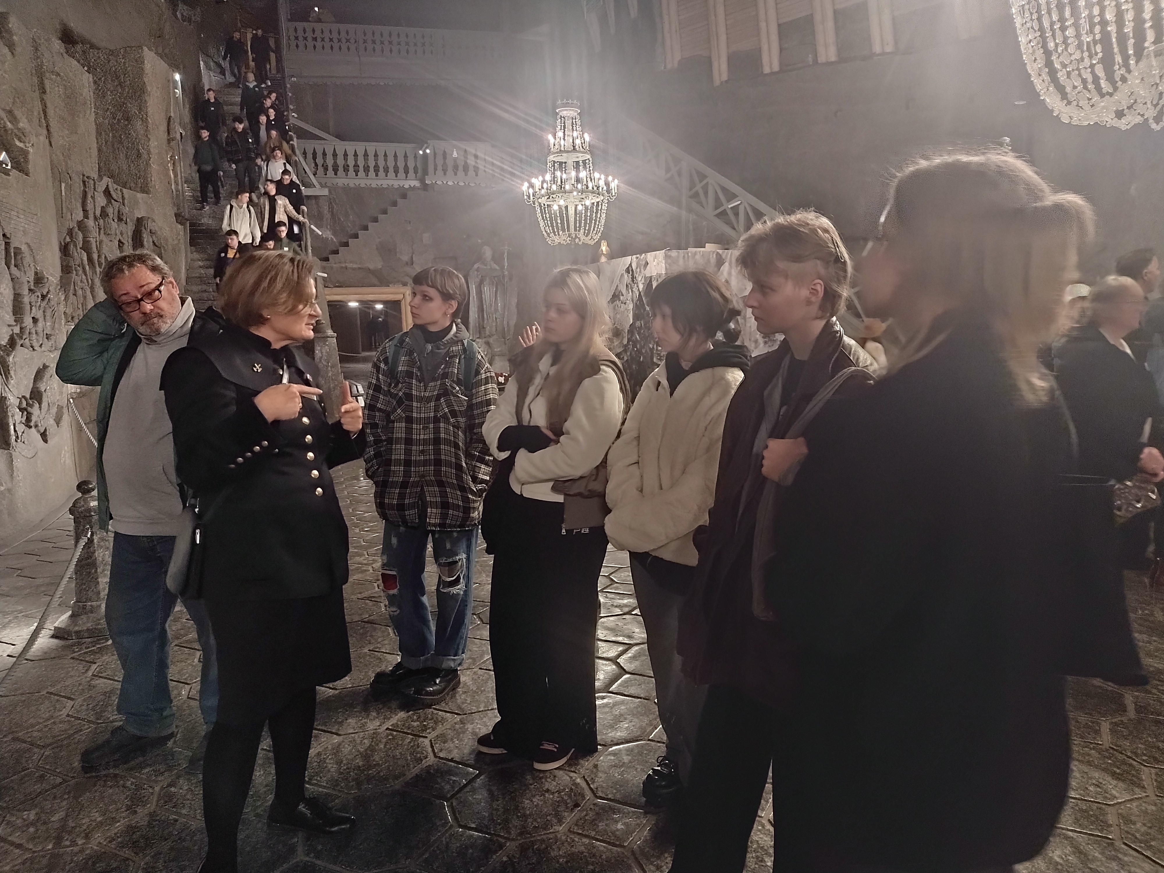 W ramach współpracy Wiśnickiego Plastyka i Kopalni Soli „Wieliczka” zaplanowane zostały warsztaty rzeźby w soli, realizowane w Wieliczce dla grupy naszych uczennic. W dniu 8 listopada 2024 sześć dziewcząt: Patrycja Karwat, Matylda Krzywda, Maja Olszewska, Wiktoria Piksa, Małgorzata Poznańska oraz Katarzyna Żabińska wraz z nauczycielem rzeźby Mirosławek Rekieciem wyruszyło do Wieliczki.