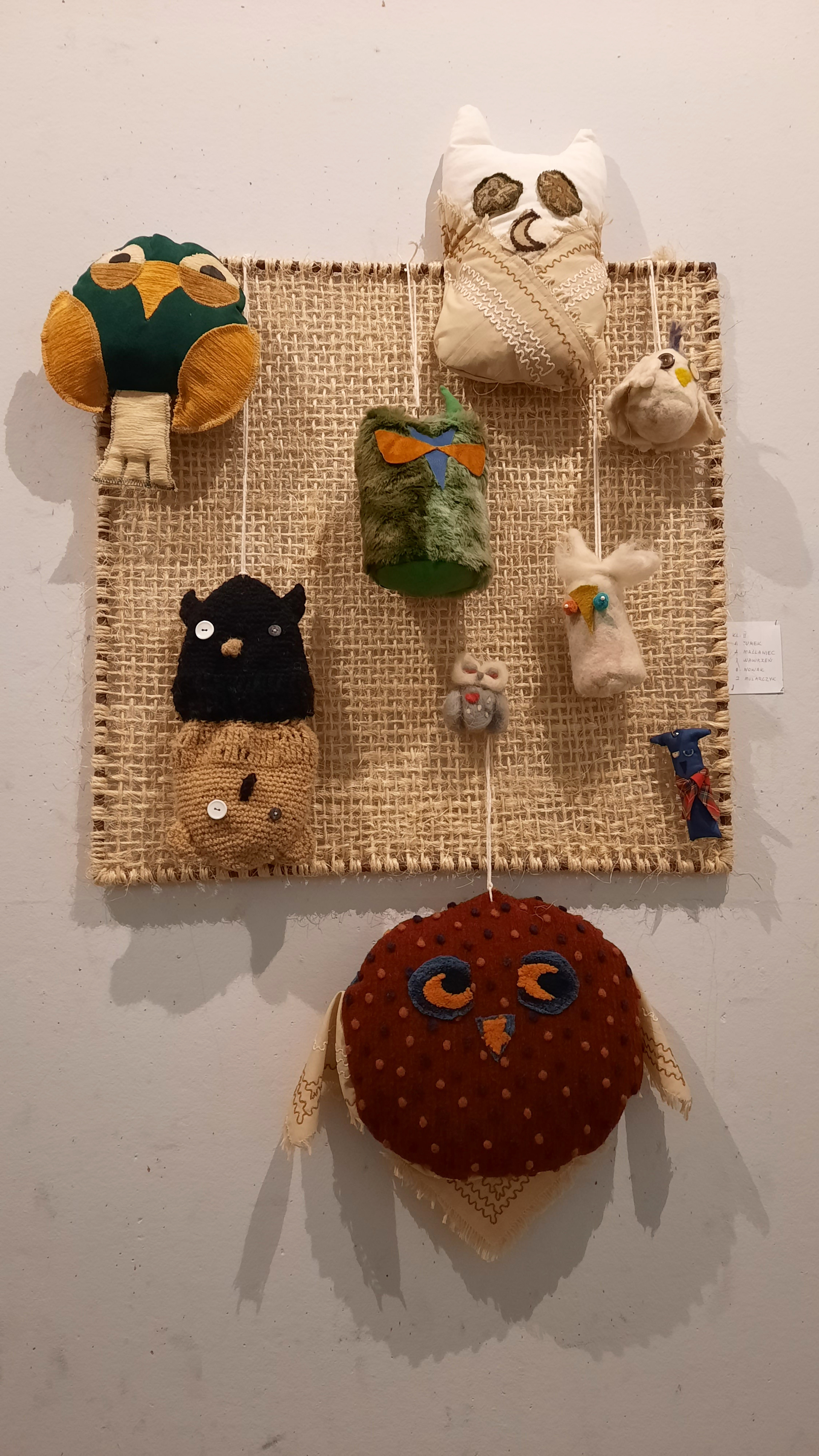 TKA to cykl TKACKICH KOMPOZYCJI AUTORSKICH i 13 grudnia br. odbyło się jego kolejne otwarcie. Zostały pokazane indywidualne prace uczniów klasy I. i II. w technice malowania na jedwabiu. To barwne, fantazyjne kompozycje o tematyce wiśnickiego zamku. Dodatkowo uczniowie z klasy II. tkaniny artystycznej zaprezentowali własnoręcznie wykonane miękkie formy przestrzenne, a tematem była sowa.
