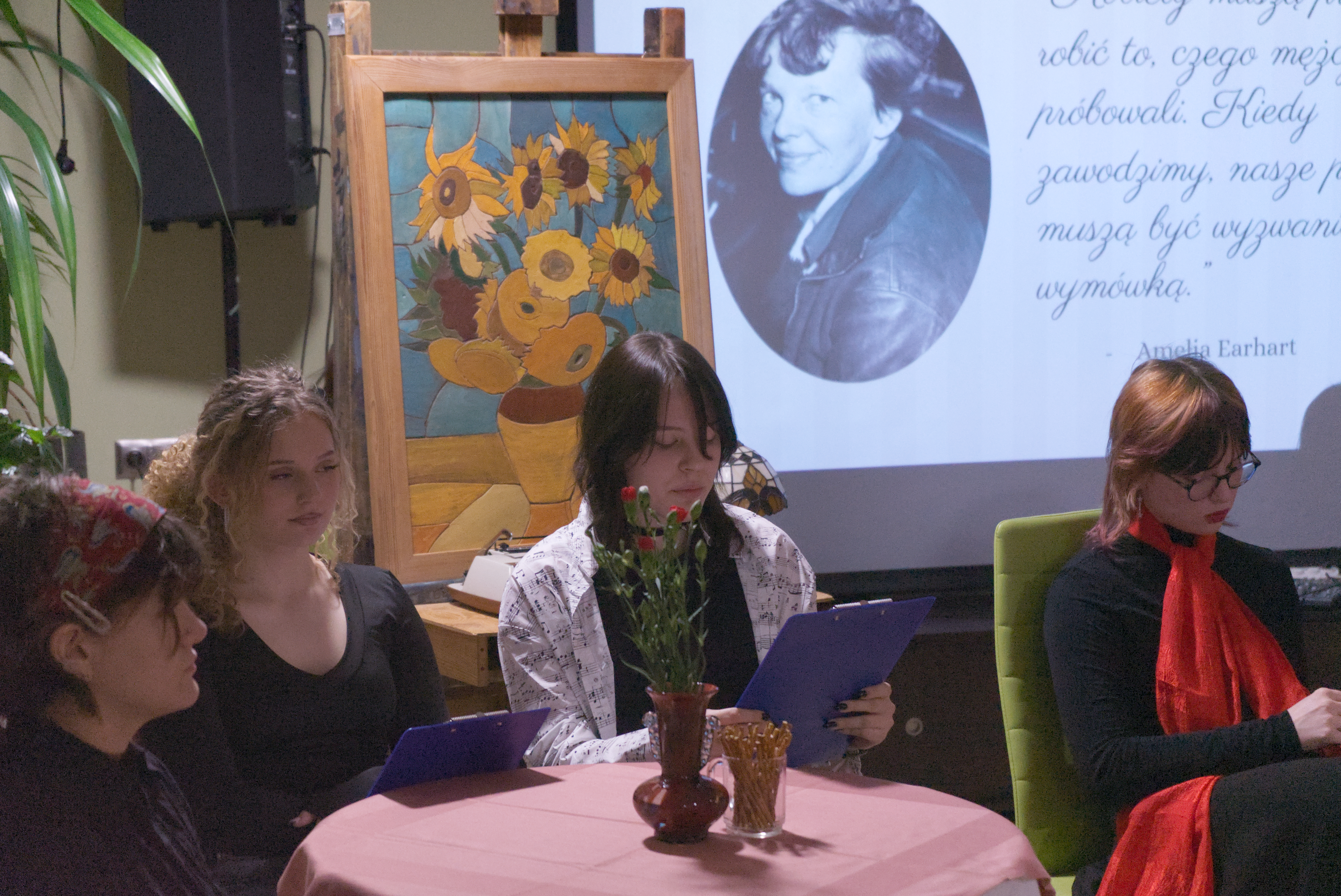 Występująca młodzież ze zrozumieniem przybliżyła publiczności znane i lubiane teksty poetyckie, recytując je w różnych językach: polskim, angielskim, francuskim, hiszpańskim i ukraińskim. Nie zabrakło również wielu ciekawostek na temat życia pisarek, dzięki którym można było dostrzec w nich nie tylko genialne osobowości literackie, ale przede wszystkim kobiety: wrażliwe, ciekawe świata i świadome swojej kobiecości.