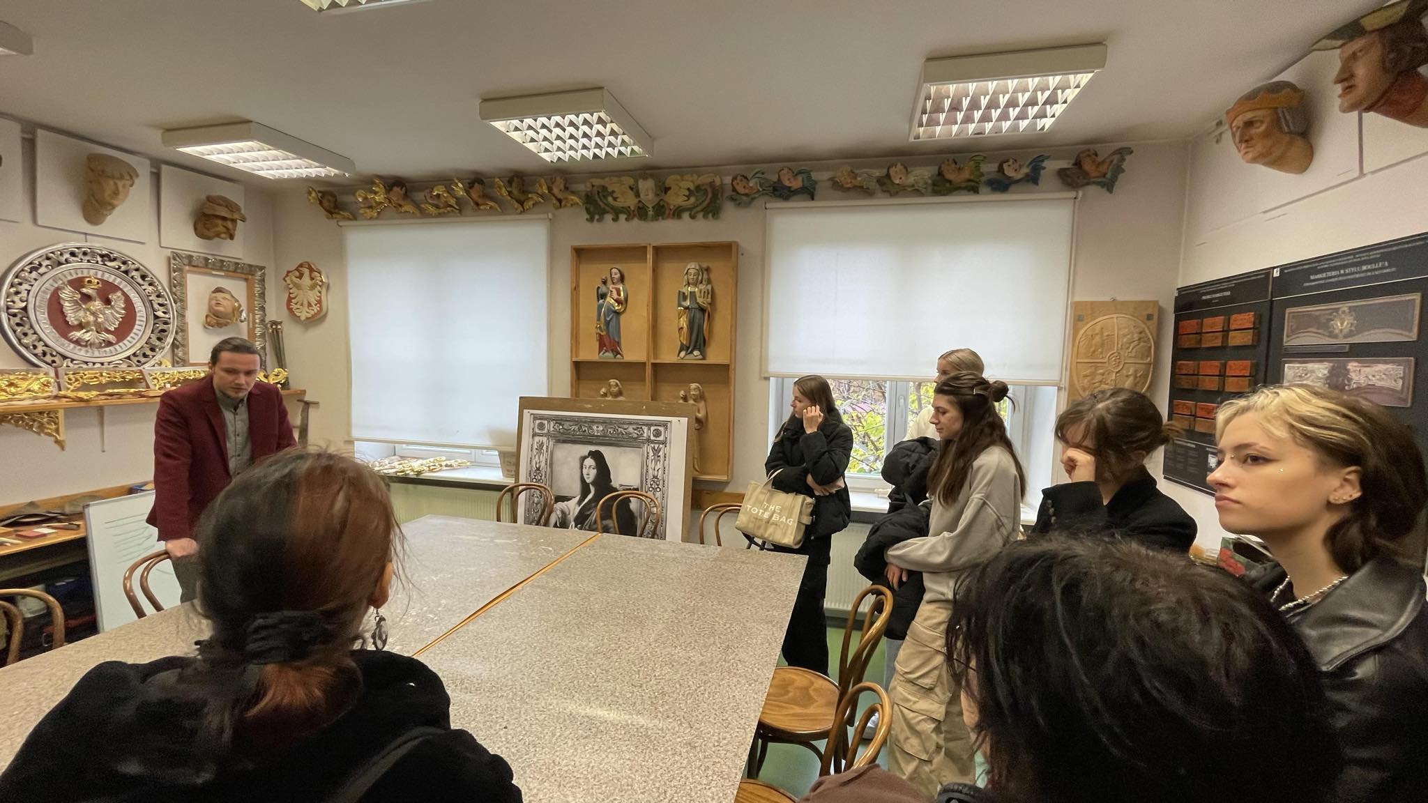 W dniu 15 listopada 2023 r. grupa uczniów klasy czwartej specjalizacji renowacja elementów architektury wraz z nauczycielami, Andrzejem Strachem i Andrzejem Kłębkiem zwiedzała pracownie na ASP w Krakowie.