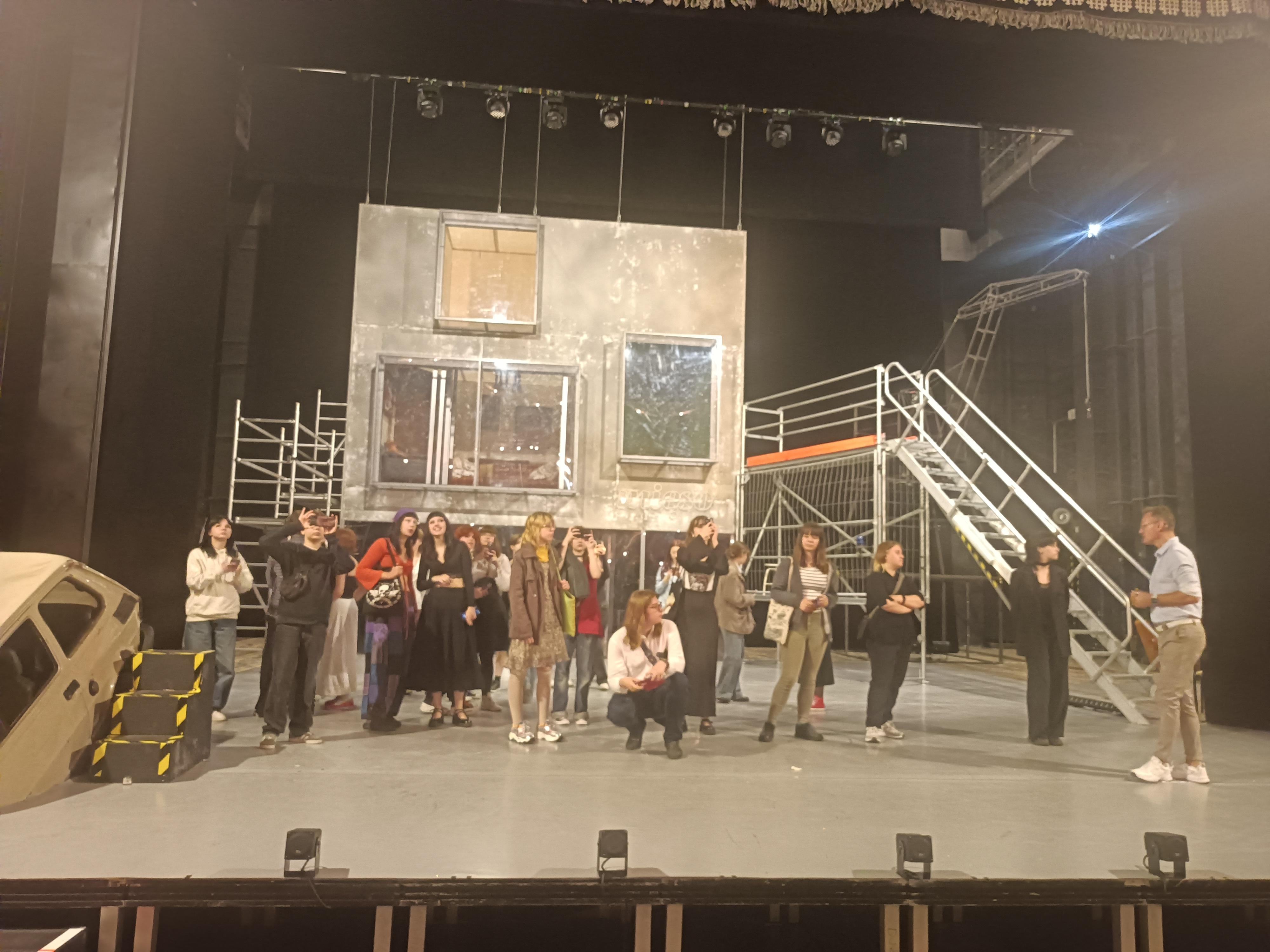 Po zapoznaniu się z historią teatru przyszedł czas na przybliżenie życia za kulisami; mieliśmy możliwość przebywania na scenie, obejrzenia scenografii, rekwizytów i garderoby, której ściany zdobią podpisy znanych osób ze świata kultury, literatury, a nawet polityki.