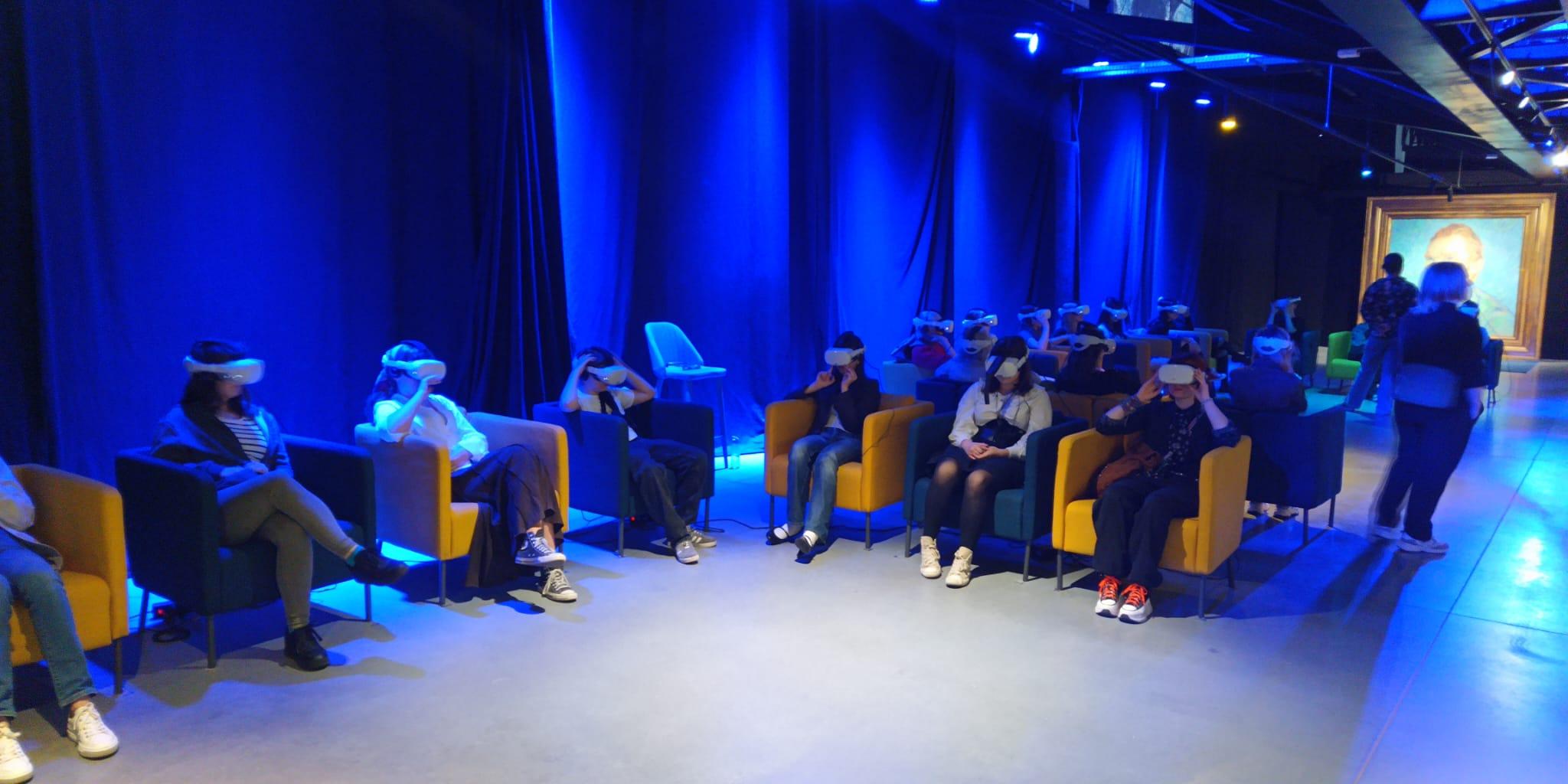 Po wykorzystaniu czasu wolnego udaliśmy się do Hangaru Czyżyny, by zanurzyć się w multimedialny świat twórczości holenderskiego artysty Vincenta Van Gogha. Obejrzeliśmy reprodukcje najbardziej znanych dzieł tj. „Słoneczniki”, „Gwieździsta noc nad Rodanem”. Zwiedzanie umilała nam nastrojowa muzyka, która współgrała z atmosferą postimpresjonistycznego świata. Jak widać na zdjęciach była to podróż w zupełnie inny wymiar.