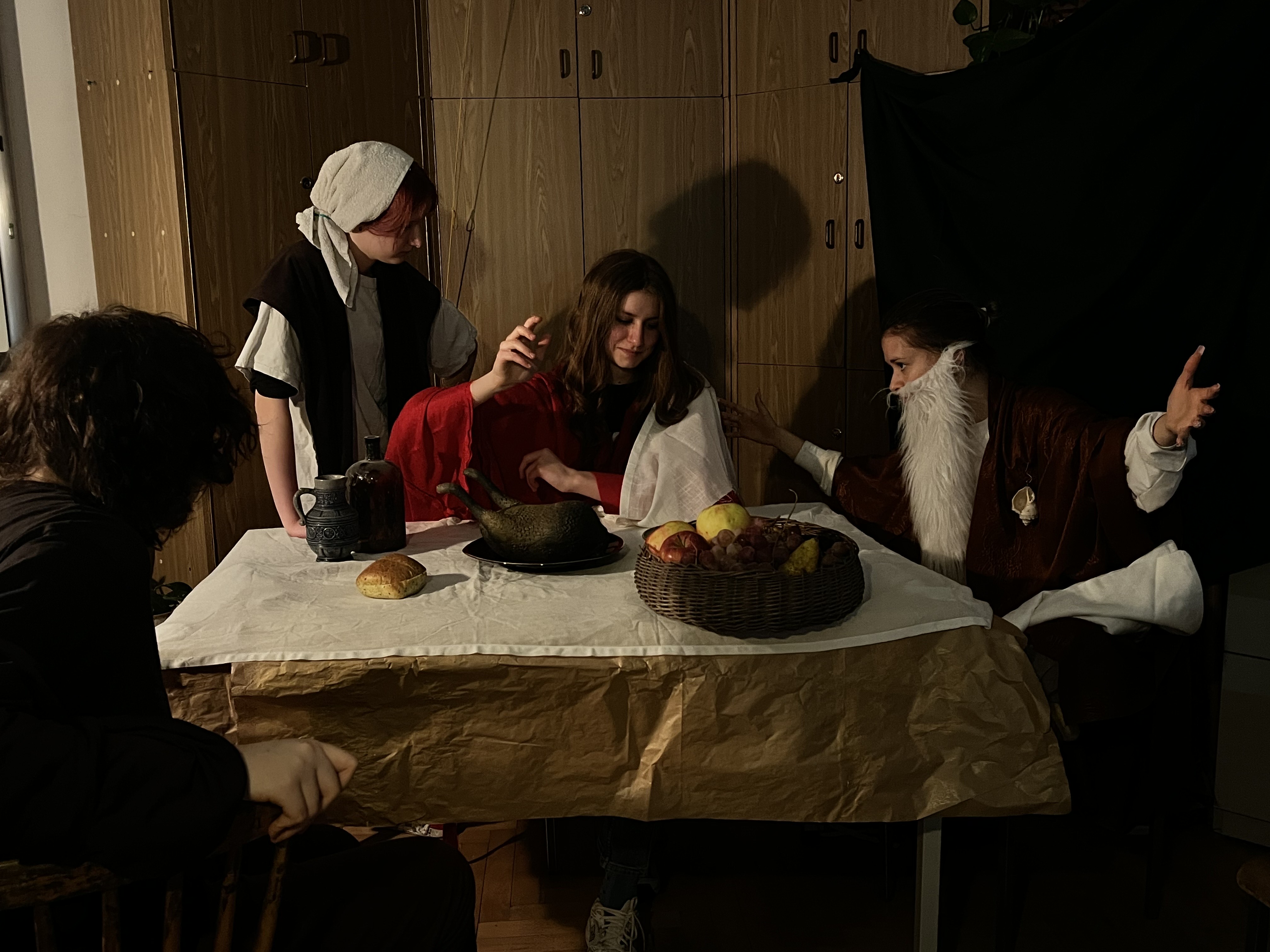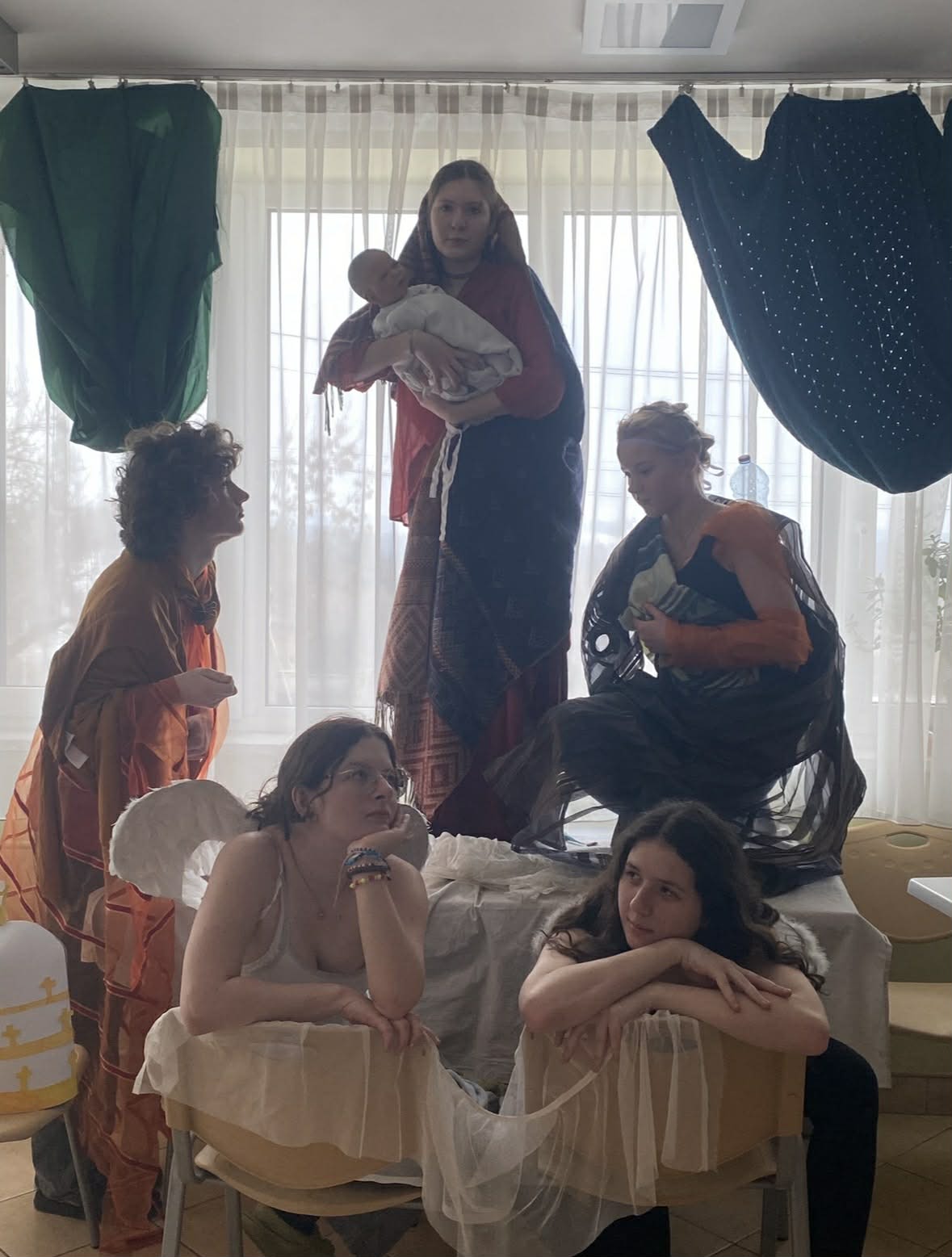 Uczniowie podczas lekcji historii sztuki odtwarzali wybrane dzieła w formie tzw. „żywych obrazów”. Z dużym zaangażowaniem przygotowywali stroje, makijaże oraz odpowiednie rekwizyty. Starannie poszukiwali także właściwego miejsca, które najlepiej odda charakter i tło oryginalnych kompozycji.