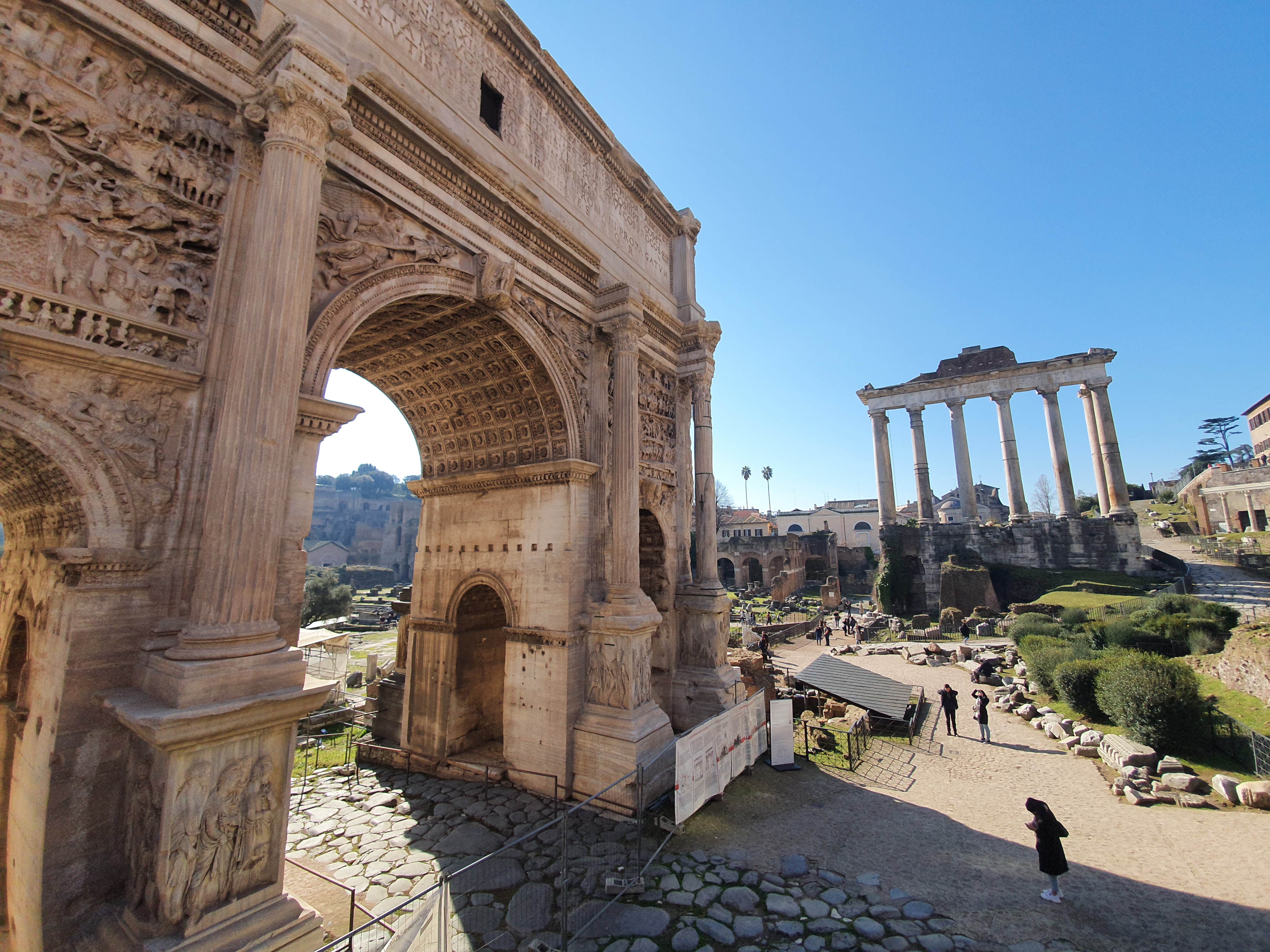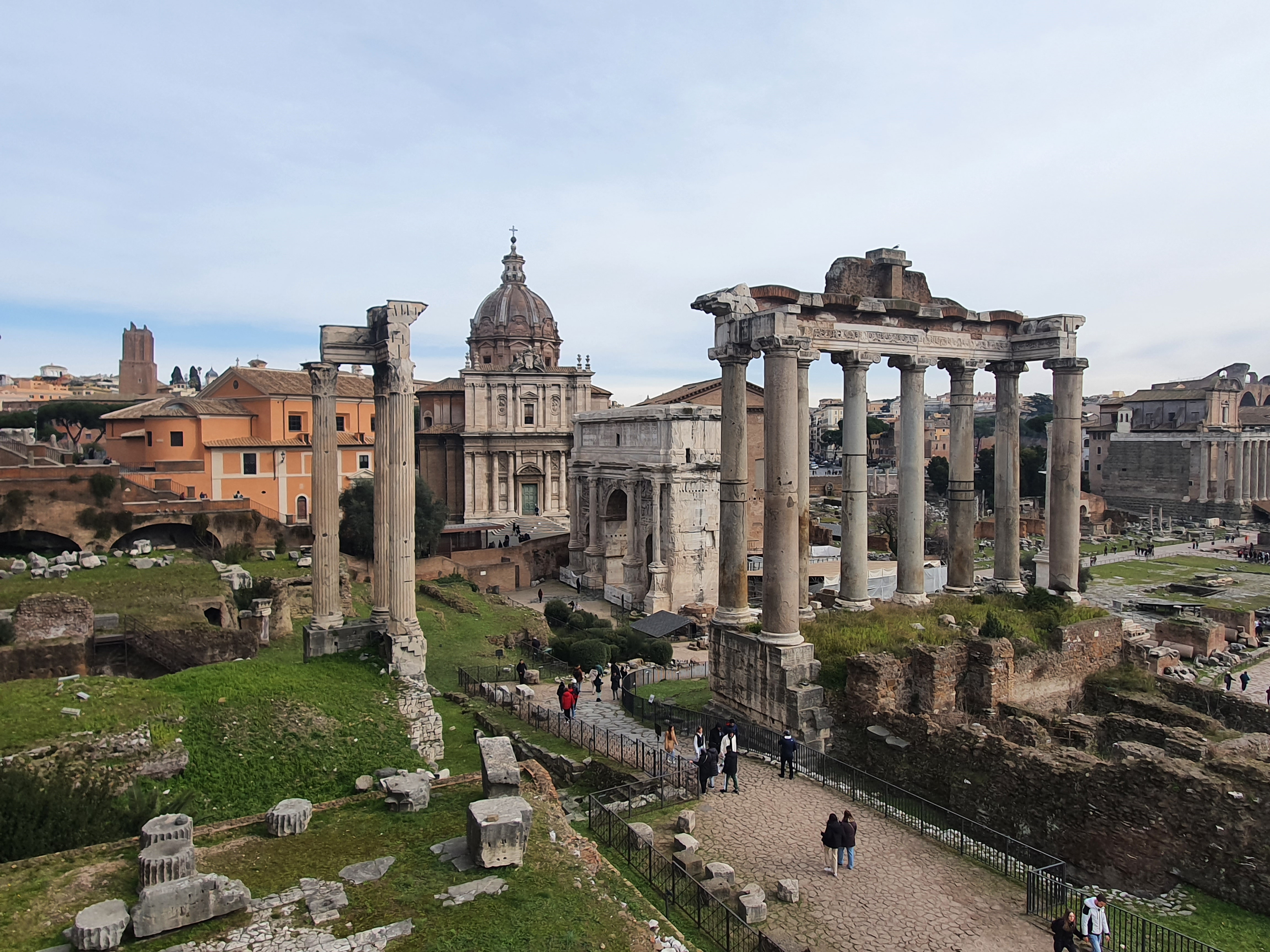 Ostatni dzień pleneru - poniedziałek 13 lutego przeznaczyliśmy na zwiedzanie zabytków starożytnego Rzymu, czyli Forum Romanum wraz z Palatynem oraz Koloseum. Najpierw obejrzeliśmy zespół zabytkowych ruin z perspektywy ulicy, ustalając położenie poszczególnych budowli, które przetrwały do naszych czasów w stanie niepełnym. Po godzinie 13 weszliśmy do Cyrku Flawiuszy, czyli Koloseum, gdzie zapoznaliśmy się z architekturą i historią związaną z funkcjonowaniem obiektu. Czas zwiedzania Forum Romanum wraz z Villą Farnese i jej pięknym ogrodem położonym na Palatynie był przeznaczony jednocześnie na plener artystyczny. Młodzież notowała urokliwe historyczne zakątki za pomocą ołówka, pędzla i aparatu fotograficznego. Pogrążonych w zadumie i pracy młodych adeptów sztuki zaalarmowały gwizdki i nawoływania strażników wzywające do opuszczenia zabytkowego terenu. W drodze powrotnej zatrzymaliśmy się w kultowym sklepie Hard Rock celem nabycia stylowych pamiątek. Jak co dzień w porze wieczornej udaliśmy się na posiłek do zaprzyjaźnionej restauracji Goose położonej w pobliżu Bazyliki św Piotra oraz miejsca naszego zakwaterowania. Po wieczornym przeglądzie prac udaliśmy się na spoczynek.