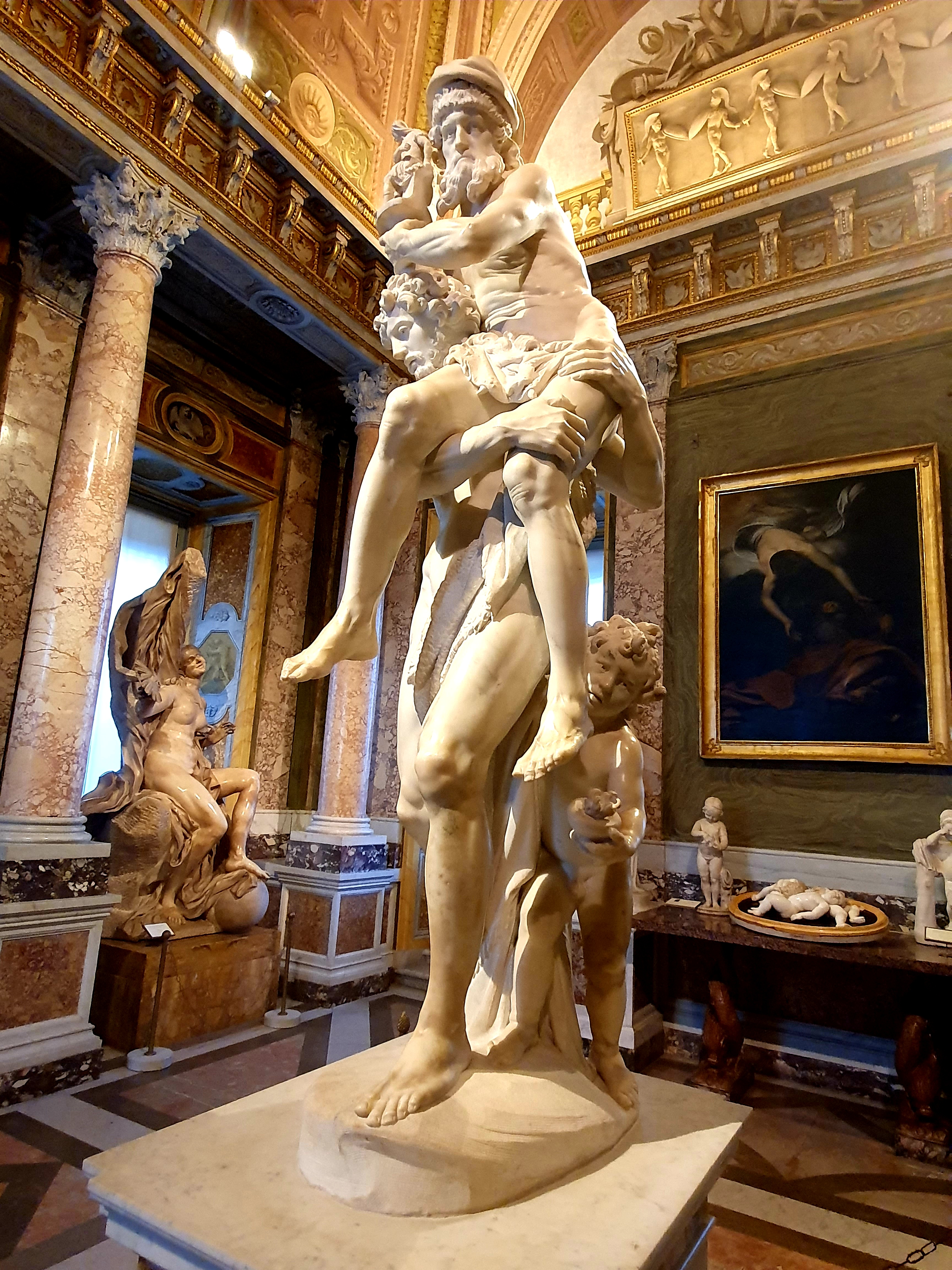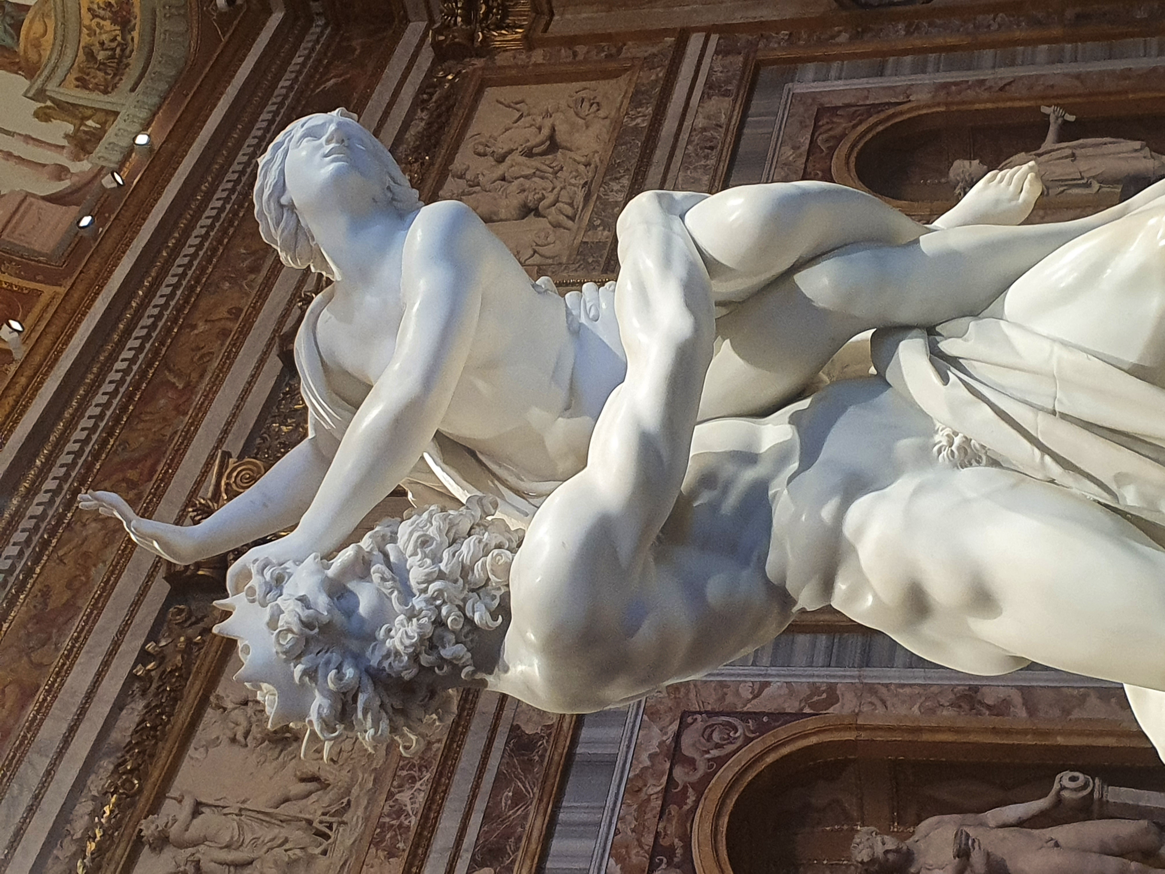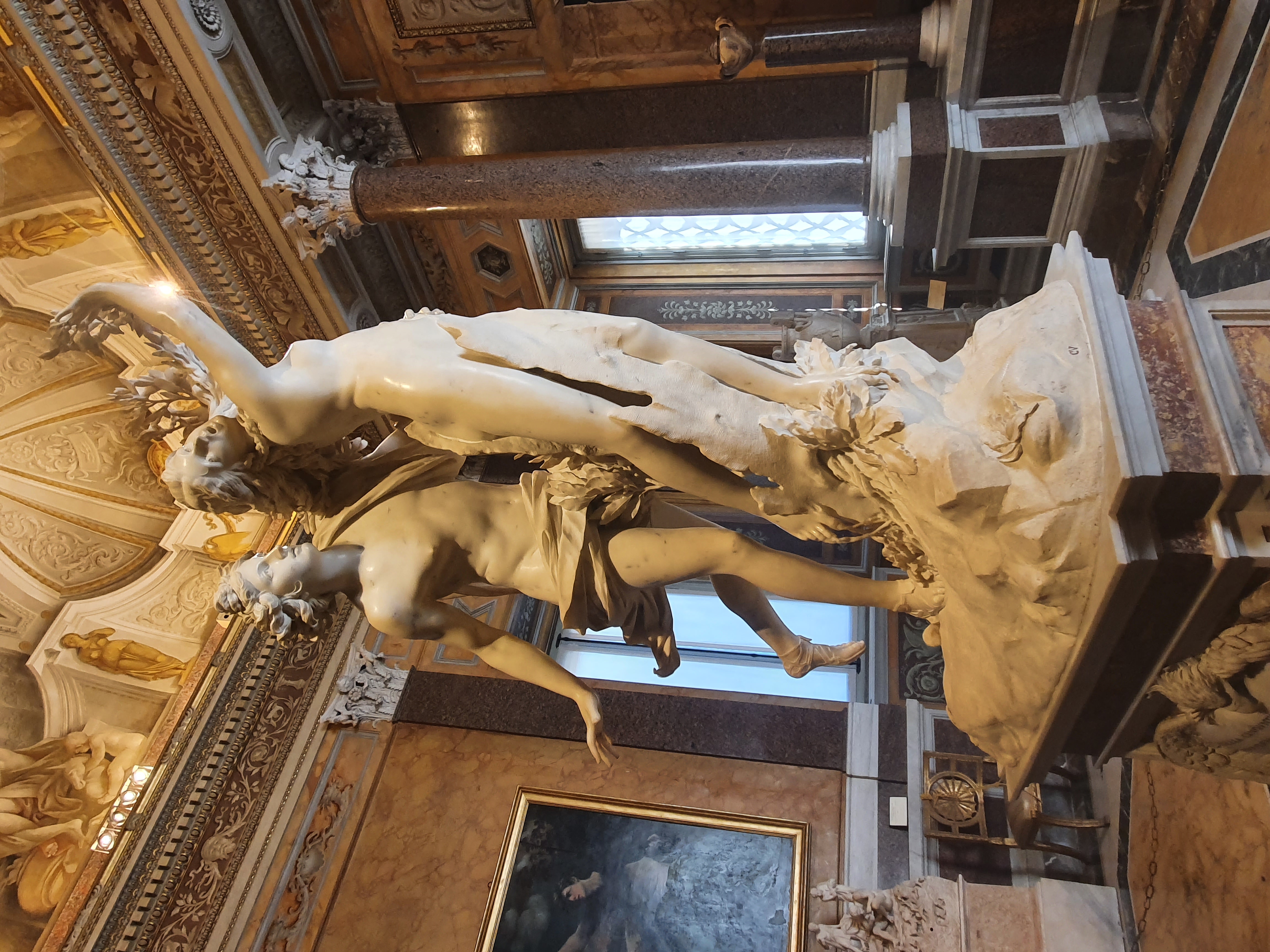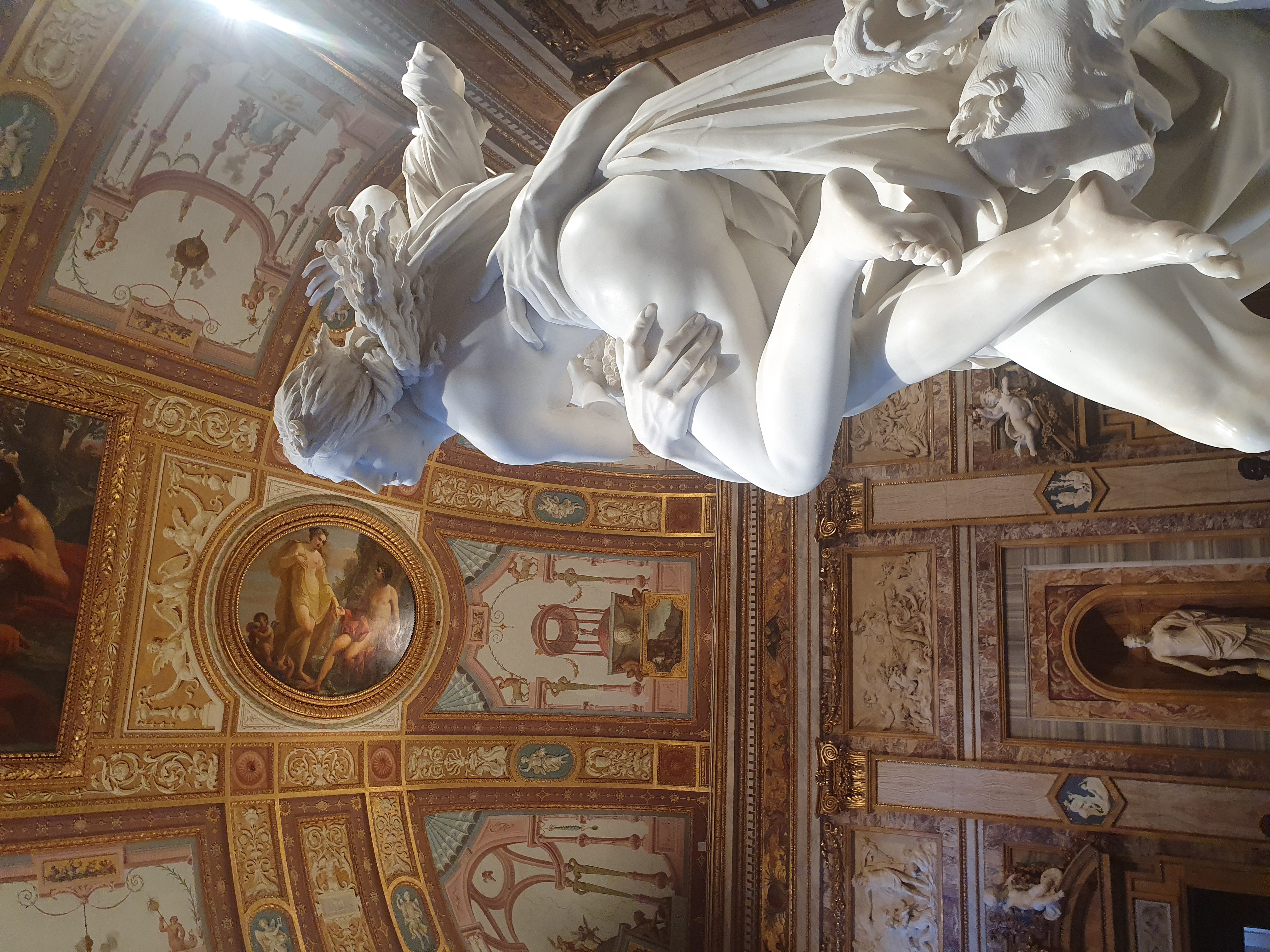 Szósty dzień pleneru, 11 lutego, przeznaczony został na zapoznanie się z bogatą kolekcją dzieł sztuki zgromadzoną przez rodzinę Borghese, dostępną dla zwiedzających pod nazwą Galerii Borghese. W bogato zdobionych wnętrzach willi mieliśmy szansę zobaczyć kolekcję wybitnych rzeźb Gianlorenzo Berniniego, w tym Dawida, Porwanie Prozerpiny, Apollo i Dafne i portret kardynała Scypiona Borghese w dwóch egzemplarzach. Tu też mogliśmy podziwiać dzieło Antonia Canovy, czyli Odpoczywającą Wenus, będącą portretem Pauliny Borghese oraz liczne dzieła malarskie najwybitniejszych twórców: Rafaella Santi (Kobieta z jednorożcem), Caravagio (Jan Chrzciciel, Św. Hieronim), Petra Paula Rubensa (Zuzanna i starcy), Giana Lorenzo Bernini ( Autoportret ), Domenichino (Diana i jej nimfy), czy Danae Corregia. Po wspaniałej uczcie dla ducha i zmysłów, której dostarczyła nam kontemplacja najznakomitszych dzieł włoskich artystów, opuściliśmy progi Galerii Borghese i skierowaliśmy się na Schody Hiszpańskie. Zatrzymaliśmy się na tu na plener rysunkowo- malarsko-fotograficzny, notując obrazy z jednego z najchętniej odwiedzanych przez turystów zakątka Rzymu. Równie gwarno było przed czołem fontanny Di Trevi, która urzekła nas teatralnym rozmachem.