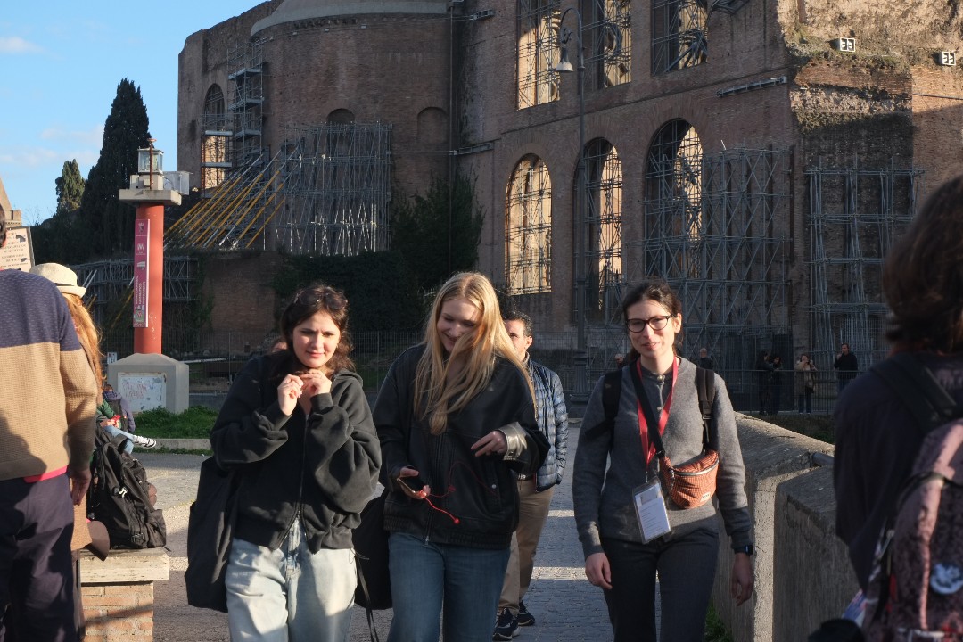 Plener odbywał się pod hasłem Nie cały umieram – Rzym 2024, więc w jego programie nie mogło zabraknąć zabytków starożytnych, wczesnochrześcijańskich i epok późniejszych (głównie baroku), które dostarczyły nam nie tylko wrażeń estetycznych, lecz także refleksji nad przemijaniem człowieka wobec ciągłości tradycji i trwałości form artystycznych. Lista odwiedzonych podczas tegorocznego pleneru muzeów i zabytków jest imponująca. Zwiedziliśmy plac i bazylikę św. Piotra, Zamek Anioła, Chiesa Nuova (obrazy Rubensa) wraz z oratorium Filipinów, Piazza Navona (kościół S. Agnese in Agone, Fontanna 4 Rzek, Fontanna Maura, Fontanna Neptuna), kościoły S. Luigi dei Francesi (obrazy Caravaggia w kaplicy Contarelli), S. Agostino (Madonna del Parto dłuta Jacopo Sansovino, fresk Rafaela – Izajasz, Madonna dei Pellegrini Caravaggia, grób św. Moniki), Panteon, bazylikę S. Maria sopra Minerva, kościół S. Ignazio (iluzjonistyczny fresk Andrei Dell Pozzo na sklepieniu, grób św. Stanisława Kostki), Galerię Borghese, Muzea Watykańskie, bazylikę św. Jana na Lateranie oraz Scala Santa, bazylikę Matki Bożej Śnieżnej (S. Maria Maggiore), kościół S. Maria della Vittoria (Bernini - Ekstaza św. Teresy w Capella Cornaro), bazylikę św. Pawła, Koloseum, Forum Romanum, Schody Hiszpańskie, Fontannę di Trevi, katakumby św. Kaliksta, Piazza di Venezia, Pałac Venecki, Pomnik Zjednoczenia Włoch, Muzeum Kapitolińskie i Muzeum Sztuki Nowoczesnej. Spędziliśmy także dzień w urokliwym Asyżu, gdzie głównym punktem programu była bazylika św. Franciszka ze wspaniałymi freskami (m. in. Cimabue, Giotto, Lorenzetti). Oprócz tego wędrówki i poszukiwania małych skarbów sztuki (dla piszącej te słowa takim małym cudem okazał się kościółek S. Francesca Romana położony przy Forum Romanum) i niecodziennych ujęć persektywicznych na własną rękę.