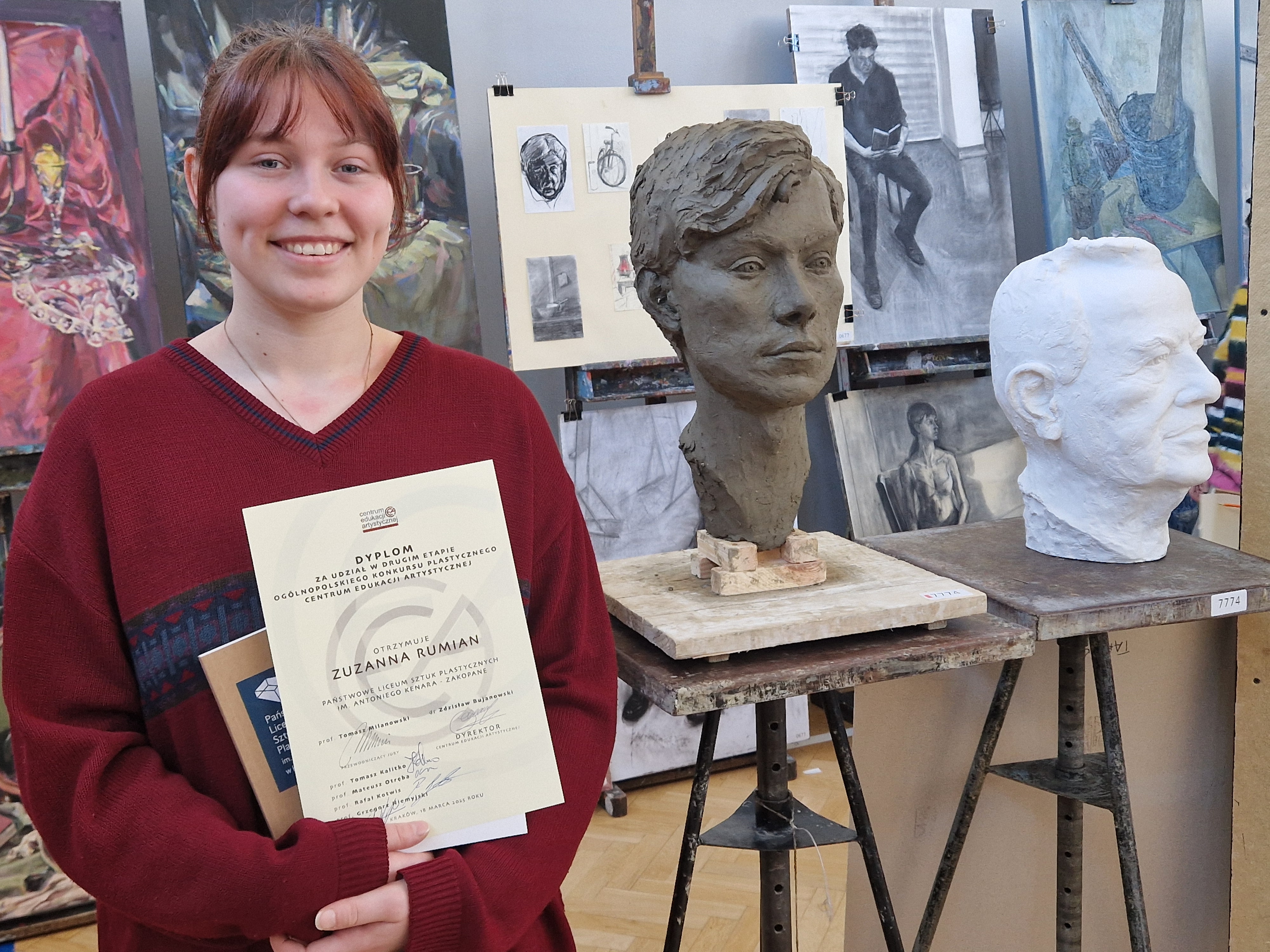 Zuzanna Rumian reprezentowała szkołę w kategorii rzeźby i malarstwa, a Sebastian Zych w kategorii malarstwa i rysunku. Nauczycielami uczniów są: mgr Ewa Ross-Baczyńska nauczyciel rzeźby i dr Artur Kapturski nauczyciel rysunku i malarstwa.