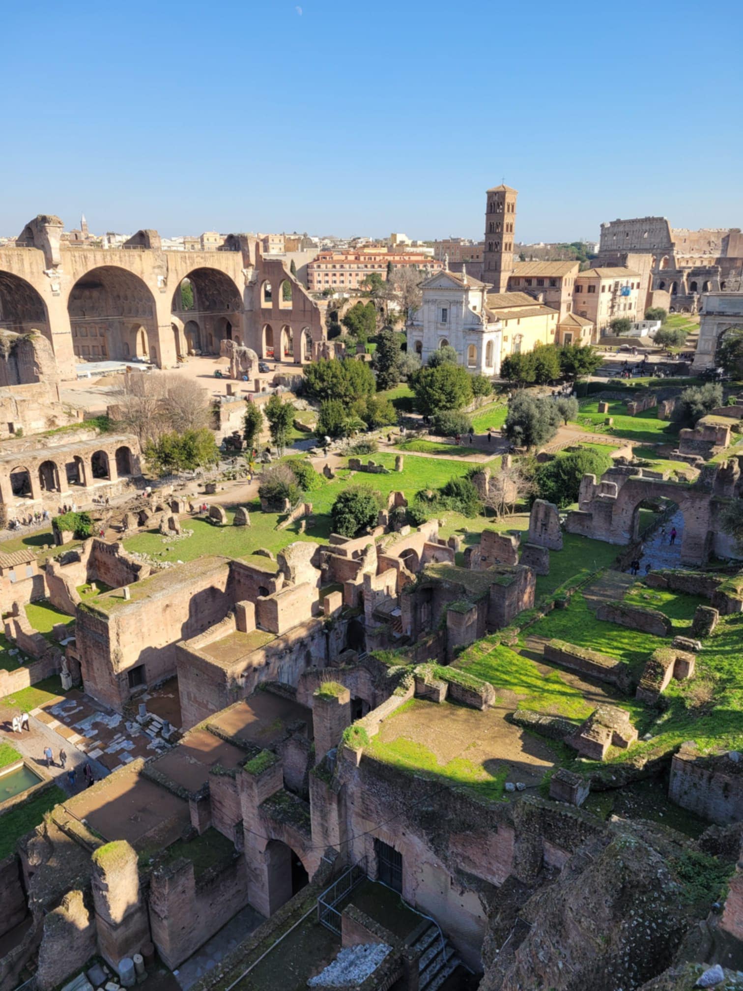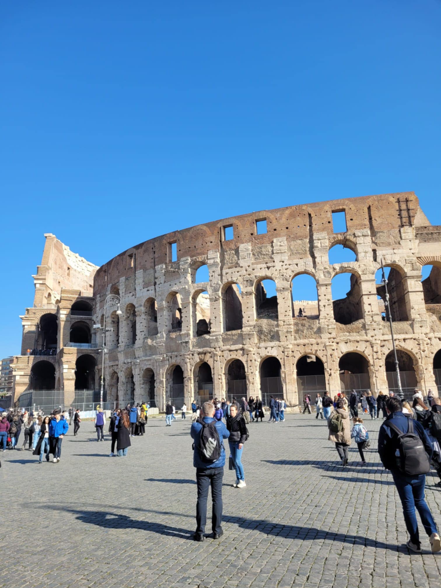 Po wspólnym śniadaniu o godz. 8.00 wyruszyliśmy w kierunku Koloseum, by tam z przewodnikiem zwiedzać jego wnętrza, poznawać jego tragiczną historię, ale też podziwiać mistrzostwo jego architektury. Dla przyszłych słuchaczy historii sztuki ważnym punktem było zapoznanie się z dziejami Forum Romanum i Pallatynu. Trzygodzinny spacer wśród pozostałości dawnych pałaców, bazylik można było poczuć atmosferę dysput rzymskich filozofów, kłótni przekupek, czy zapachu kadzideł z miejsc starożytnych świątyń. Dla młodzieży było to idealne miejsce na plener. Powstały ciekawe szkice, czy projekty małych form obrazów malowanych akwarelami. Słoneczna pogoda sprawiła iluzję, że dawne czasy świetności Rzymu ożyły na nowo. Zbliżający się zachód słońca i nawołujący do opuszczenia stróże tego miejsca zmusiły nas do zakończenia pleneru. Spoglądając jeszcze raz na urokliwy obraz Koloseum i Łuku Konstantyna wyruszyliśmy w drogę do bazyliki Św. Jana na Lateranie. Tam z pomocą karty pracy młodzież poznawała wnętrze, które jest dziełem Francesco Borrominiego, fasadę według projektu Dominco Fontany oraz baptysterium z czasów Konstantyna Wielkiego. Wieczorne spotkanie tematyczne poprowadziła pani Beata Jerger omawiając motyw Rzymu w polskiej literaturze.