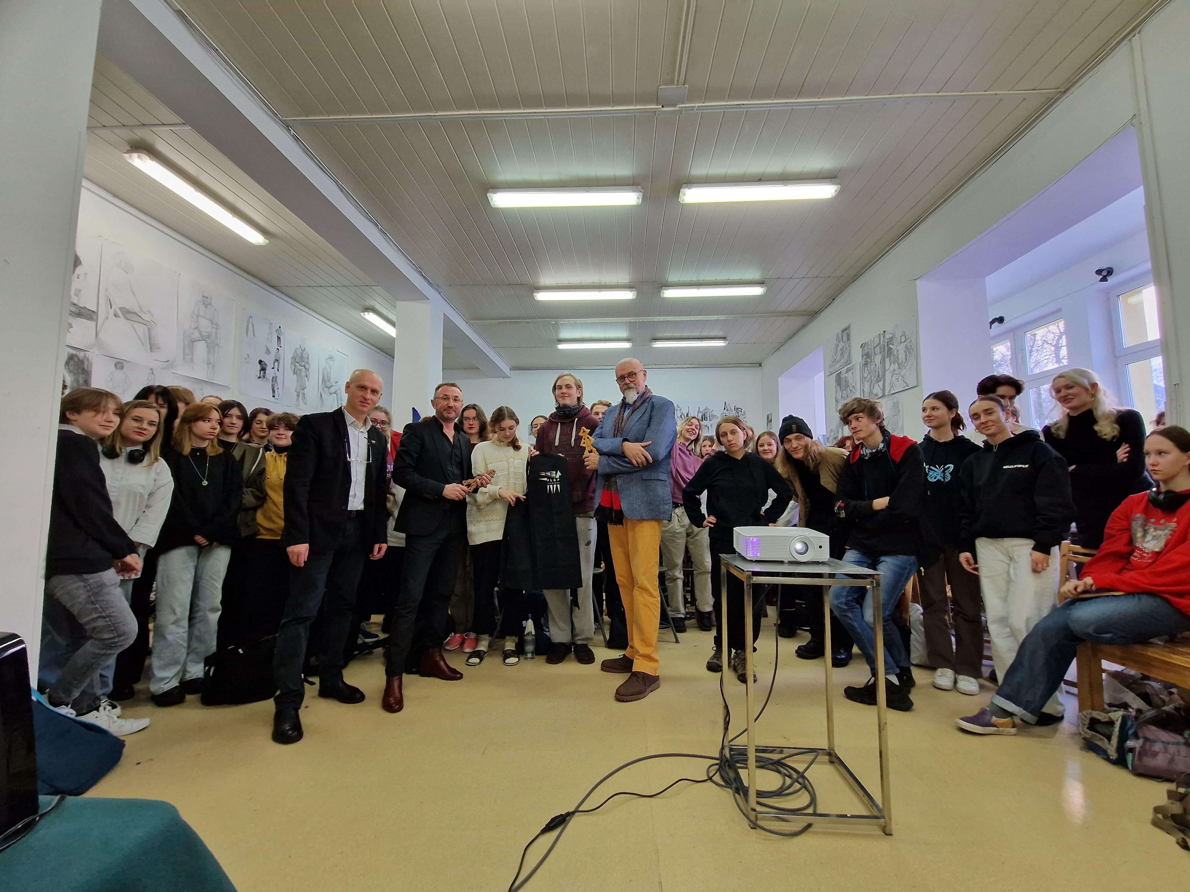 12 grudnia 2023 r. gościliśmy w naszej szkole Jego Magnificencję prof. Andrzeja Bednarczyka, Rektora Akademii Sztuk Pięknych im. Jana Matejki w Krakowie oraz dra hab. Roberta Sowę, prof. ASP, Prorektora ds. studenckich i kształcenia. Nasi Goście spotkali się z młodzieżą klas starszych.