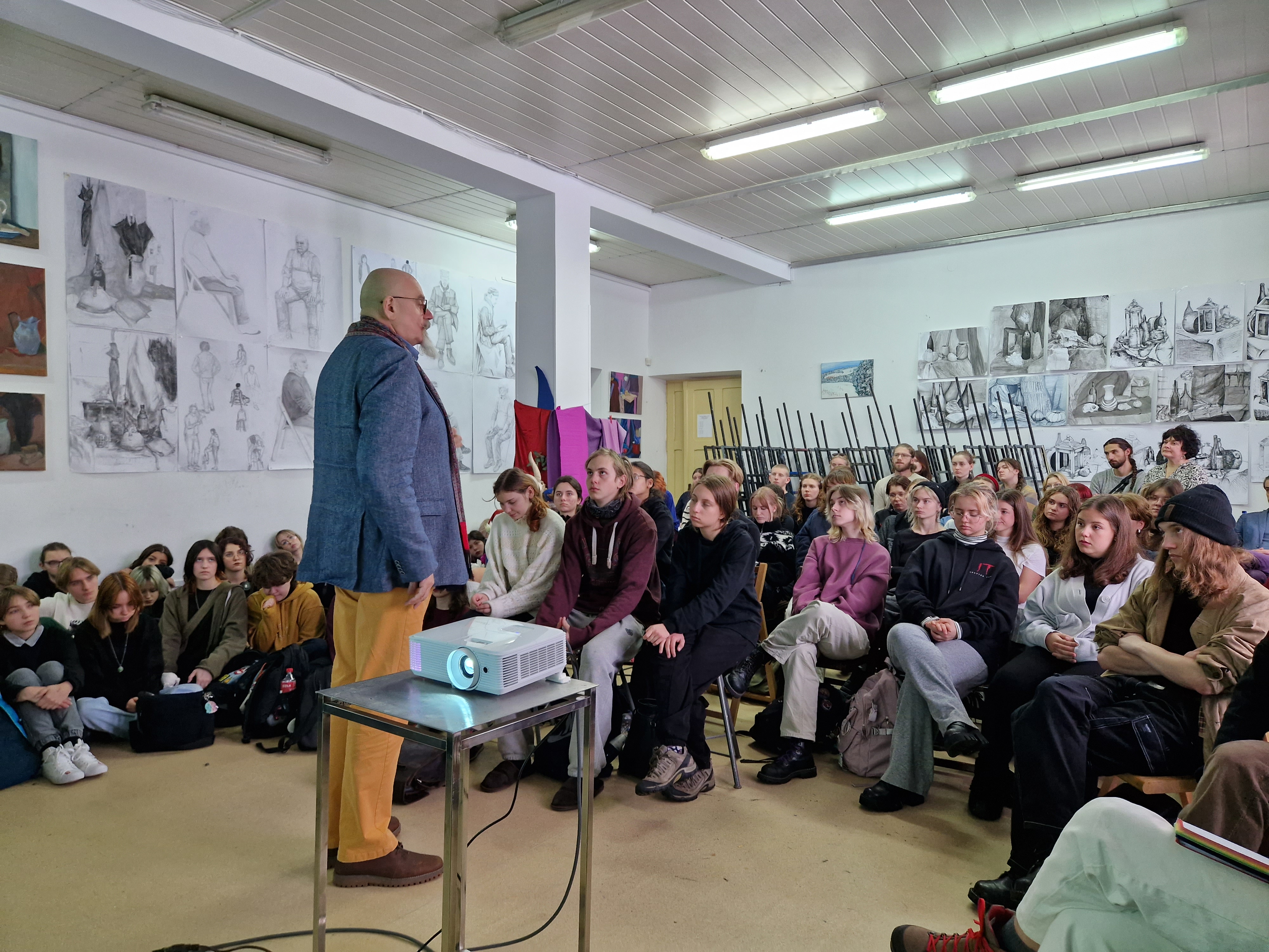 Inspirujący wykład i rozważania na temat twórczości i potencjału młodych artystów - w domyśle przyszłych studentów Akademii Sztuk Pięknych, uruchomił wyobrażenia o samej uczelni oraz możliwościach, jakie daje Akademia młodym adeptom sztuki. Poruszone zostały nowe aspekty roli Artysty w kontekście poszanowania przyrody i ekologii, a także współpracy między uczelniami europejskimi.