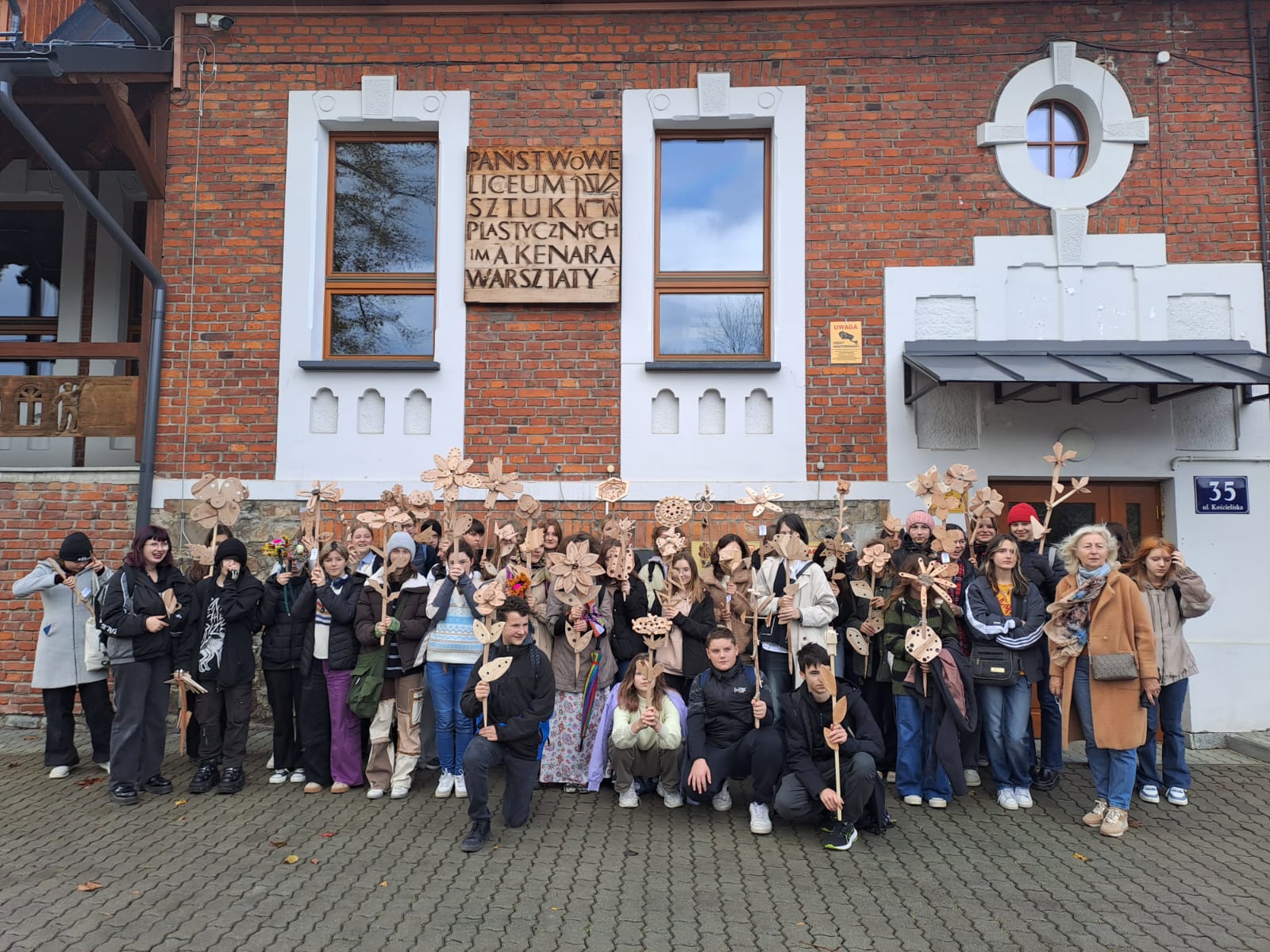 Dnia 27 października 2023 r. uczniowie klas pierwszych Państwowego Liceum Sztuk Plastycznych im. Antoniego Kenara odwiedzili zakopiańskie cmentarze. Podtrzymując coroczną tradycję, na grobach Patrona Szkoły, Pedagogów, Absolwentów i Uczniów młodzież złożyła drewniane kwiaty. Dekorowanie grobów własnoręcznie wykonanymi kwiatami wpisało się w tradycję szkoły. Kwiaty powstały na zajęciach specjalności artystycznych pod kierunkiem pedagogów - artystów. Podczas składania ich na grobach młodzież zapoznała się z biografią wielu postaci ważnych dla kultury Podhala i Polski. Uczniowie na cmentarze udali się pod opieką dyrekcji oraz nauczycieli PLSP im. A. Kenara w Zakopanem.
