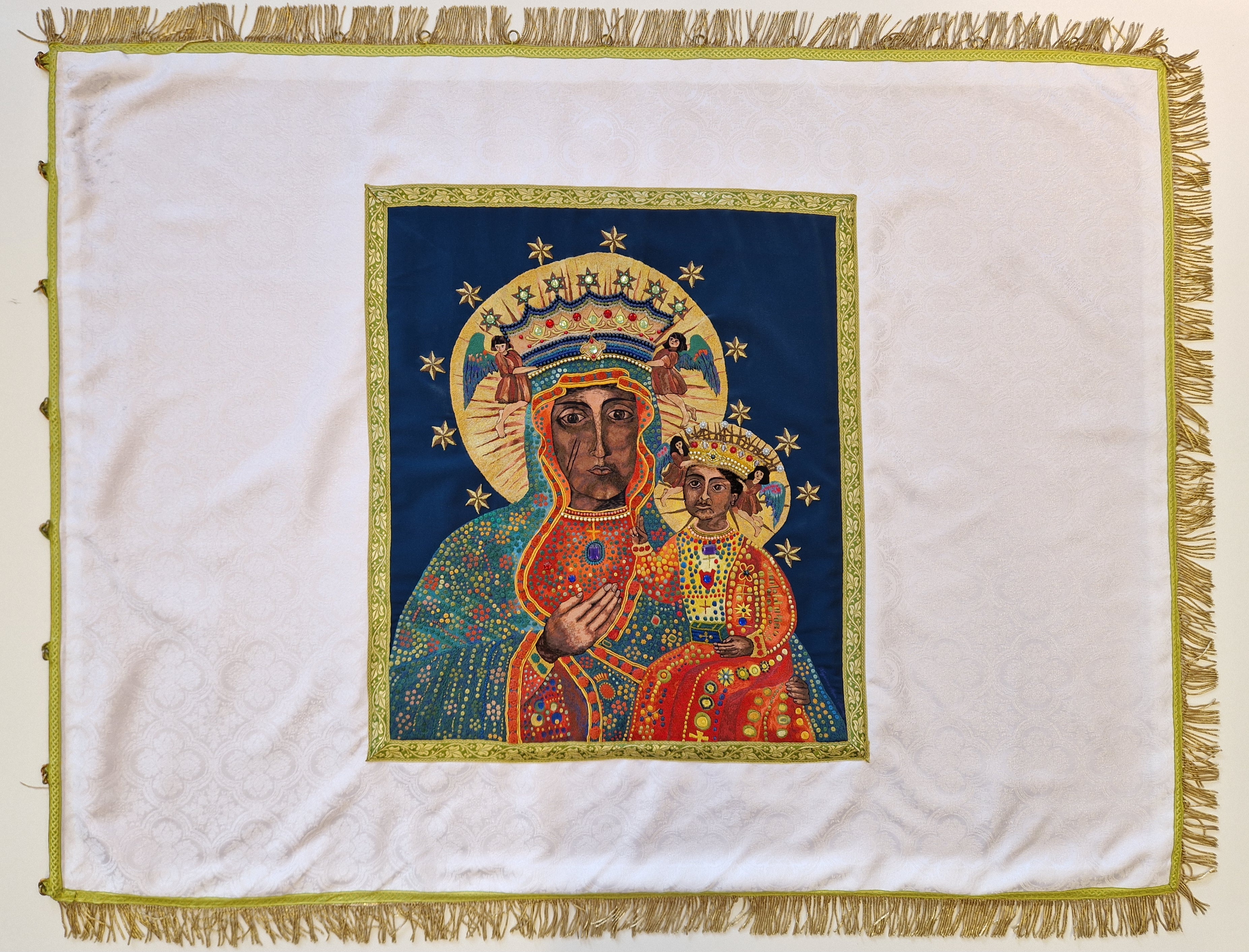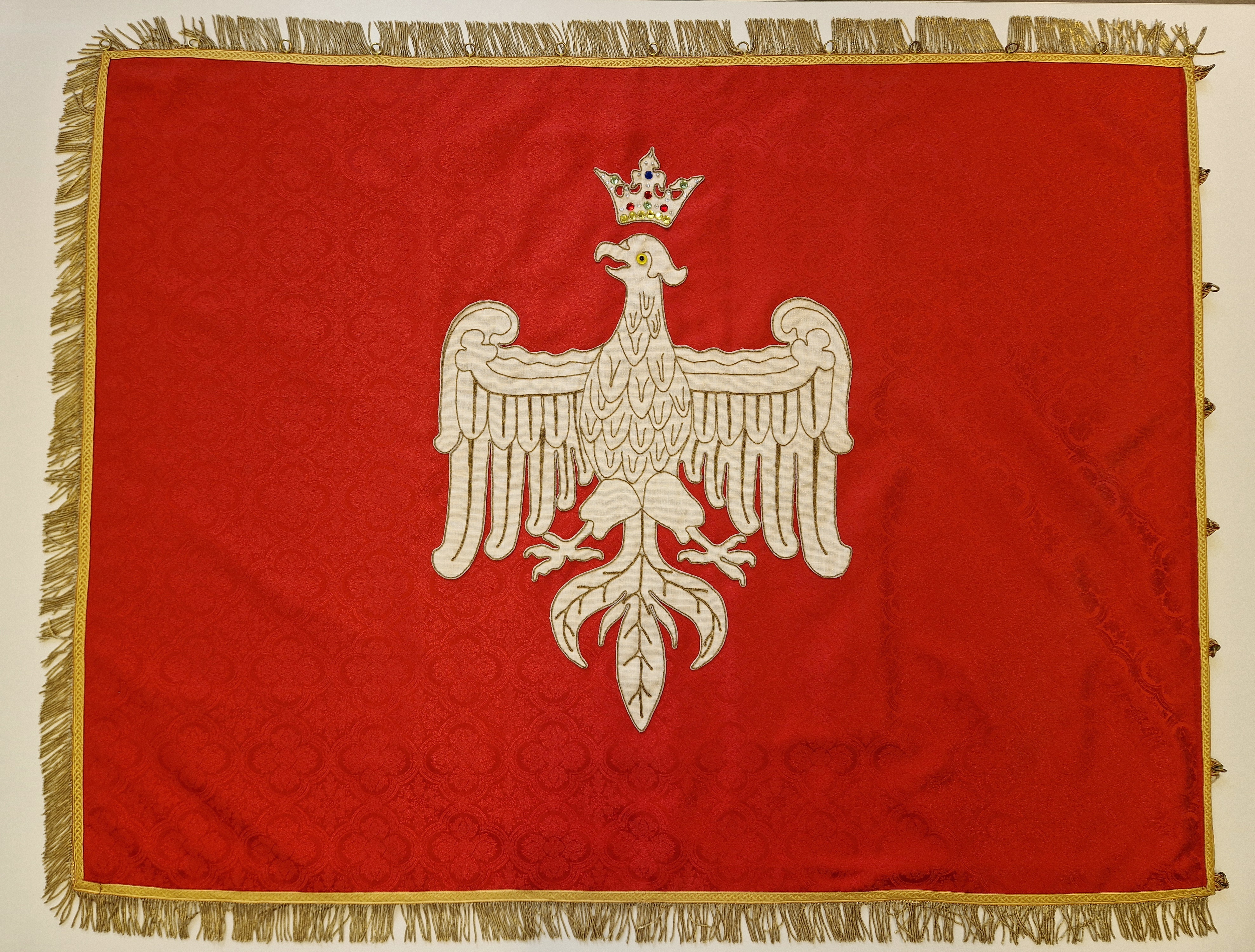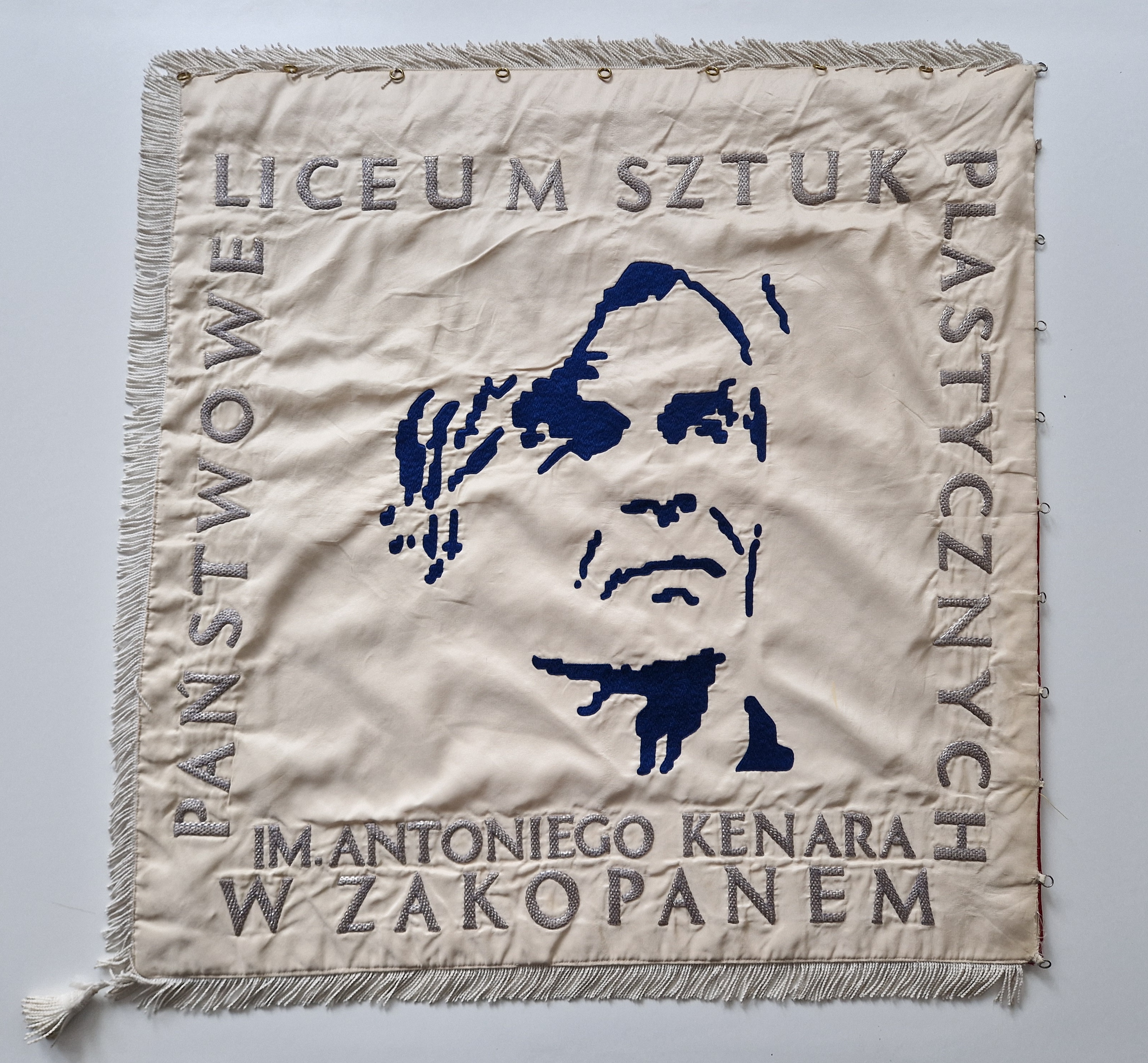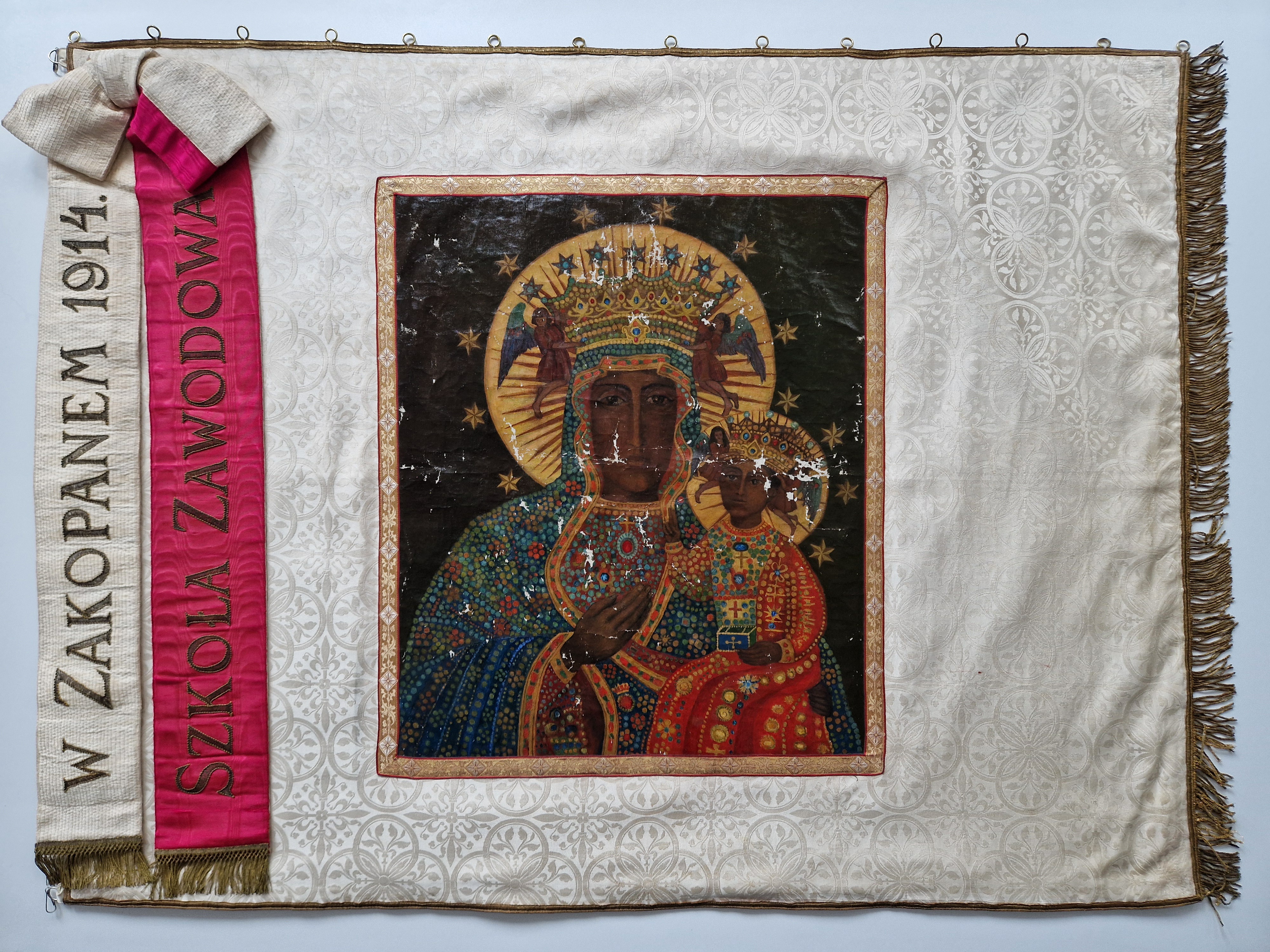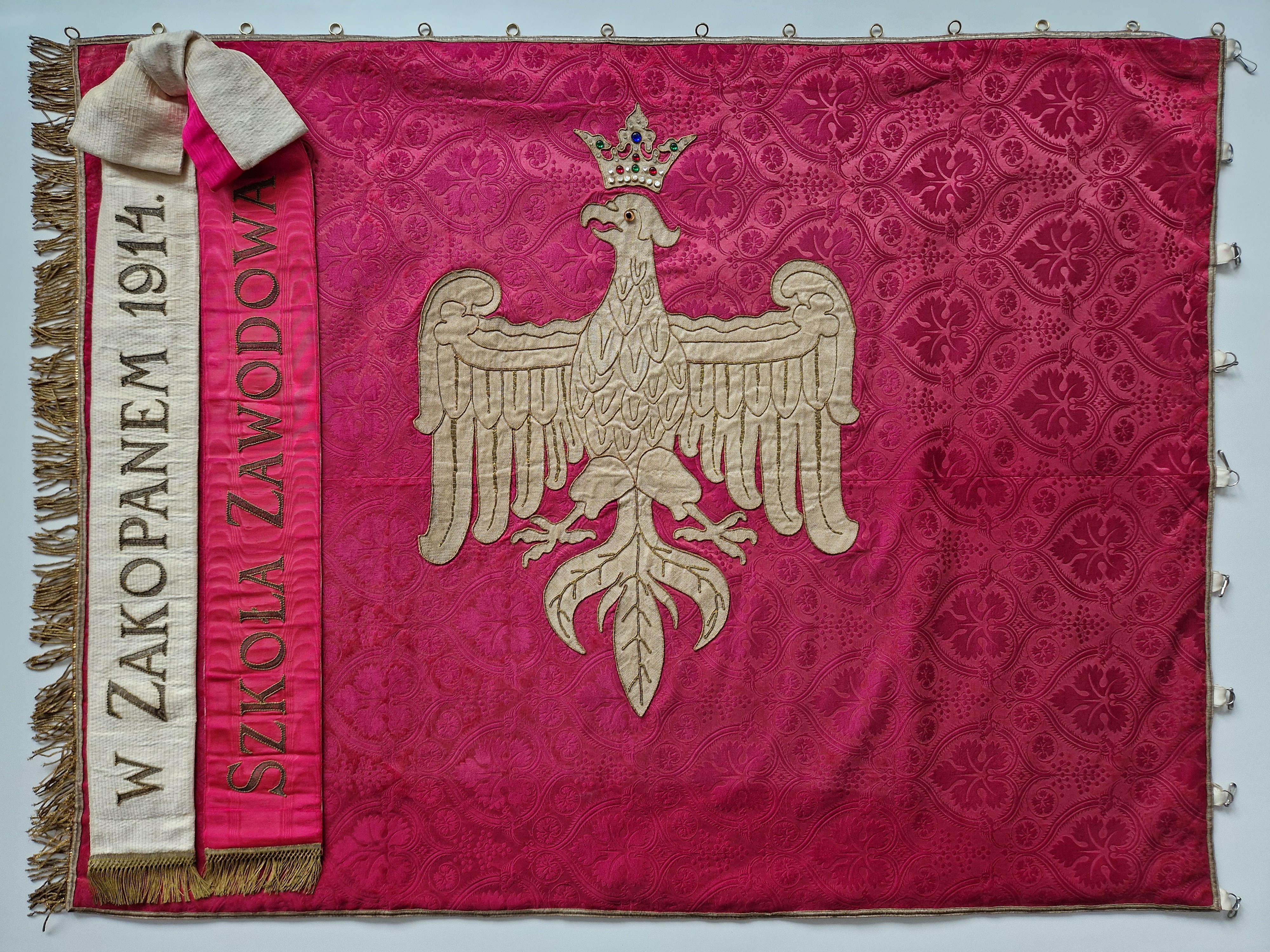 Archiwalny sztandar Szkoły Zawodowej w Zakopanem, płat strony głównej (awers). Autor: Stanisław Barabasz, rok 1914