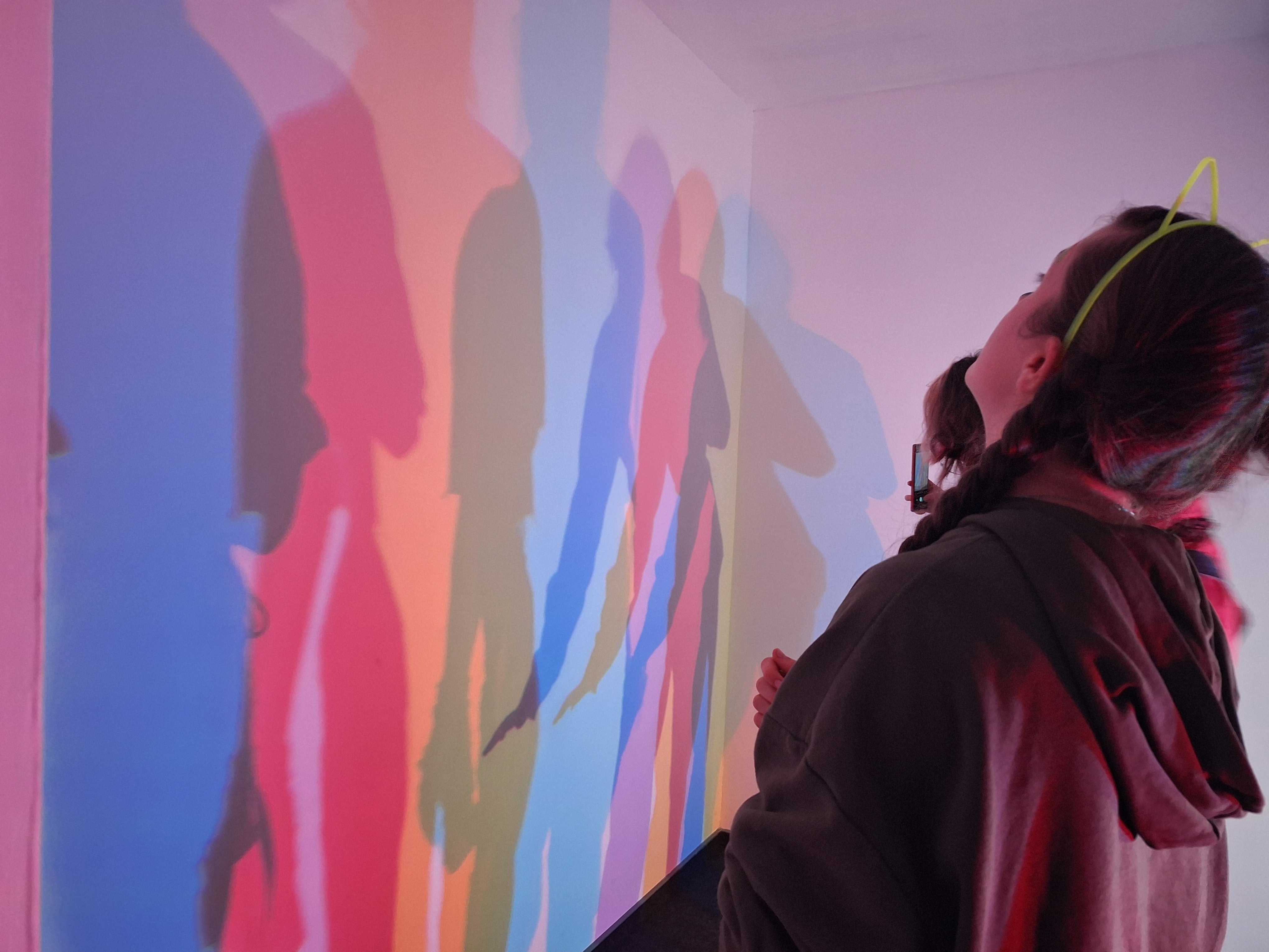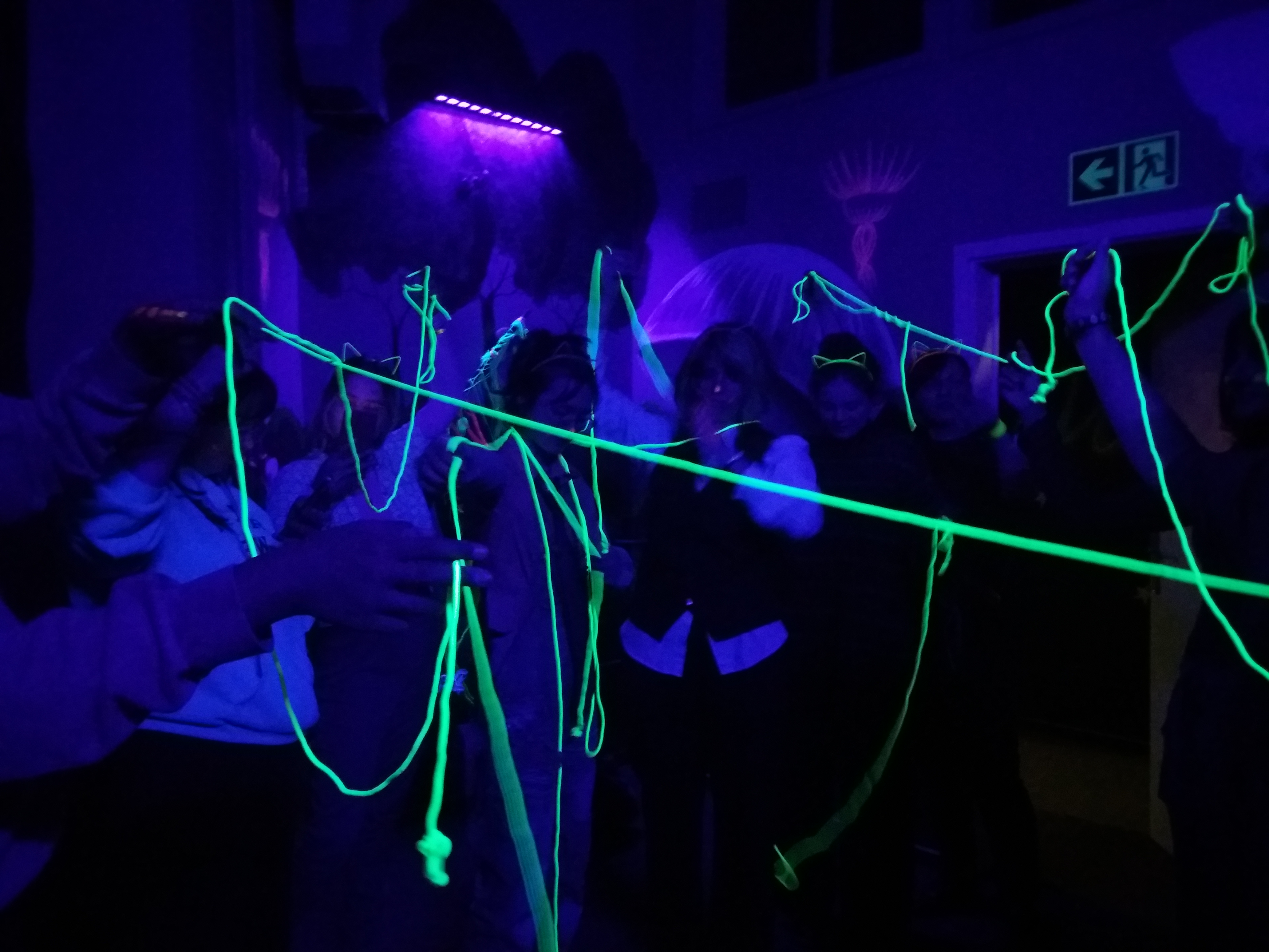 Uzupełnieniem powyższych punków programu wycieczki do Łodzi było Muzeum Światła, gdzie uczniowie zaopatrzeni przez opiekunów gadżetami fluorescencyjnymi fotografowali układy sytuacyjne- świetlne przestrzenie z rysunkiem własnych fluorescencyjnych sznurów i innych gadżetów.