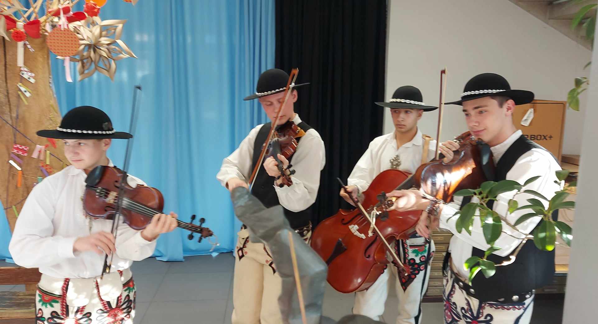 Uczestnicy wystawy zwiedzili szkołę wraz z jej interesującą galerią obrazów. Podczas oficjalnej części głos zabrali dyrektor Małgorzata Hołówka i pedagodzy uczestniczących w plenerze Paulina Siedlarz, Artur Kapturski oraz Michał Stonawski. Był też czas na międzyszkolną wymianę wrażeń, a wszystko przy akompaniamencie muzyki góralskiej. Bardzo serdecznie dziękujemy gospodarzom wydarzenia za wspaniałe wrażenia oraz gościnę i zapraszamy na rewizytę…