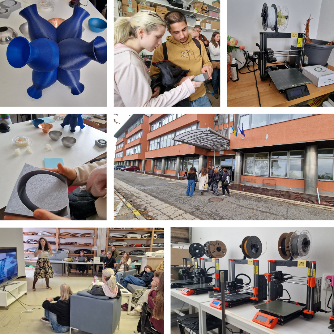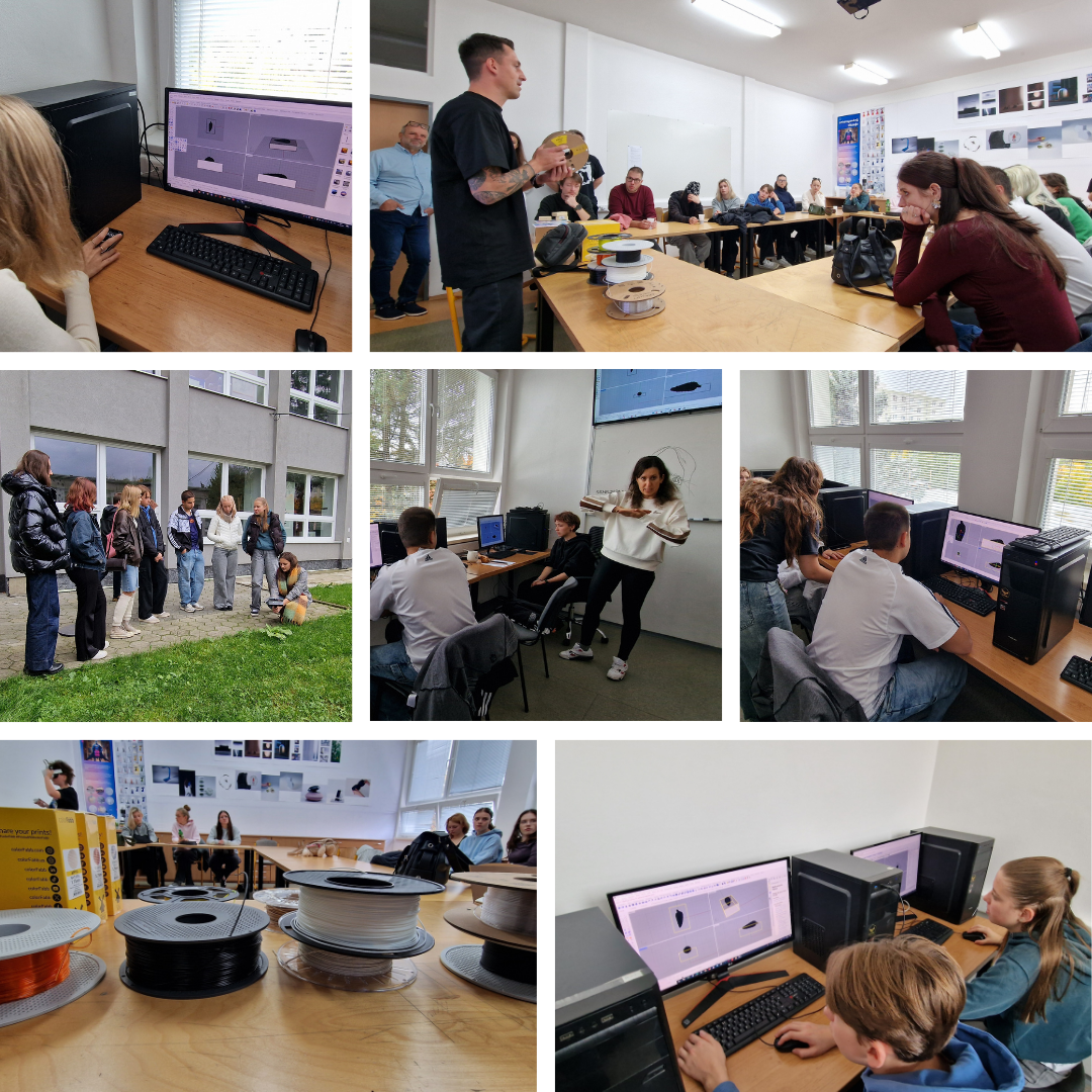 W dniach 13–17 października 2025 spotkaliśmy się z partnerami z Polski i Słowacji podczas drugiej mobilności międzynarodowej, której gospodarzem była Súkromná škola umeleckého priemyslu w Żylinie. Cały tydzień poświęcony był nauce, dzieleniu się doświadczeniem oraz praktycznym aktywnościom skupionym na druku 3D i projektowaniu zrównoważonym.