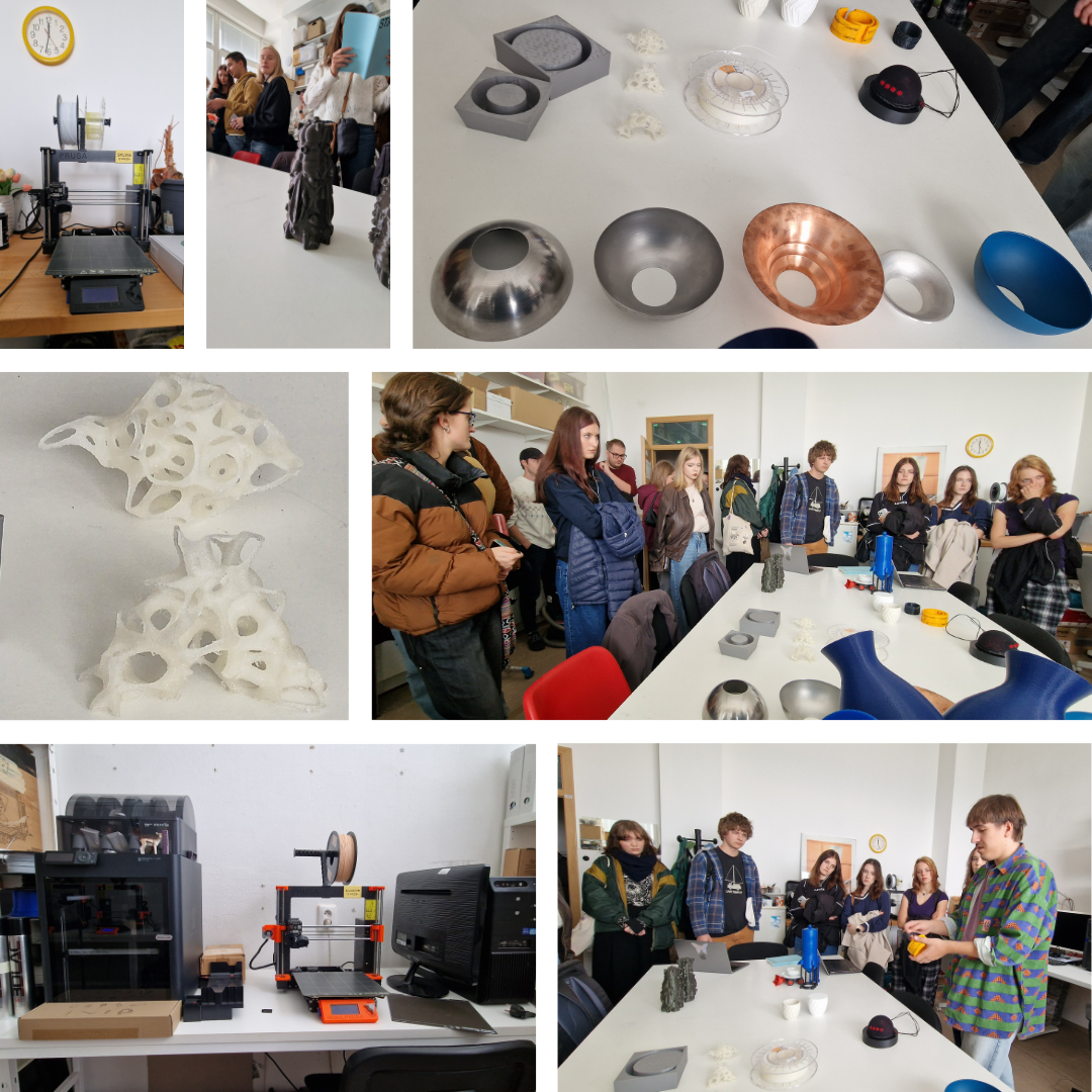 Wykład Alternatywne materiały do druku 3D zapoznał uczestników z nietypowymi surowcami wykorzystywanymi we współczesnym druku 3D. Praktyczne przykłady zrównoważonej produkcji poznaliśmy również podczas wycieczek.