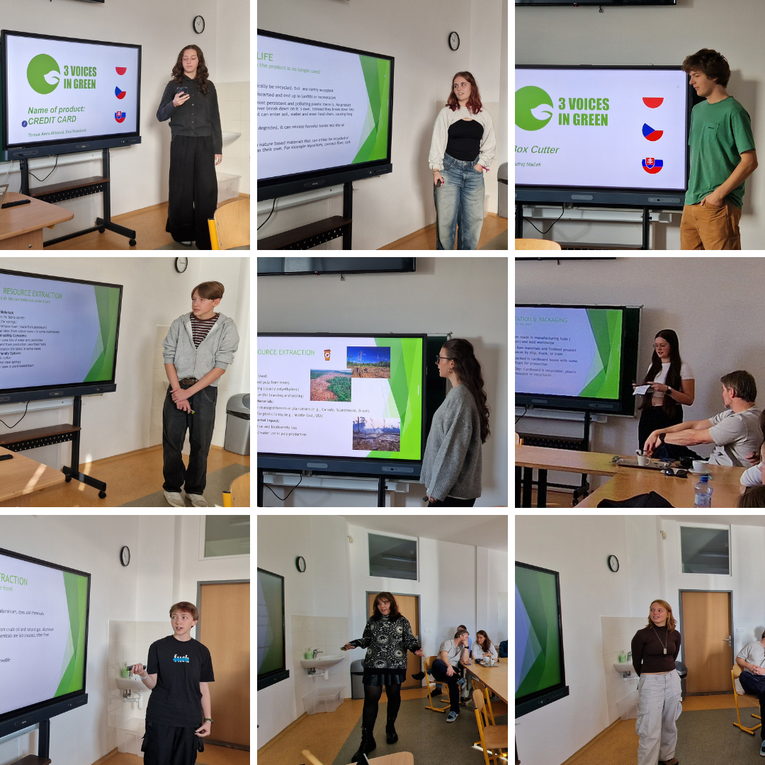 Następnie przygotowali prezentacje dotyczące cyklu życia produktów, przedstawiające wpływ na środowisko — od wydobycia surowców aż po ich utylizację. Najciekawsze z nich zostały zaprezentowane podczas mobilności na Słowacji.