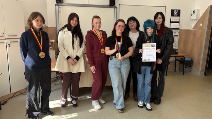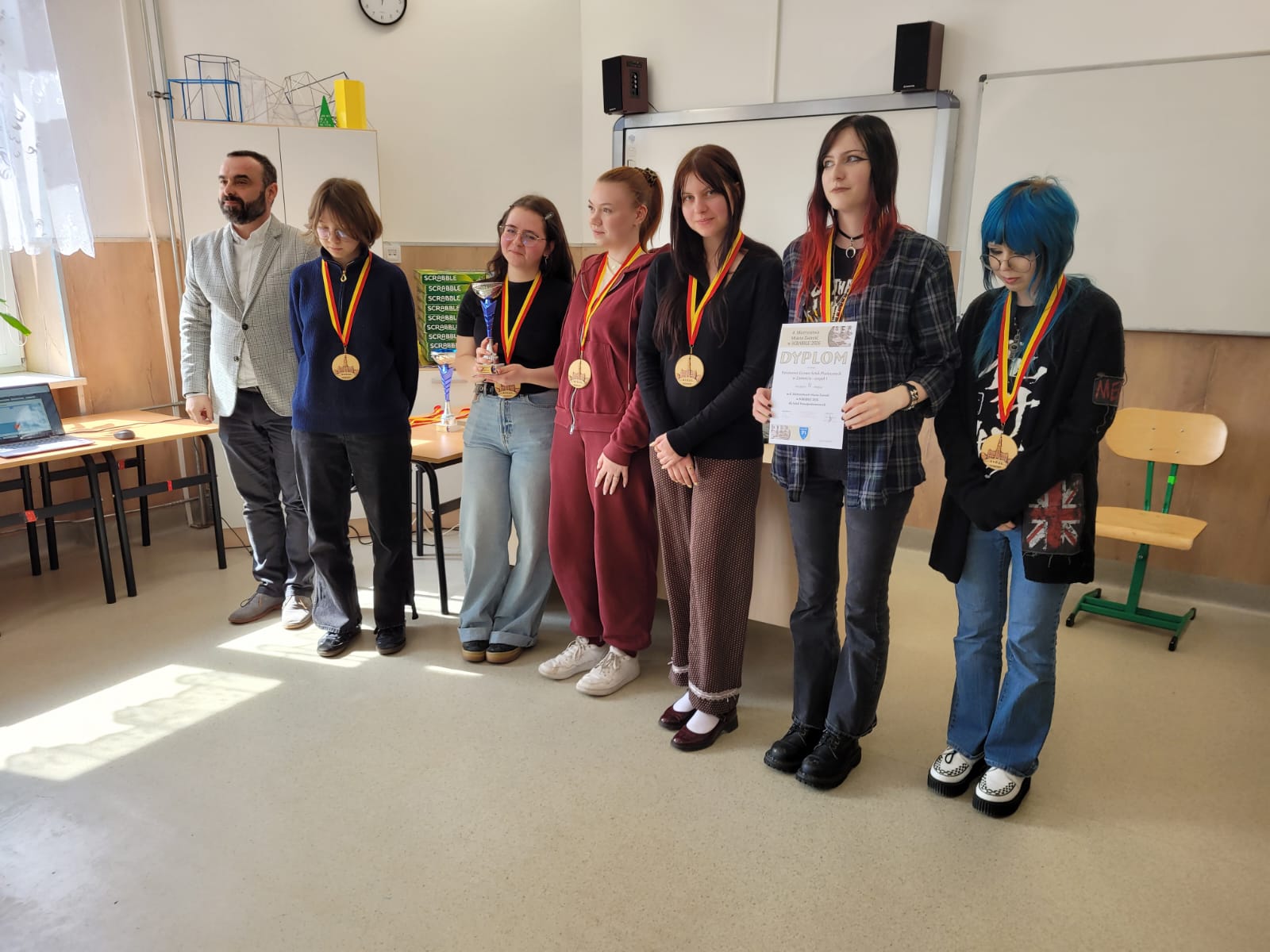 Konkurs był nie tylko okazją do rywalizacji, ale także przestrzenią do rozwijania pasji językowych i logicznego myślenia oraz doskonalenia swoich umiejętności. Naszą szkołę reprezentowała drużyna uczennic klasy IV Wiktoria Rarot, Katarzyna Koryszko, Oliwia Kapuśniak, Laura Tarnawska, Karolina Komada, Emilia Drzygało. Drużyna wykazała się dużym zaangażowaniem i zaprezentowała wysoki poziom przygotowania. Z dumą informujemy, że nasze uczennice zdobyły II miejsce oraz wywalczyły puchar, przynosząc chlubę naszemu liceum. Serdecznie gratulujemy uczestniczkom wspaniałego wyniku i życzymy dalszych sukcesów!