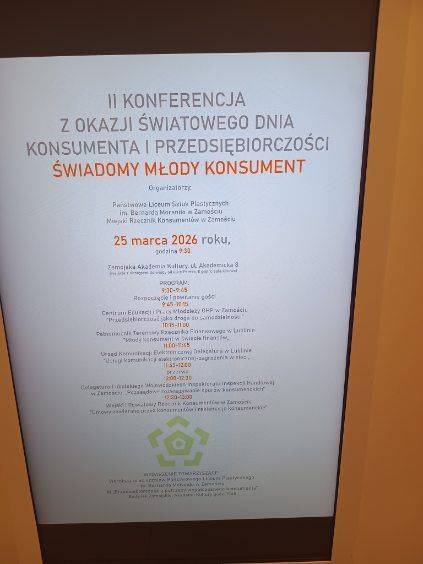 W dniu 25 marca 2026 r. odbyła się II Konferencja z okazji Światowego Dnia Konsumenta i Przedsiębiorczości pt. „Świadomy Młody Konsument”w Zamojskiej Akademii Kultury.