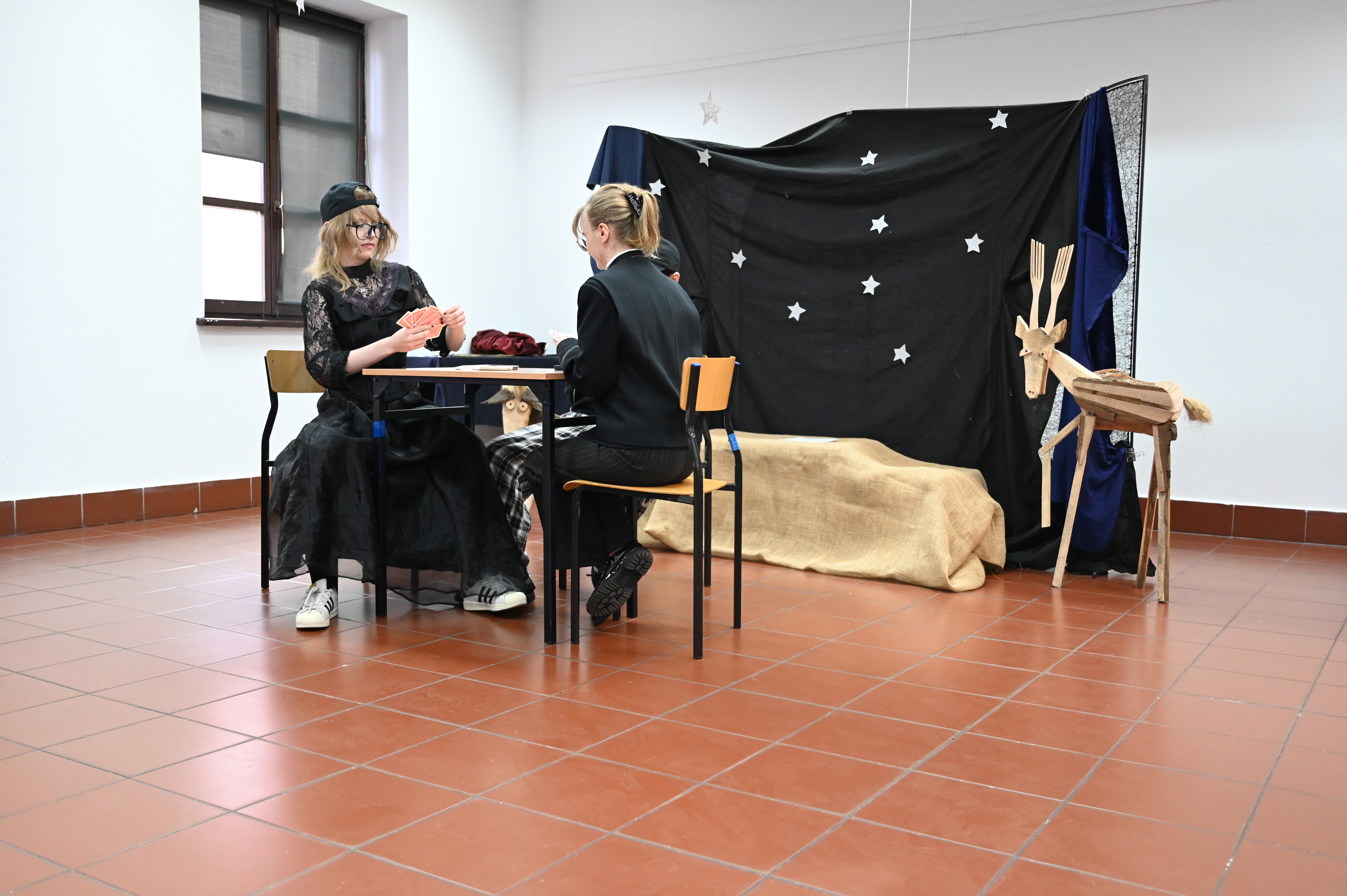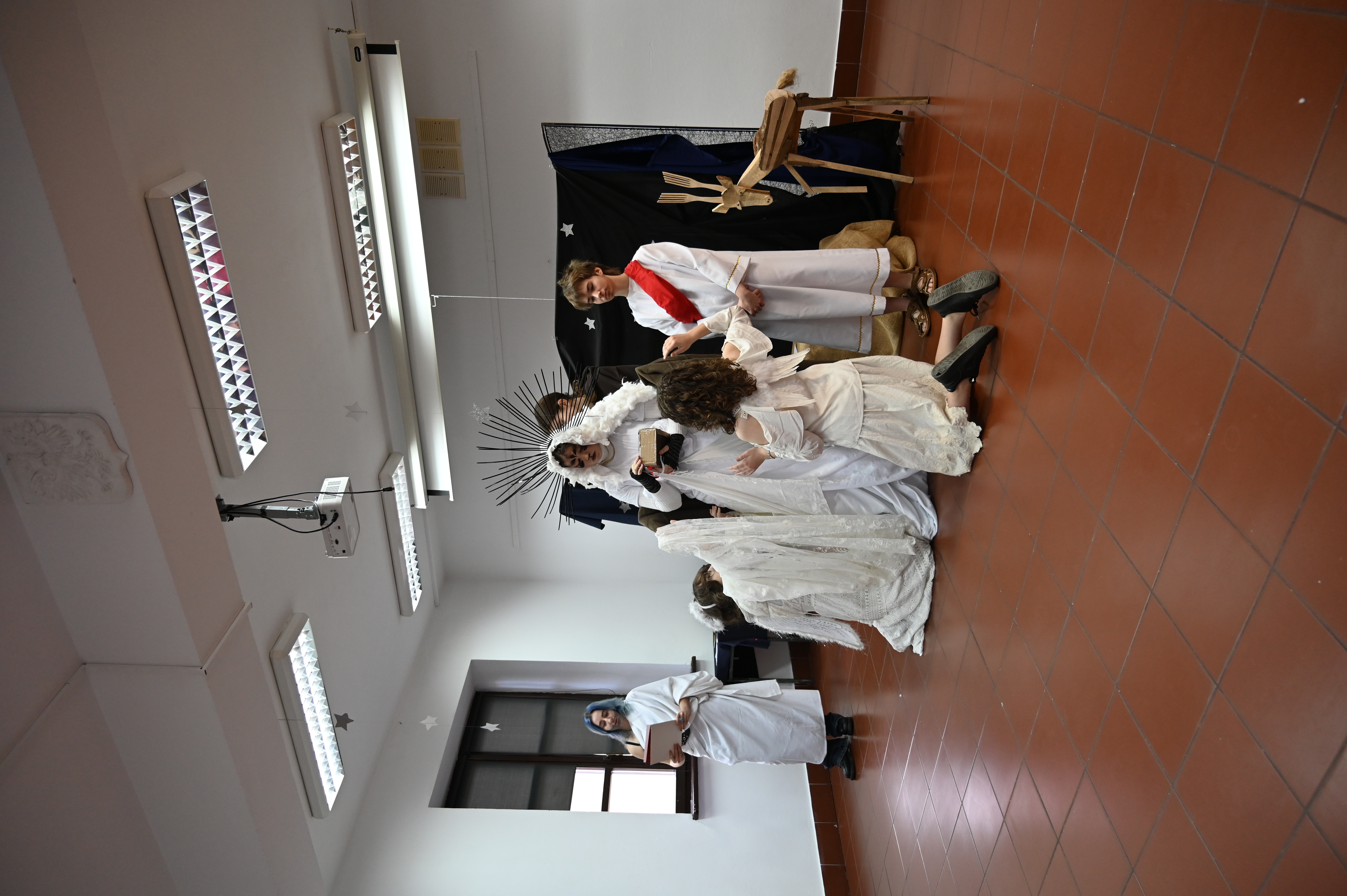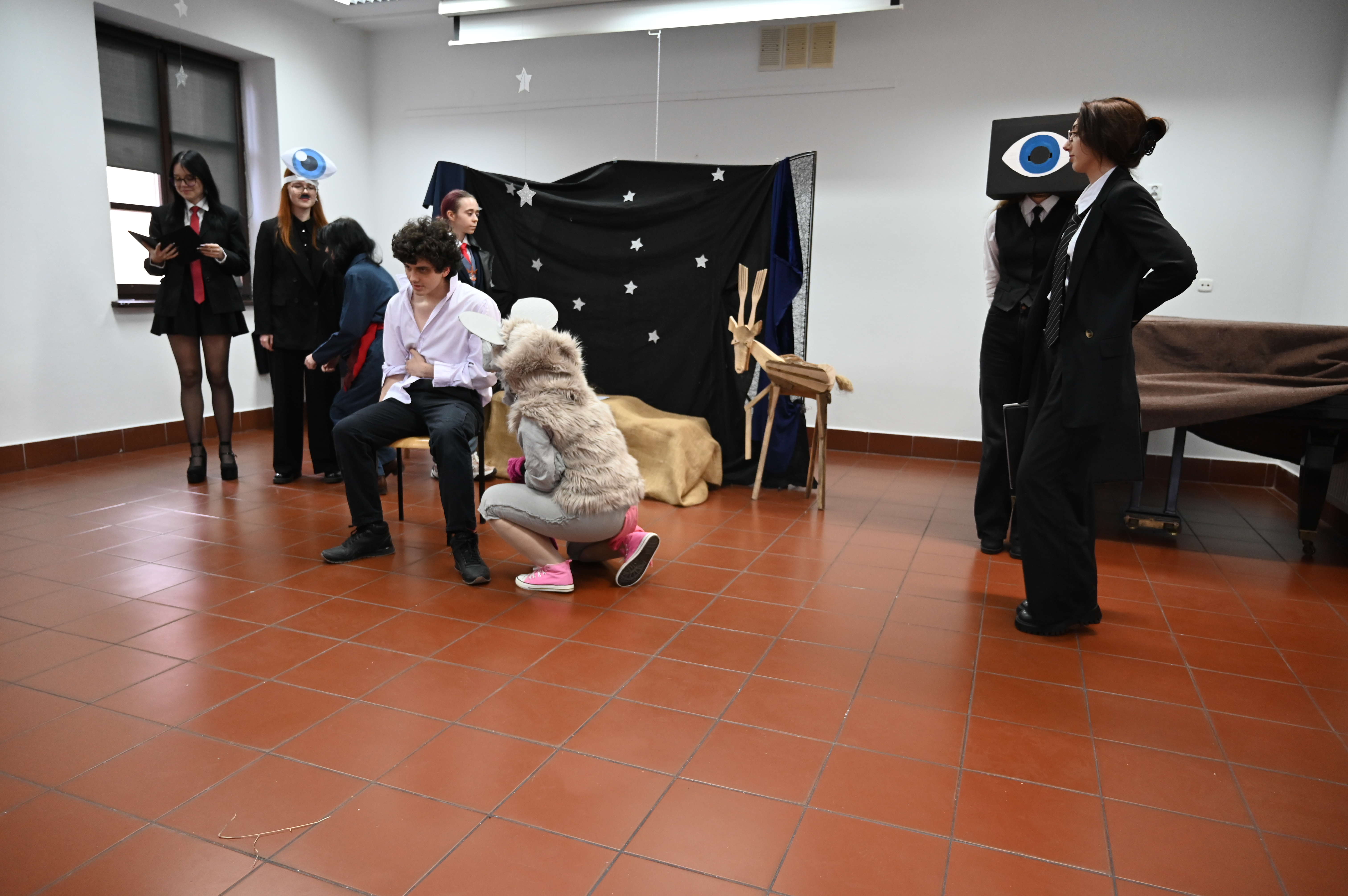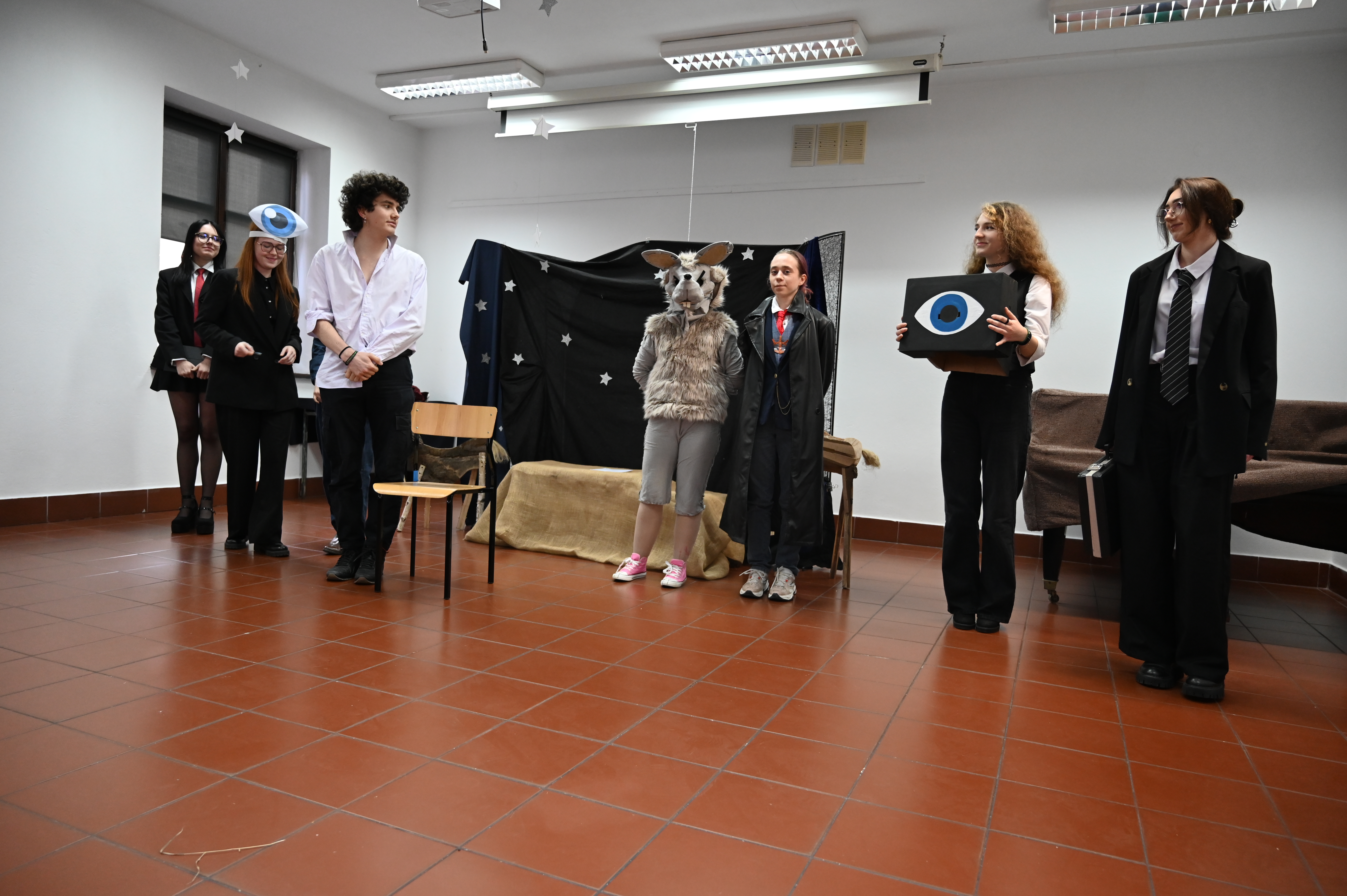 Właśnie w obecności naszych gości odbyły się główne prezentacje lektur. Praca nad projektem trwała kilka tygodni - na lekcjach języka polskiego uczniowie pod okiem nauczycieli polonistów analizowali teksty i wybierali najbardziej kluczowe, ich zdaniem, fragmenty dzieł literackich. Kolejnym etapem była praca nad formą - przekształcenie słowa pisanego w ruch sceniczny, gesty, emocje. Efektem tych działań były wyjątkowe etiudy teatralne. Każda klasa zaprezentowała własną interpretację klasyki, wykazując się talentem aktorskim. Klasa I a przygotowała "Apokalipsę św. Jana", kl. II a - balladę "Romantyczność A. Mickiewicza, III a "Chłopów" W. Reymonta, III b - "Lalkę" B. Prusa, IV a - "Ferdydurke" W. Gombrowicza, IV b - S. "Wesele" Wyspiańskiego, V a - "Rok 1984" G. Orwella, V b - "Tango" S. Mrożka. Jako szkoła artystyczna dużą wagę przywiązaliśmy również do oprawy wizualnej - każdy uczeń samodzielnie przygotował kostium odpowiadający granej postaci. Na szkolnych korytarzach można było spotkać bohaterów z różnych epok, co stworzyło niezwykły klimat. Szkolny dzień lektur to dowód na to, że kanon literatury nie musi być nudny. Dzięki zaangażowaniu młodzieży i nauczycieli polonistów postacie z książek ożyły, a wspólne przygotowania stały się doskonałą okazją do integracji i rozwijania kreatywności.
