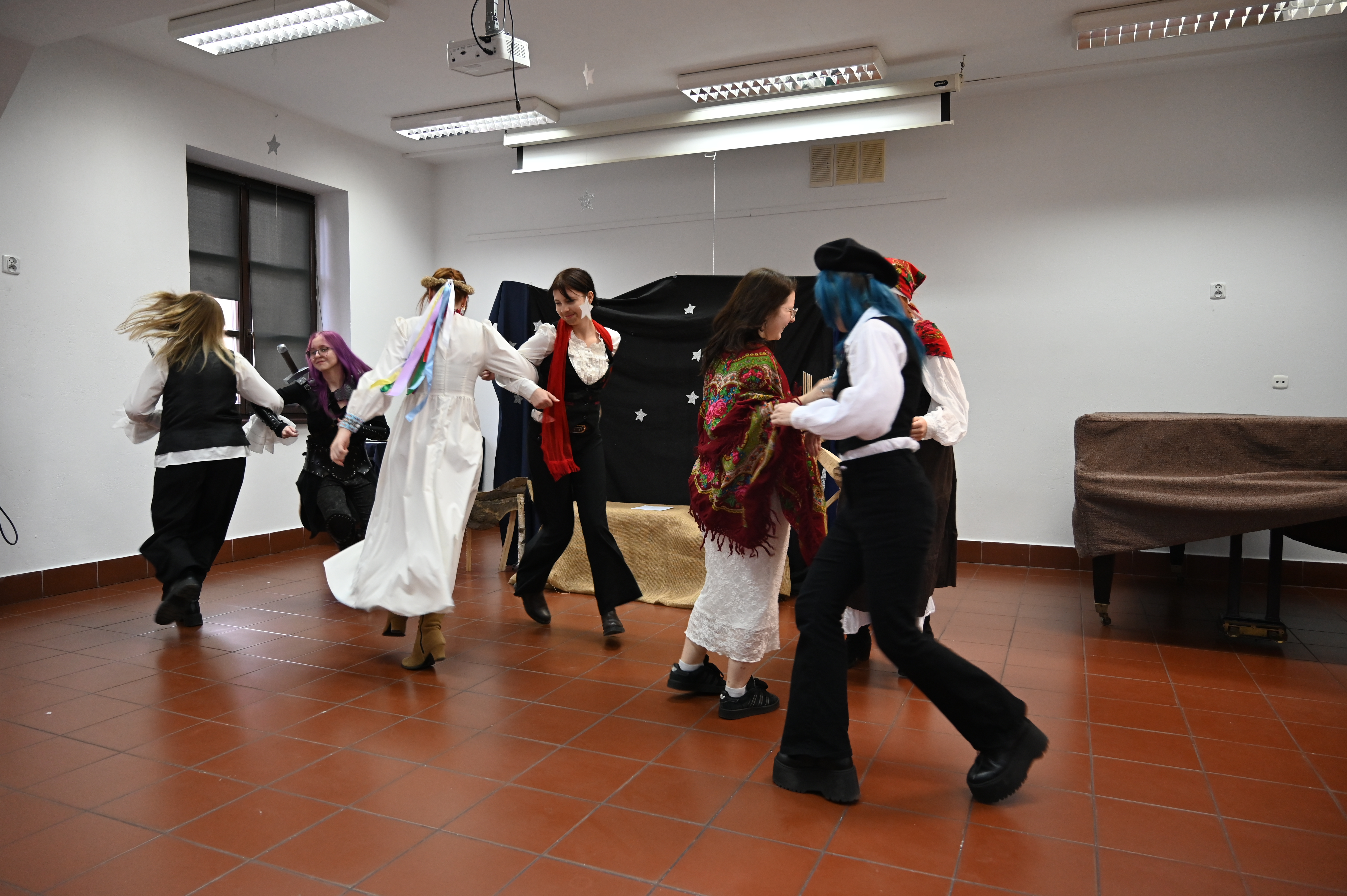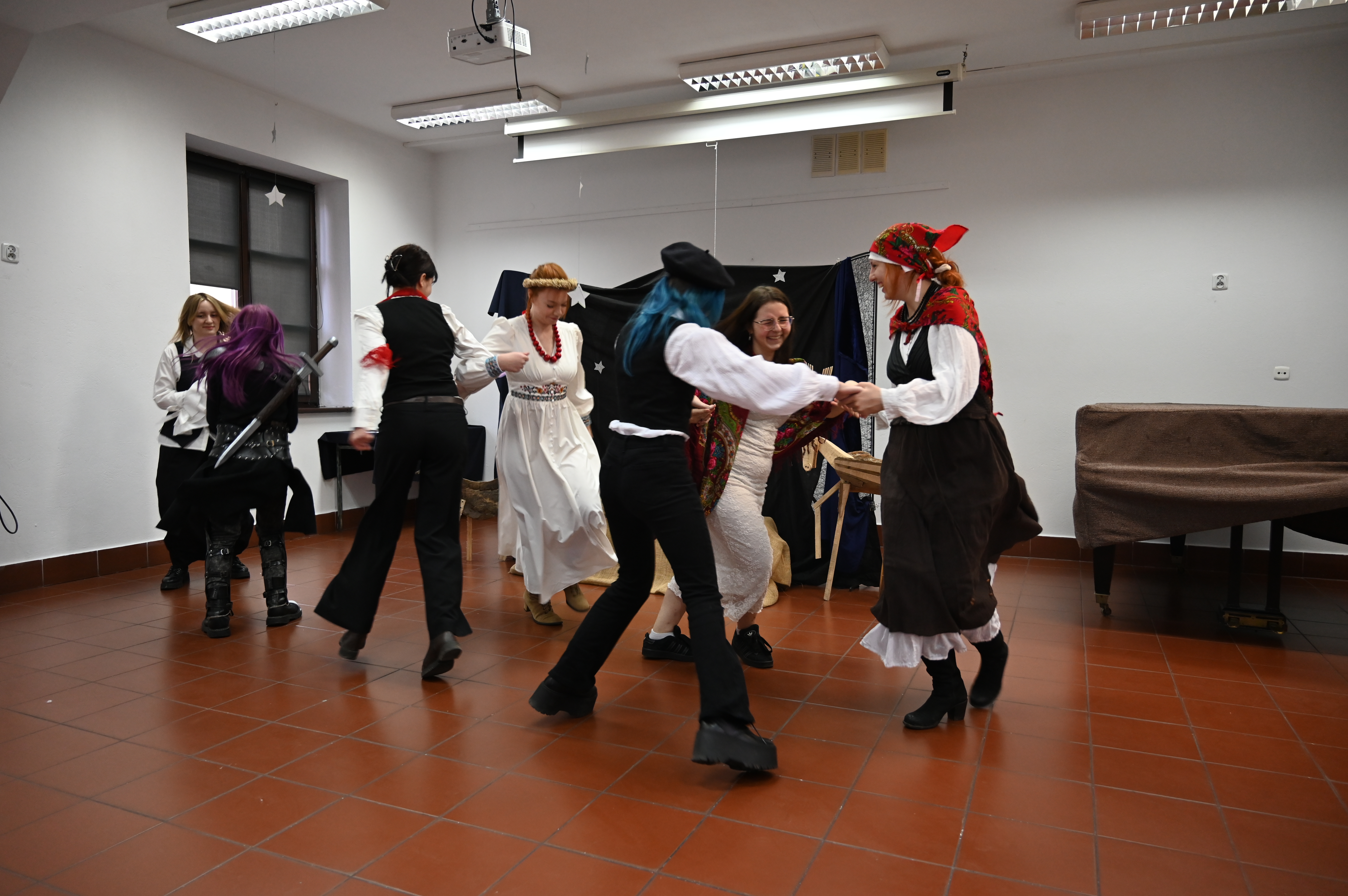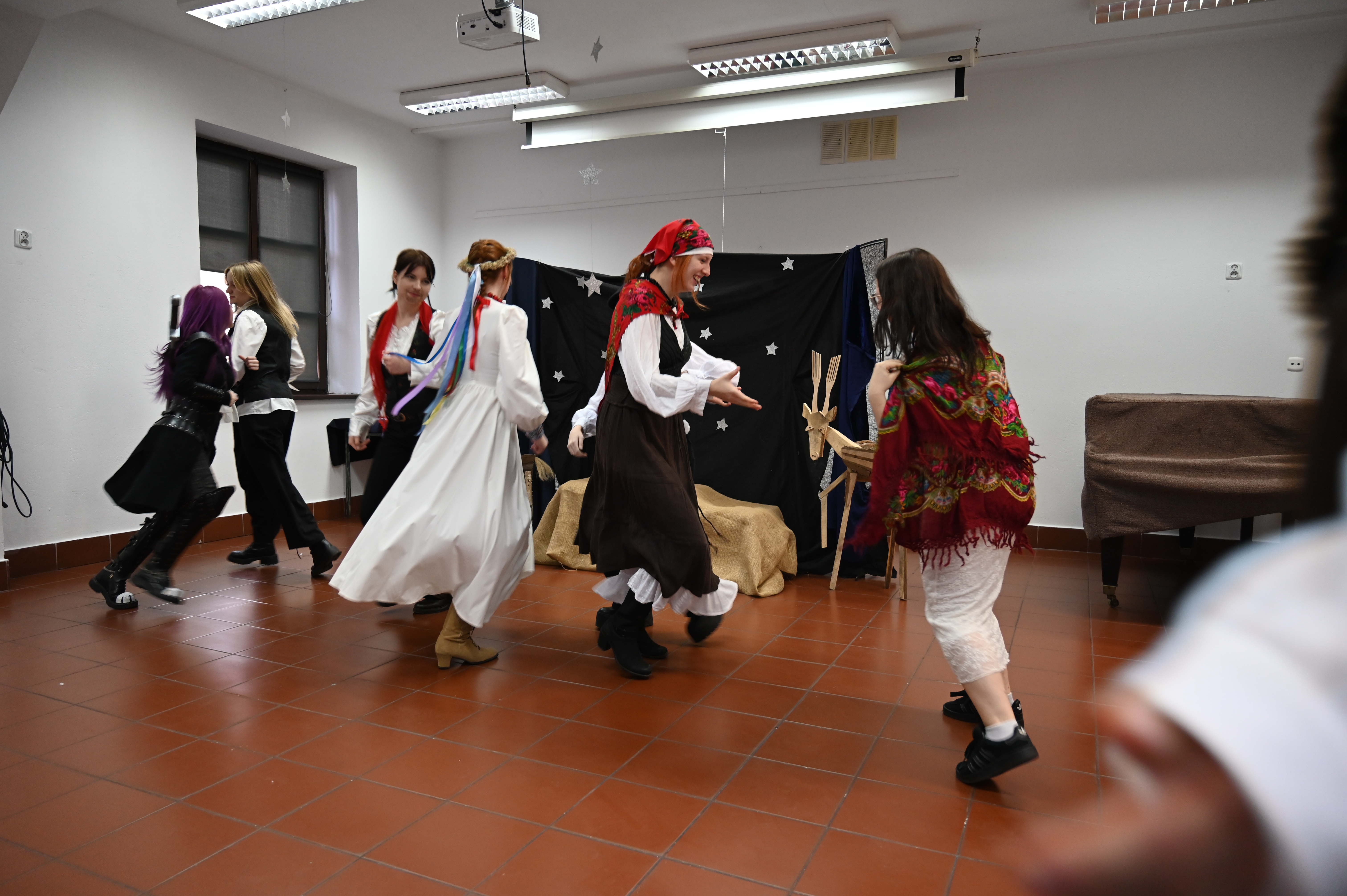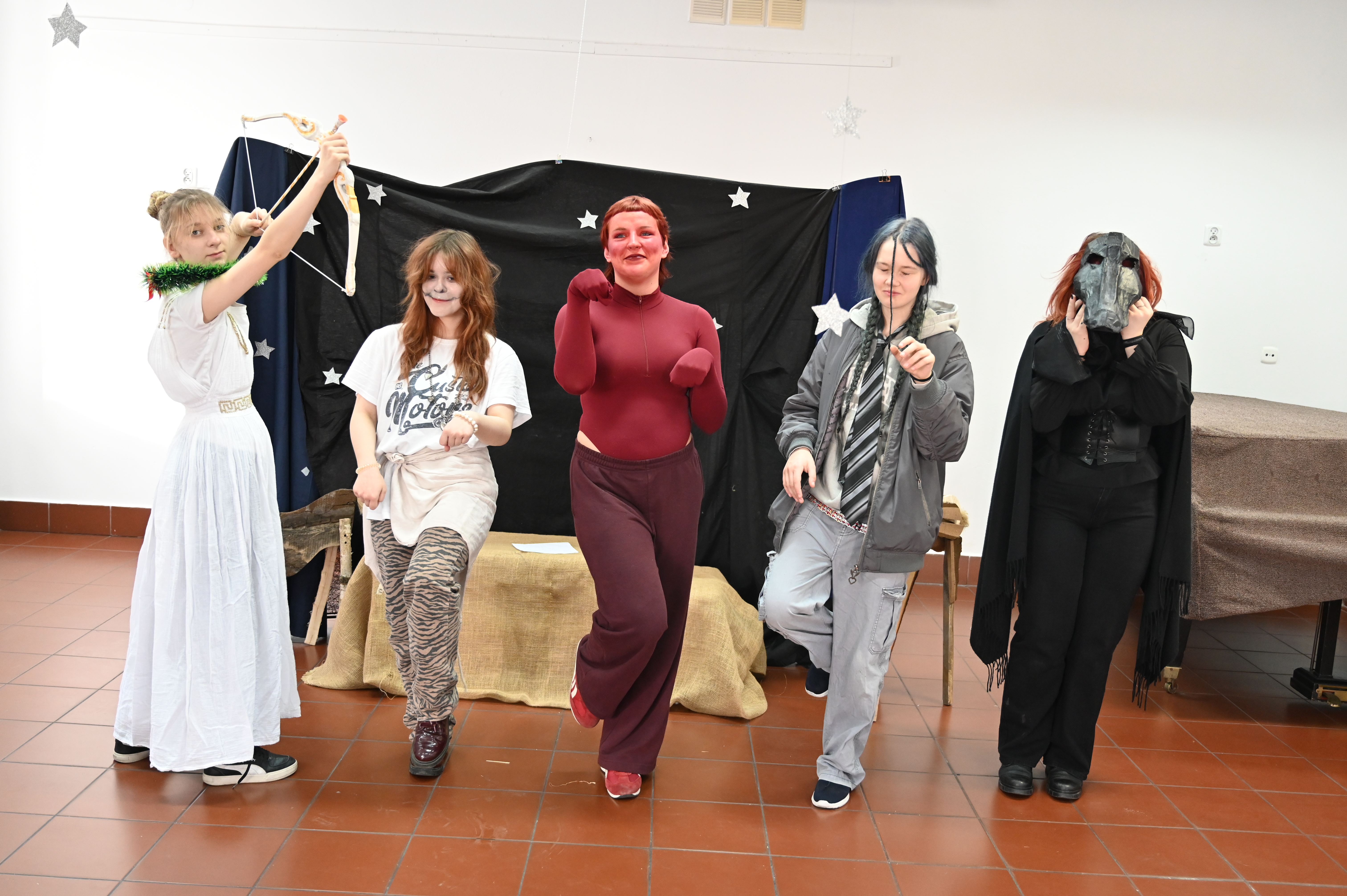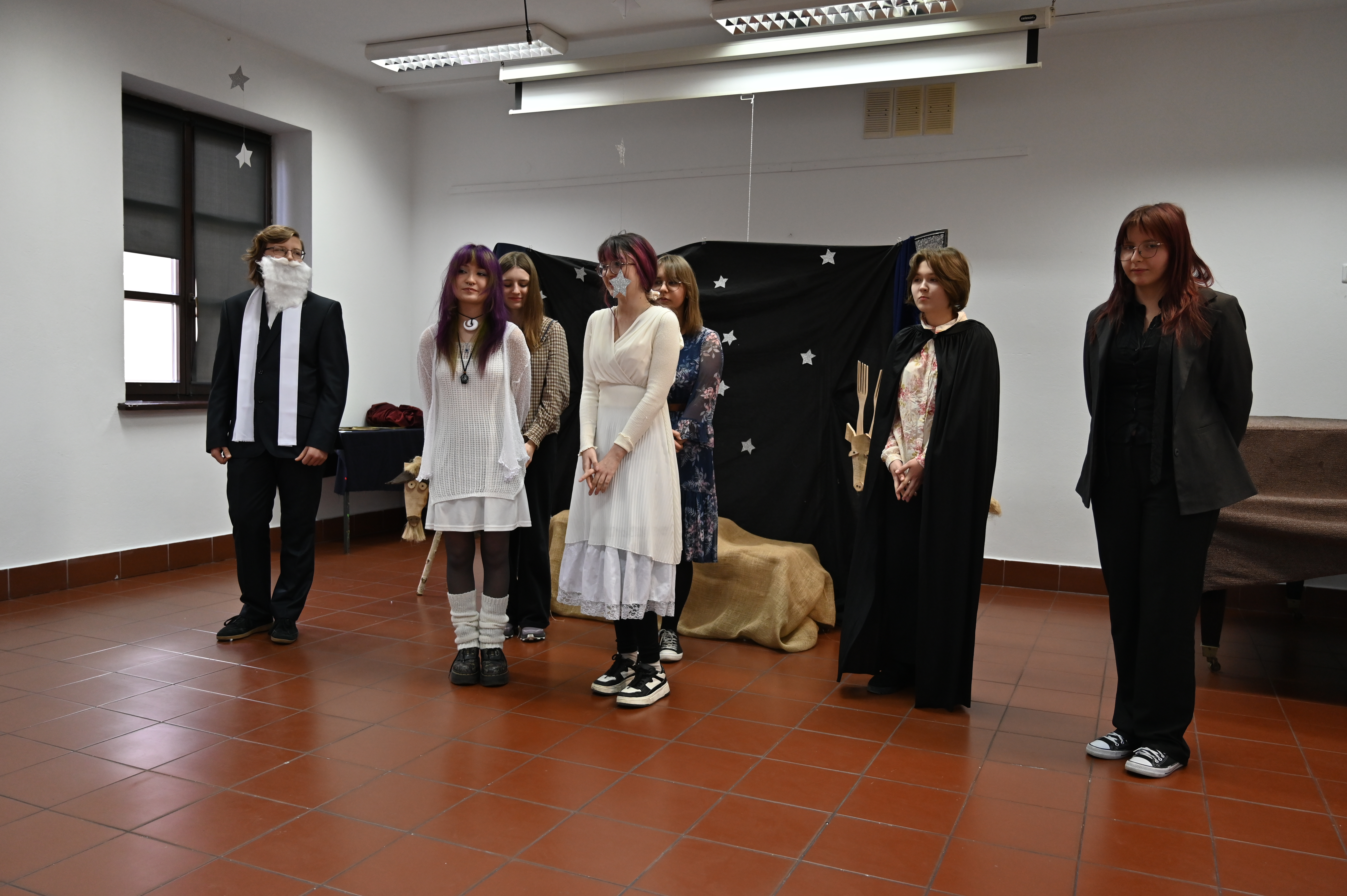 Właśnie w obecności naszych gości odbyły się główne prezentacje lektur. Praca nad projektem trwała kilka tygodni - na lekcjach języka polskiego uczniowie pod okiem nauczycieli polonistów analizowali teksty i wybierali najbardziej kluczowe, ich zdaniem, fragmenty dzieł literackich. Kolejnym etapem była praca nad formą - przekształcenie słowa pisanego w ruch sceniczny, gesty, emocje. Efektem tych działań były wyjątkowe etiudy teatralne. Każda klasa zaprezentowała własną interpretację klasyki, wykazując się talentem aktorskim. Klasa I a przygotowała "Apokalipsę św. Jana", kl. II a - balladę "Romantyczność A. Mickiewicza, III a "Chłopów" W. Reymonta, III b - "Lalkę" B. Prusa, IV a - "Ferdydurke" W. Gombrowicza, IV b - S. "Wesele" Wyspiańskiego, V a - "Rok 1984" G. Orwella, V b - "Tango" S. Mrożka. Jako szkoła artystyczna dużą wagę przywiązaliśmy również do oprawy wizualnej - każdy uczeń samodzielnie przygotował kostium odpowiadający granej postaci. Na szkolnych korytarzach można było spotkać bohaterów z różnych epok, co stworzyło niezwykły klimat. Szkolny dzień lektur to dowód na to, że kanon literatury nie musi być nudny. Dzięki zaangażowaniu młodzieży i nauczycieli polonistów postacie z książek ożyły, a wspólne przygotowania stały się doskonałą okazją do integracji i rozwijania kreatywności.