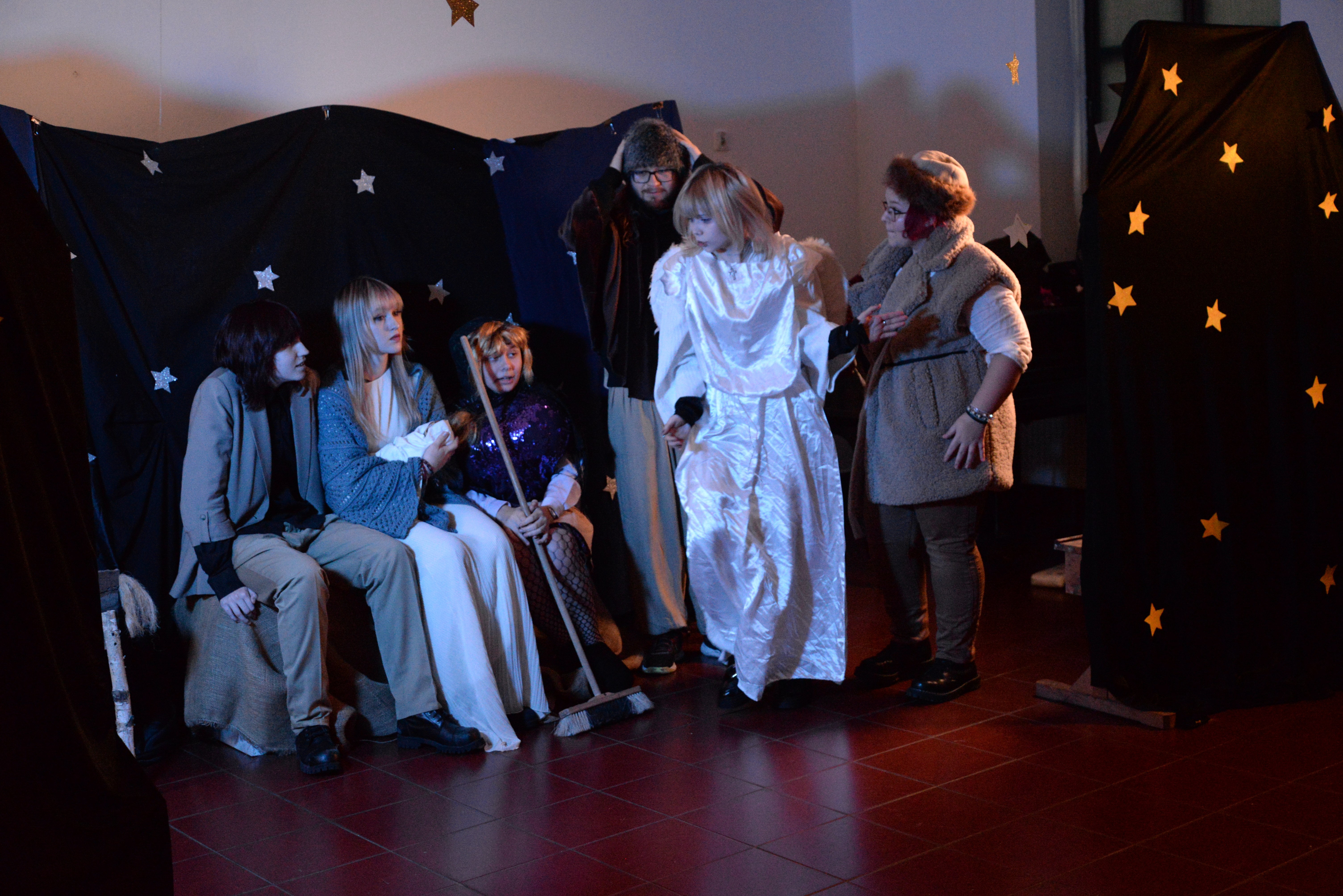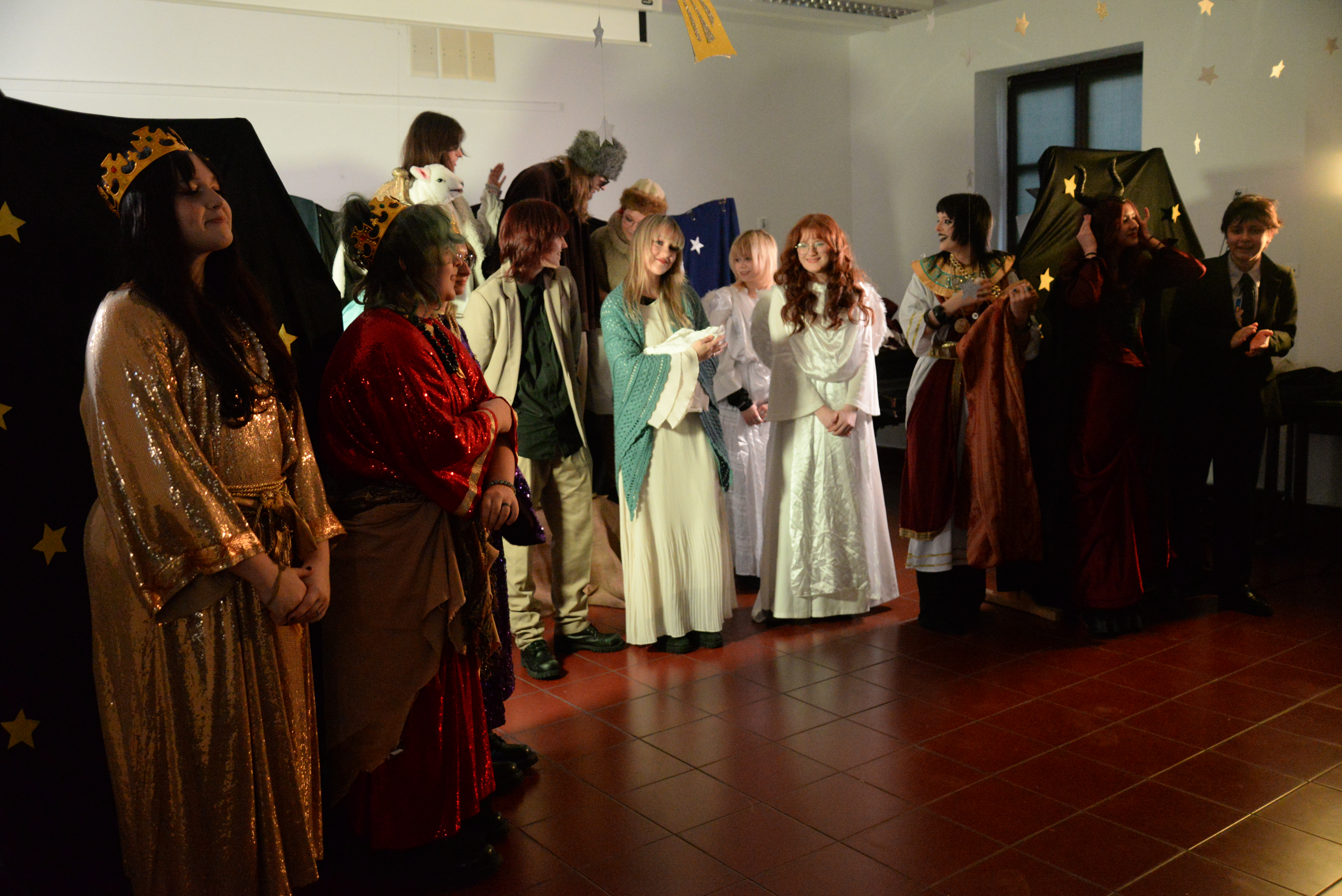 Młodzi artyści zaprezentowali pełen humoru i pozytywnej energii spektakl pt. „Jasełka na wesoło”, który w wyjątkowy sposób połączył tradycję z nowoczesnym, zabawnym przekazem. Barwne postacie, dynamiczna gra aktorska oraz liczne elementy komediowe sprawiły, że widownia z dużym entuzjazmem przyjęła przedstawienie, nagradzając aktorów gromkimi brawami. Występ wprowadził całą społeczność szkolną w radosny, świąteczny nastrój i stał się doskonałym wstępem do nadchodzących Świąt Bożego Narodzenia.
