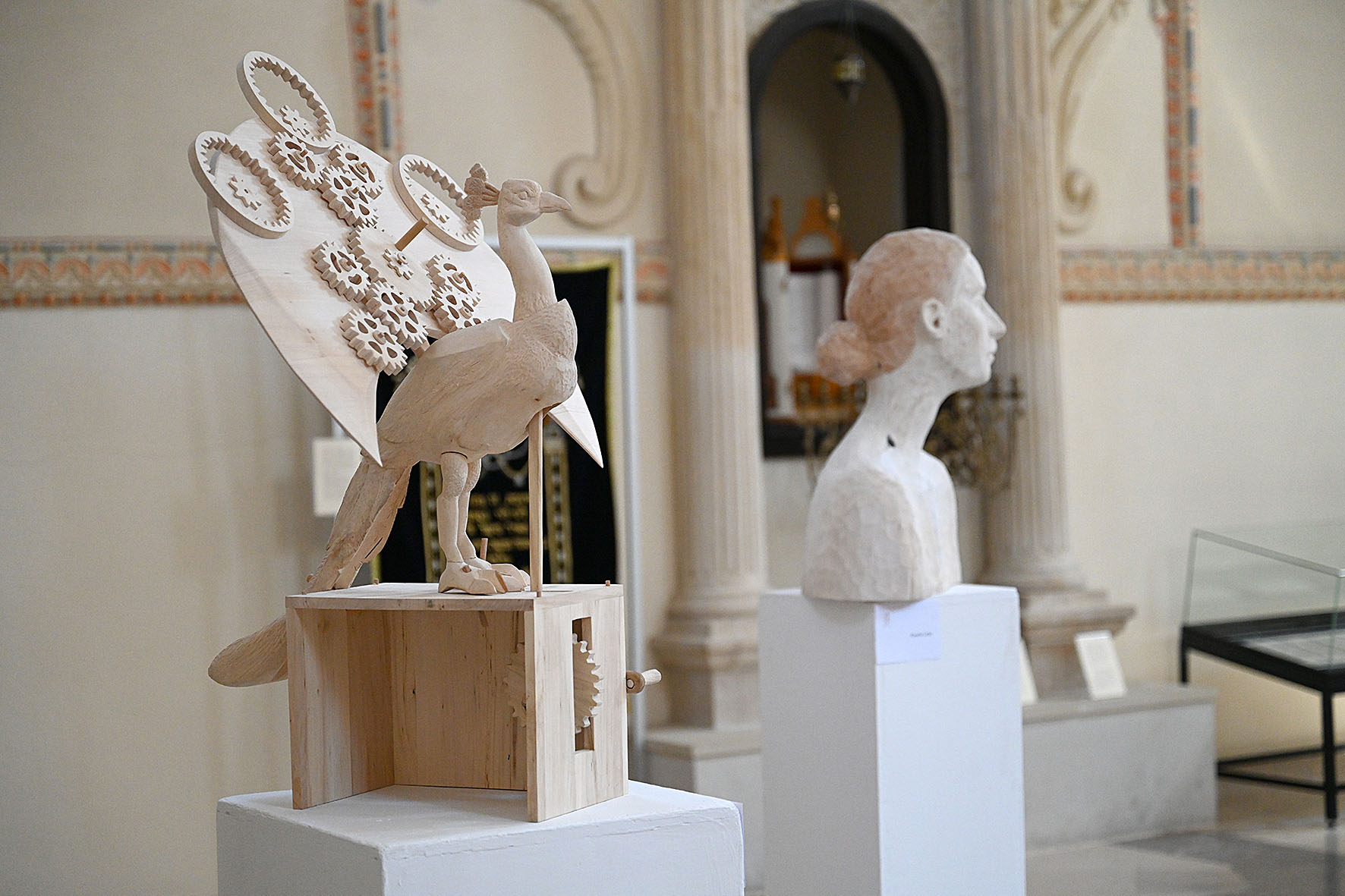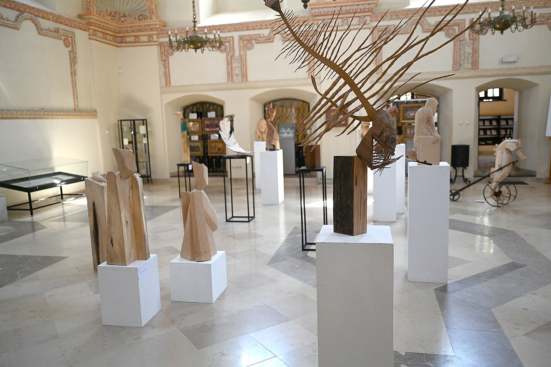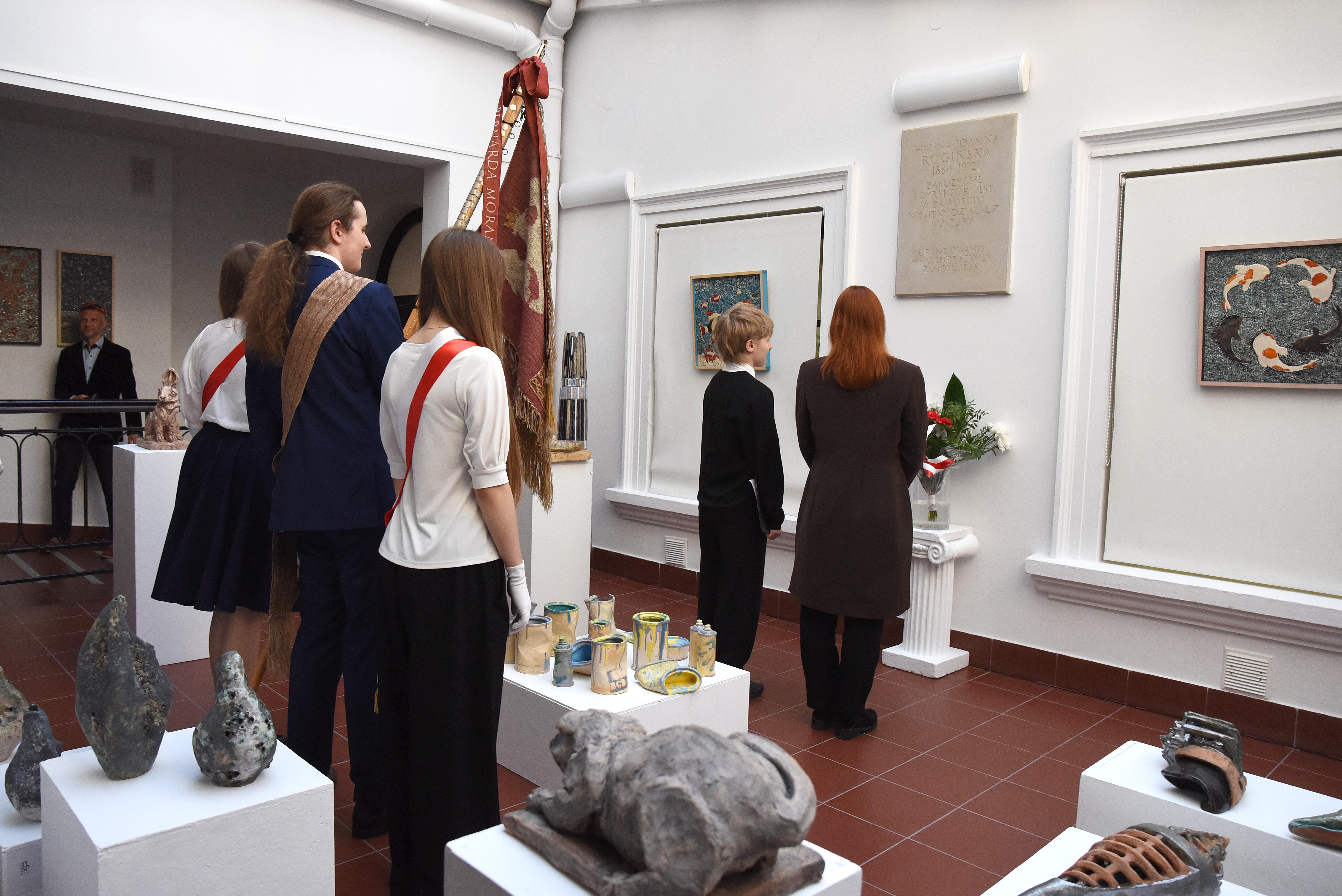 W dalszej części programu przenieśliśmy się do BWA Galerii Zamojskiej na wernisaż prac aż 60 absolwentów, gdzie podziwiać można było różnorodny dorobek artystyczny – wydarzenie to stało się nie tylko niezapomnianym świętem sztuki, ale również magicznym spotkaniem pokoleń twórców, dla których PLSP w Zamościu było początkiem drogi artystycznej. Po wernisażu goście jubileuszu mieli okazję wyruszyć na wyjątkowe zwiedzanie szkoły - uczniowie, przebrani za żywe obrazy, tworzyli niepowtarzalną atmosferę, łącząc przeszłość z teraźniejszością i ożywiając mury szkoły niezwykłą ekspresją. Ten szczególny moment pozwalał nie tylko oglądać, ale i poczuć ducha twórczości, który na trwałe wpisał się w historię tego miejsca. Kolejnym punktem jubileuszowych obchodów była wizyta w Centrum „Synagoga” Fundacji Ochrony Dziedzictwa Żydowskiego, gdzie prezentowaliśmy wystawę ukazującą dorobek pracowni rzeźby i snycerstwa. Ekspozycja ta, ukazująca zarówno klasyczne podejście do formy, jak i współczesne interpretacje, stanowiła świadectwo kunsztu, precyzji i wrażliwości artystycznej młodych twórców. Każda z rzeźb, od drobnych detali snycerskich po większe kompozycje przestrzenne, niosła ze sobą indywidualną opowieść, będąc zarazem wyrazem poszukiwań tożsamości artystycznej oraz dialogu z tradycją i nowoczesnością.