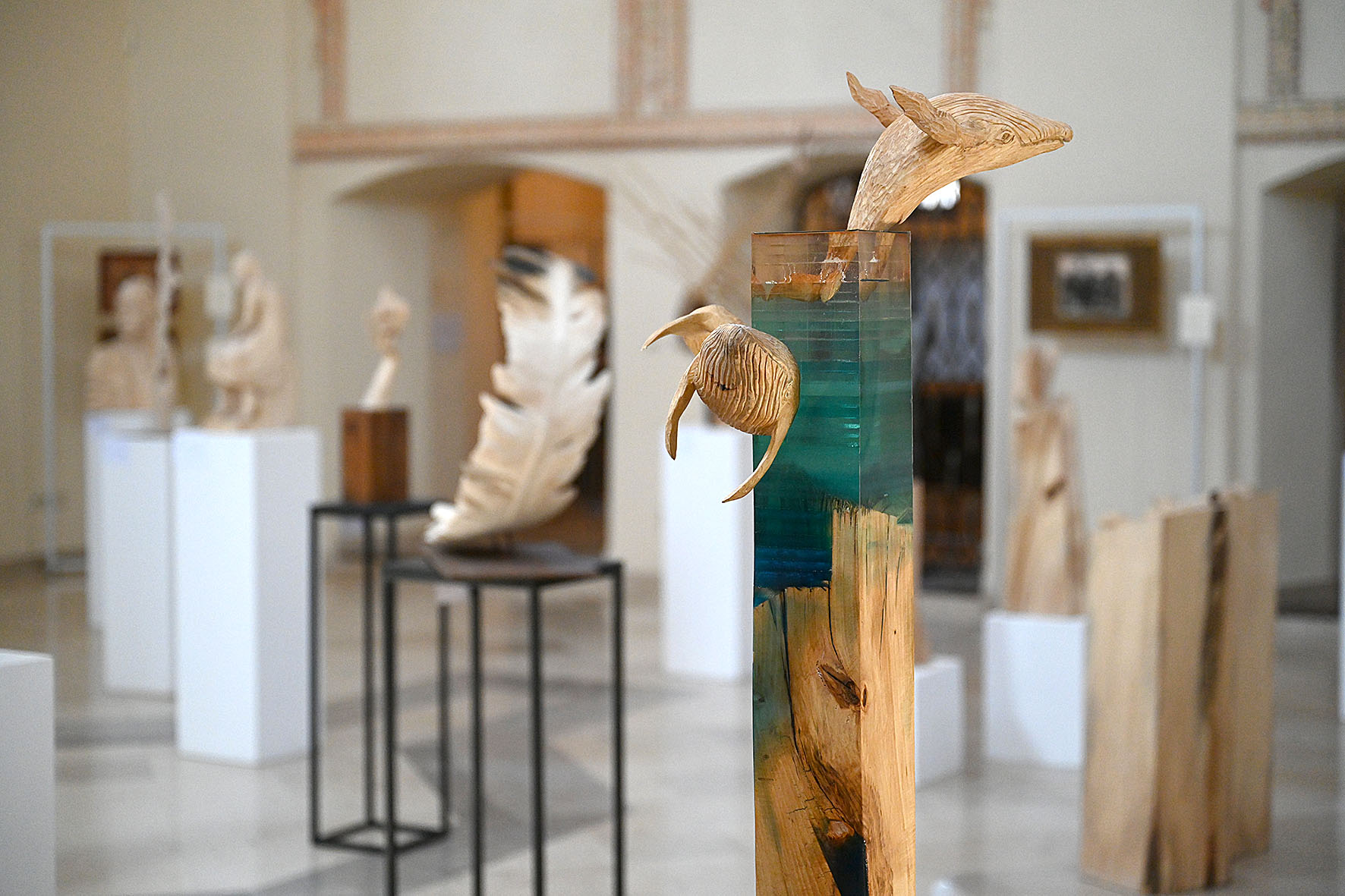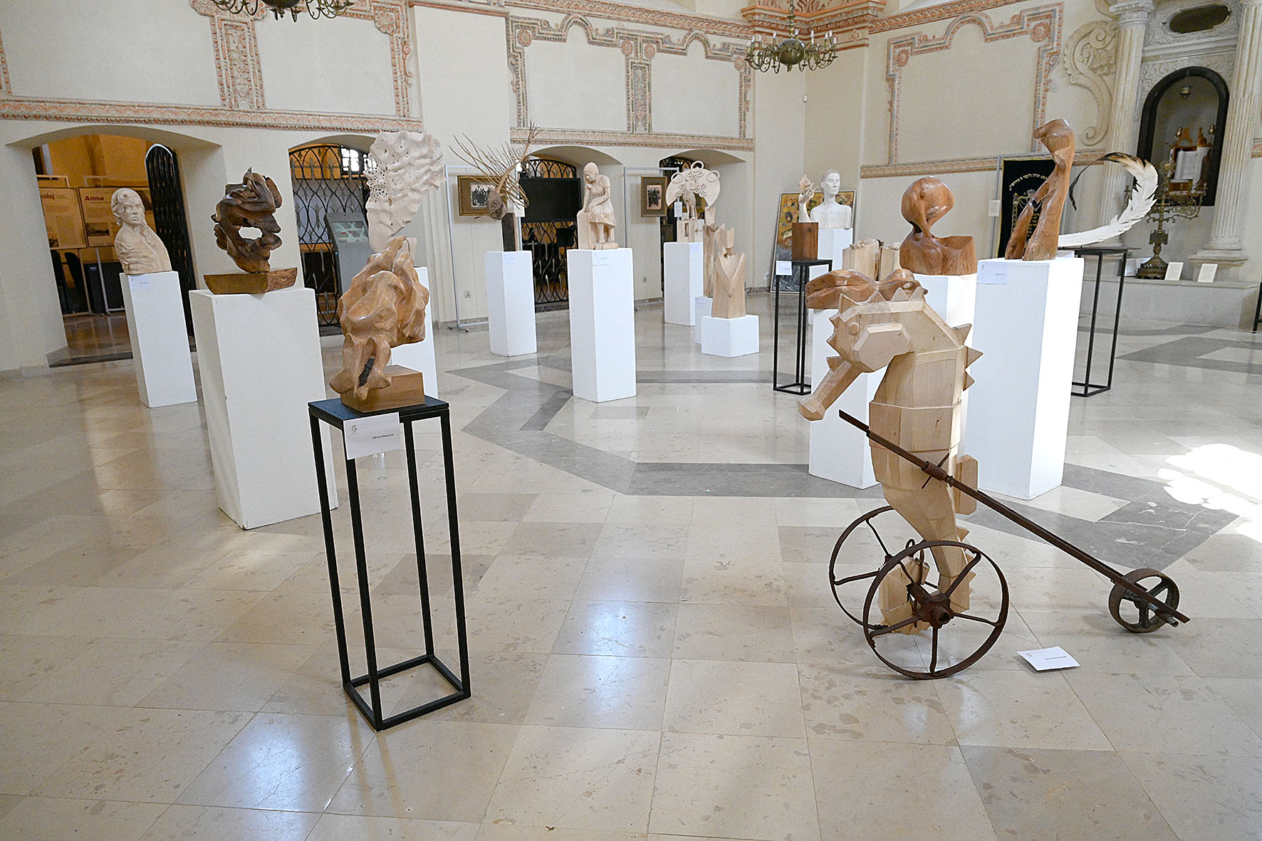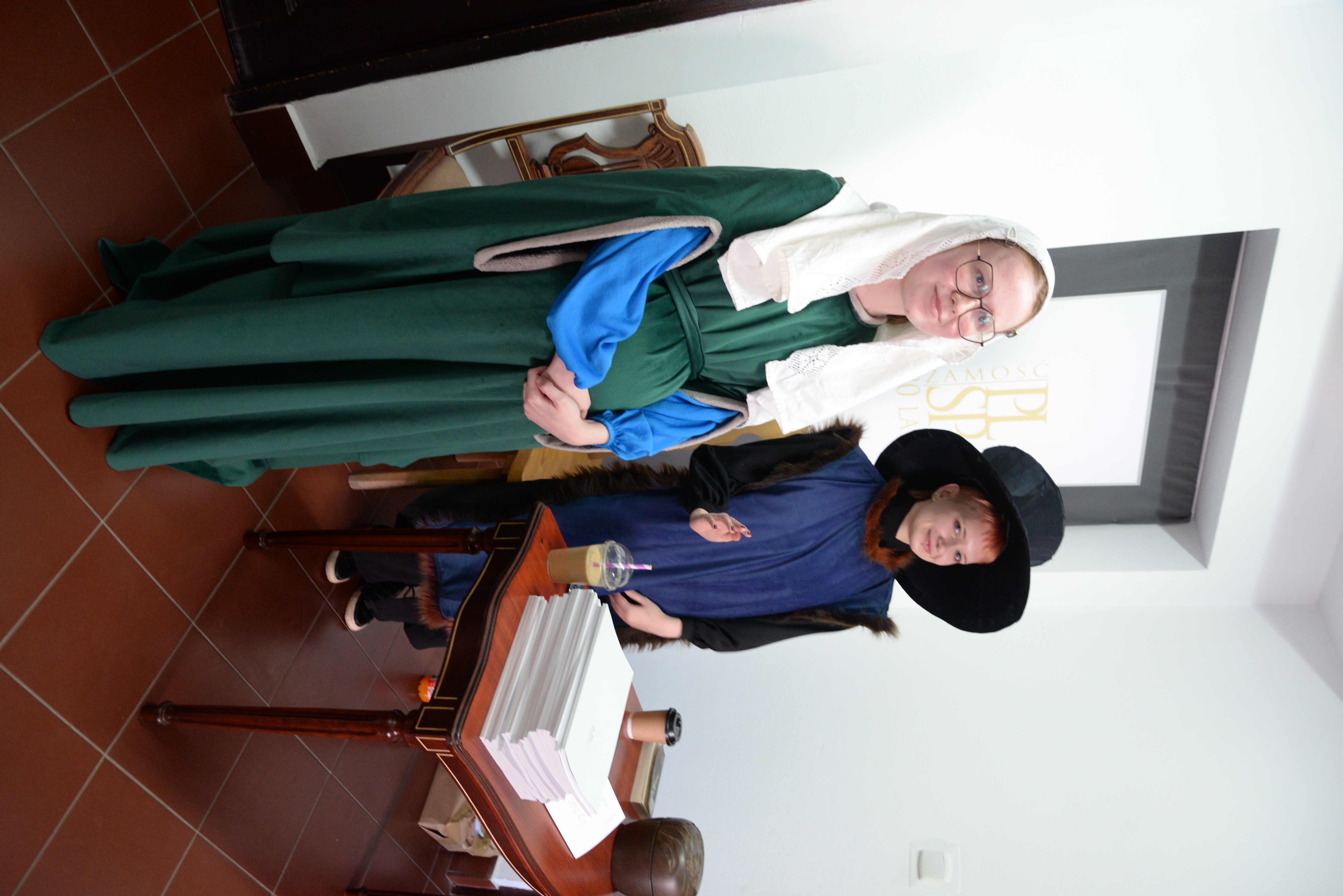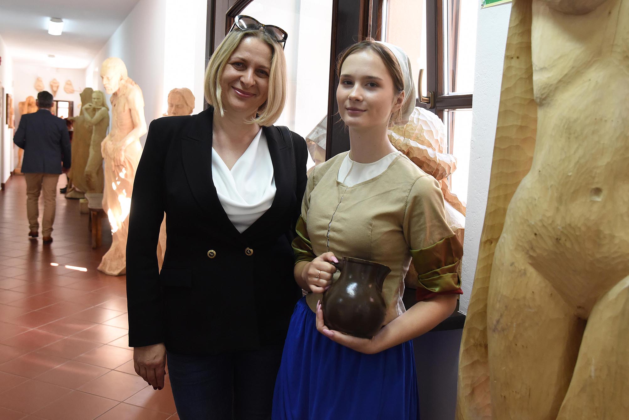 W dalszej części programu przenieśliśmy się do BWA Galerii Zamojskiej na wernisaż prac aż 60 absolwentów, gdzie podziwiać można było różnorodny dorobek artystyczny – wydarzenie to stało się nie tylko niezapomnianym świętem sztuki, ale również magicznym spotkaniem pokoleń twórców, dla których PLSP w Zamościu było początkiem drogi artystycznej. Po wernisażu goście jubileuszu mieli okazję wyruszyć na wyjątkowe zwiedzanie szkoły - uczniowie, przebrani za żywe obrazy, tworzyli niepowtarzalną atmosferę, łącząc przeszłość z teraźniejszością i ożywiając mury szkoły niezwykłą ekspresją. Ten szczególny moment pozwalał nie tylko oglądać, ale i poczuć ducha twórczości, który na trwałe wpisał się w historię tego miejsca. Kolejnym punktem jubileuszowych obchodów była wizyta w Centrum „Synagoga” Fundacji Ochrony Dziedzictwa Żydowskiego, gdzie prezentowaliśmy wystawę ukazującą dorobek pracowni rzeźby i snycerstwa. Ekspozycja ta, ukazująca zarówno klasyczne podejście do formy, jak i współczesne interpretacje, stanowiła świadectwo kunsztu, precyzji i wrażliwości artystycznej młodych twórców. Każda z rzeźb, od drobnych detali snycerskich po większe kompozycje przestrzenne, niosła ze sobą indywidualną opowieść, będąc zarazem wyrazem poszukiwań tożsamości artystycznej oraz dialogu z tradycją i nowoczesnością.