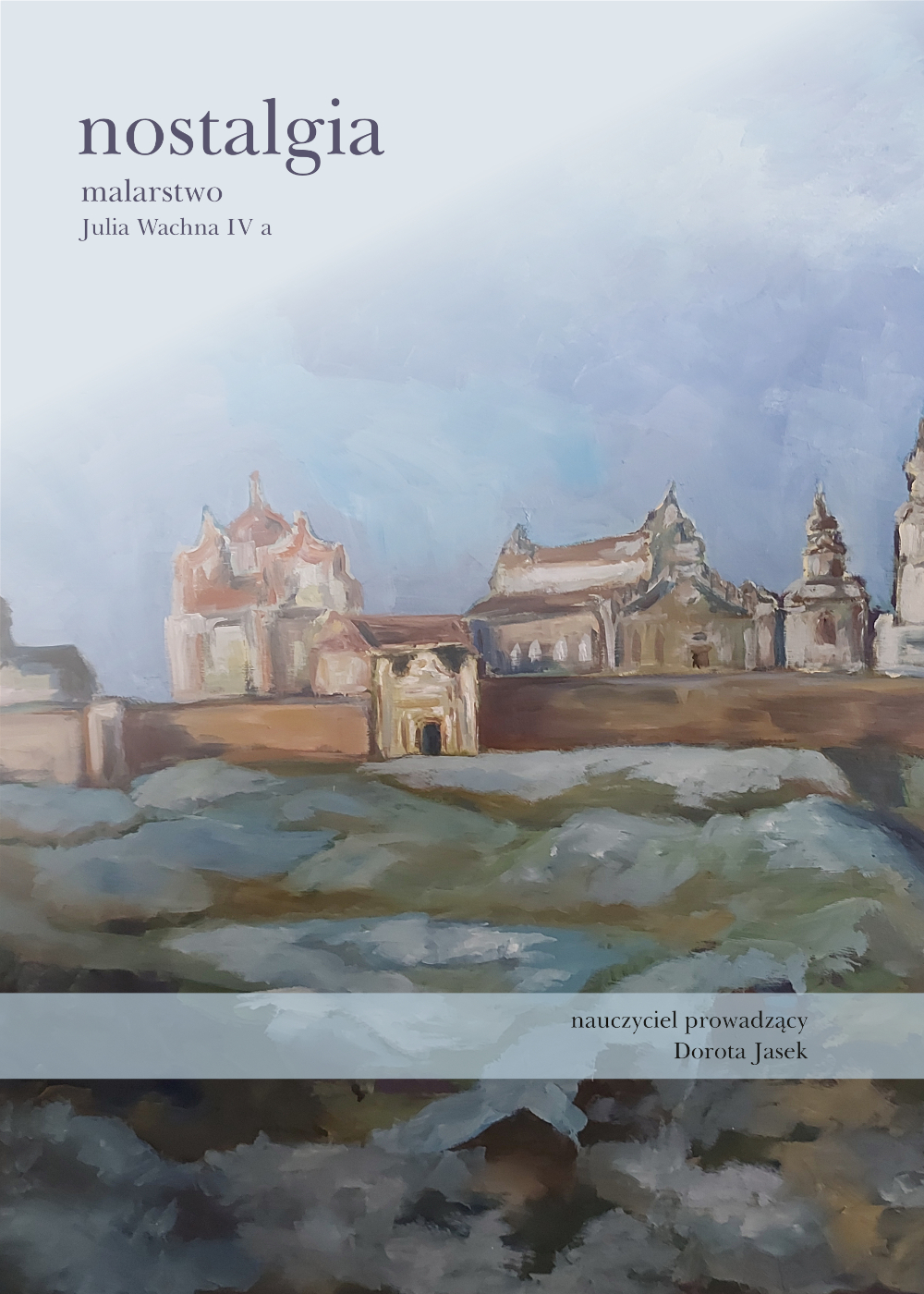 12 stycznia 2023 roku w galerii Patio odbył się pierwszy w tym roku kalendarzowym wernisaż malarstwa Julii Wachny z klasy IV a. Wybrane prace powstawały zarówno w pracowni jak i w domu. Tytuł wystawy „nostalgia” to powracanie do minionych epok, stylów, co jak Julia zaznaczyła jest jej główną inspiracją. Wśród pejzaży, których autorka czerpie tematykę z dzieł mistrzów malarstwa światowego – Rembrandta, Turnera czy Friedricha, można znaleźć również obrazy scen batalistycznych. Jest to widoczna inspiracja Kossakami, jak również uczestnictwem Julii we współczesnych rekonstrukcjach różnych bitew konnych m.in. bitwy pod Komarowem. Prace powstały pod kierunkiem Pani Doroty Jasek.