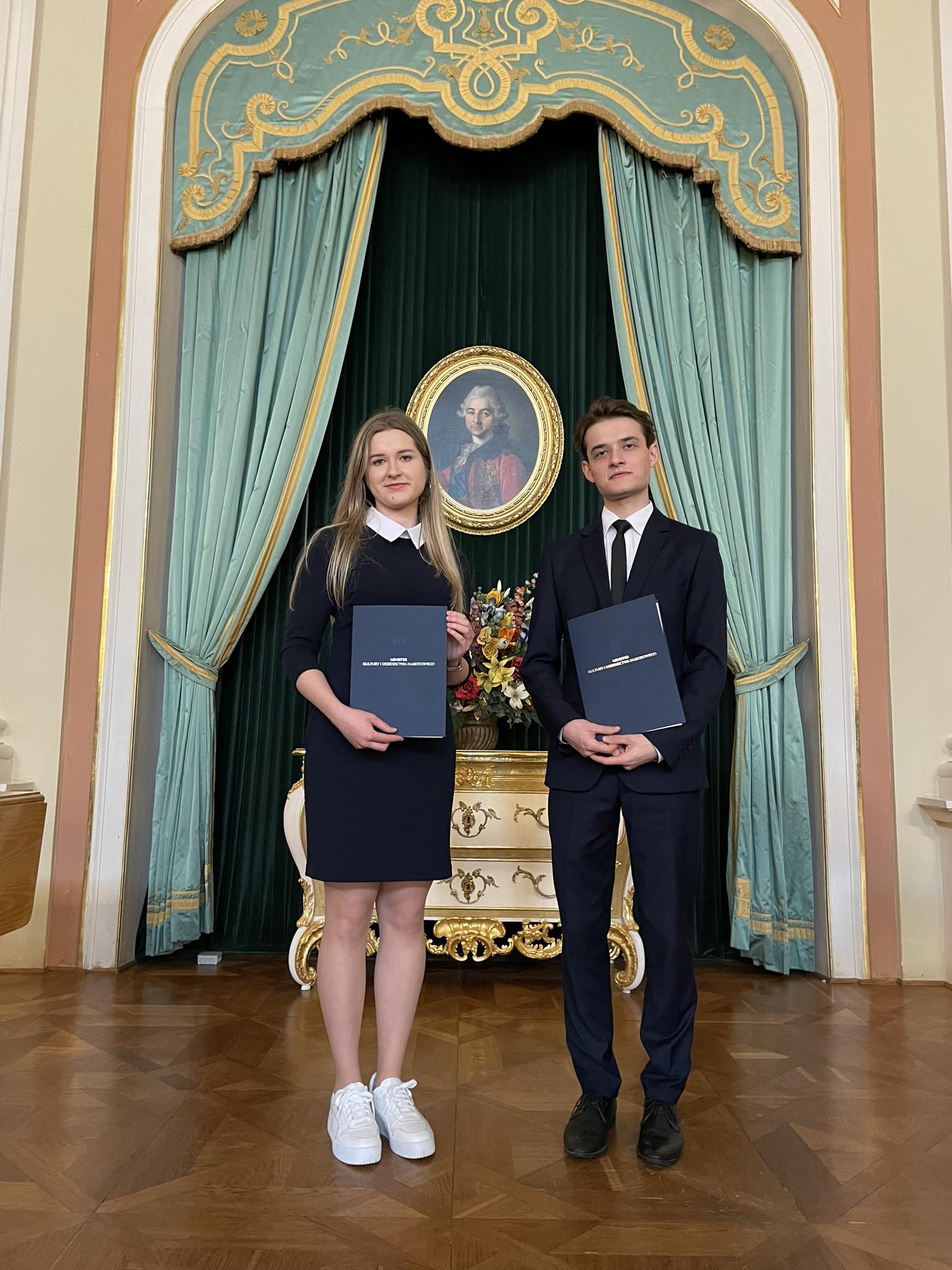 Jest nam niezmiernie miło poinformować, że nasi uczniowie - Adriana Wojtiuk oraz Bartosz Stadnik odebrali z rąk Pana Jarosława Wartaka - Dyrektora Departamentu Szkolnictwa Artystycznego oraz Pani Agnieszki Hejduk Domańskiej -Zastępcy Dyrektora Departamentu Szkolnictwa Artystycznego najwyższe wyróżnienia jakie może otrzymać uczeń szkoły artystycznej- stypendia Ministra Kultury i Dziedzictwa Narodowego za osiągnięcia artystyczne w roku szkolnym 2022/2023. Serdecznie gratulujemy i życzymy dalszych sukcesów.