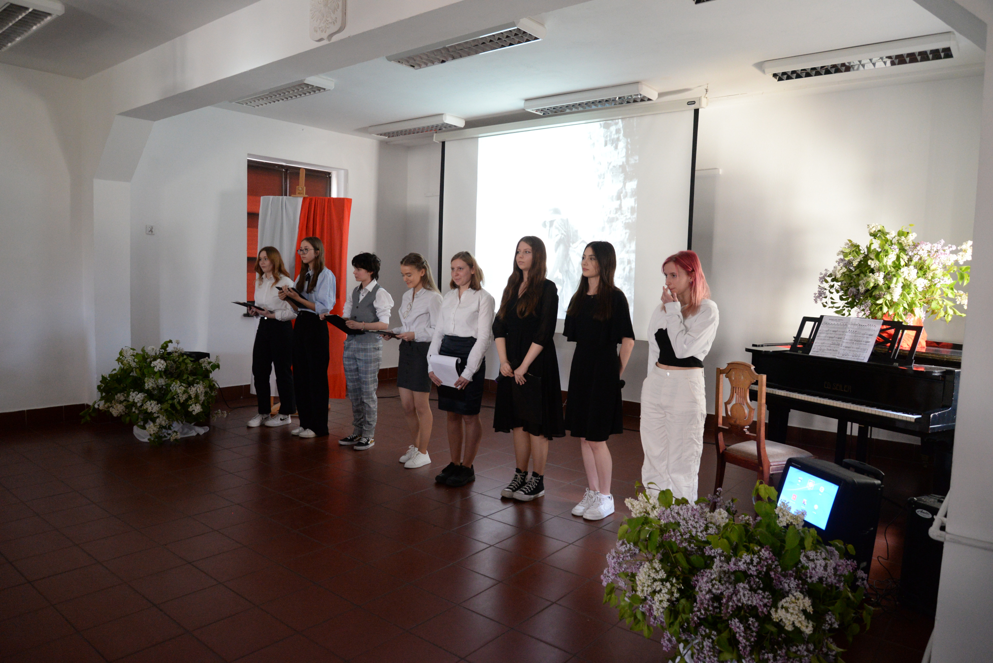 W piątek 12 maja 2023 roku w auli szkolnej odbył się apel z okazji 232 rocznicy uchwalenia Konstytucji 3 Maja. Była to cenna lekcja historii, podczas której uczniowie mogli zapoznać się z istotnymi dla naszego kraju wydarzeniami z przeszłości. Na początku apelu, uczennica klasy II B (Lena Markowska), zagrała na pianinie uroczysty utwór. Następnie uczennica klasy III B (Magda Rachańska) wykonała pieśń "Jest takie miejsce". W dalszej części uroczystości, społeczność szkolna wysłuchała patriotycznych wierszy oraz historycznych faktów. Apel został przygotowany przez uczniów klasy III B - Aleksandrę Bochniak, Jagodę Górską, Magdę Rachańską, Noemi Blicharz, Katarzynę Pąk, pod kierunkiem pani Doroty Jasek. W uroczystości wzięły również udział uczennice klasy I A Joanna Dziuba oraz Maura Więcek, które na zakończenie apelu wraz z klasą III B wykonały uroczystą, wzruszającą pieśń. Za obsługę techniczną odpowiadały Martyna Zawiślak (uczennica klasy III A) oraz Weronika Kostrubiec (uczennica klasy IV A). Scenografię przygotował pan Bartłomiej Sęczawa. Opracowanie: Jagoda Górska