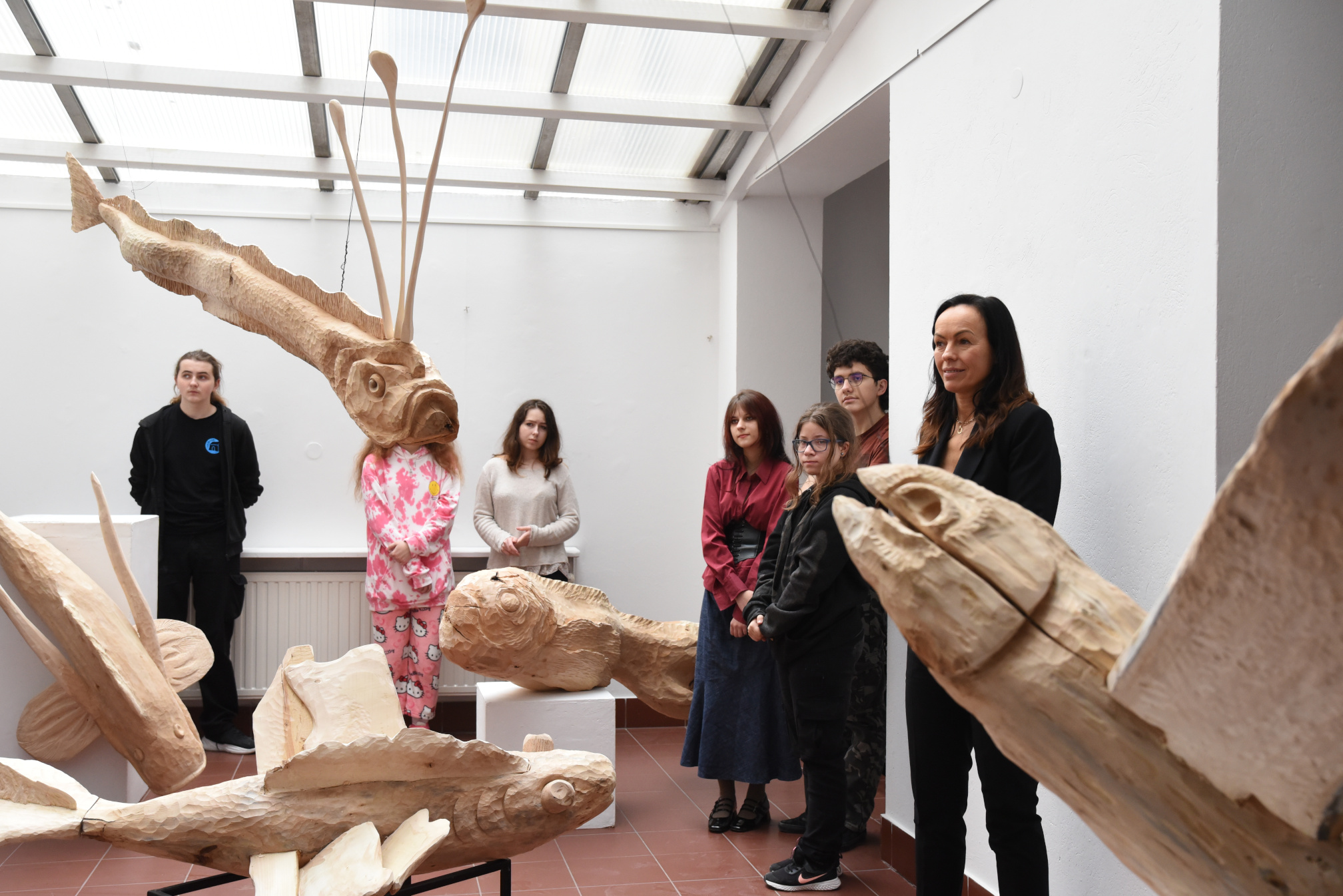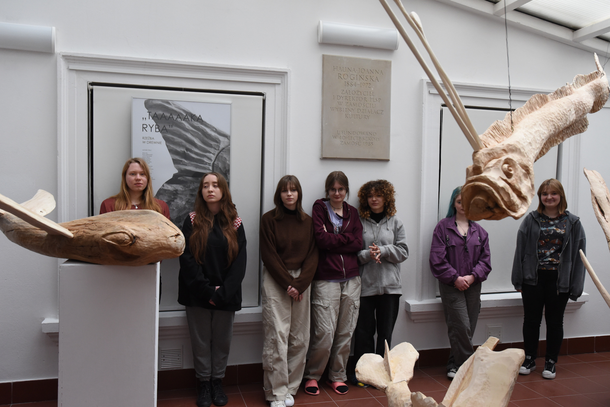 W dniu 28.02.2024 w galerii „Patio” odbył się wernisaż poplenerowej wystawy rzeźby w drewnie. Uroczystego jej otwarcia dokonała dyrektor naszej szkoły Marzena Tadeusz. Autorami wystawy są uczniowie klasy 2A i 3A o specjalizacji - snycerstwo. Eksponowane prace powstały podczas ubiegłorocznego jesiennego pleneru rzeźbiarskiego, zorganizowanego przez naszą szkołę pod kierunkiem Tomasza Bełecha i Jacka Kołodziejczyka. Tematem prac stało się ekspresyjne oblicze ryby, której różnorodne „kształty” własnoręcznie zaprojektowali i indywidualnie wykonali uczestnicy pięciodniowego pleneru. Powstałe prace przyciągają bezpośrednią, trochę surową w wyrazie formą, tym samym stają się kwintesencją rzeźby, która daje nam możliwość doświadczania jej w pełni naszymi wszystkimi zmysłami. Choć prace są trochę „niedoskonałe” , jednak dzięki temu stają się prawdziwe i bliskie nam ludziom, wydają się jednocześnie tak odmienne od tego, do czego przyzwyczaja nas obecnie kultura masowa. Są sprzeczne z jej powierzchownością i idealizacją, przez co stają się tym bardziej wyjątkowe i unikalne – pierwotne w wyrazie. Zapraszamy wszystkich do odwiedzenia naszej galerii i obejrzenia wystawy - codziennie od poniedziałku do piątku.