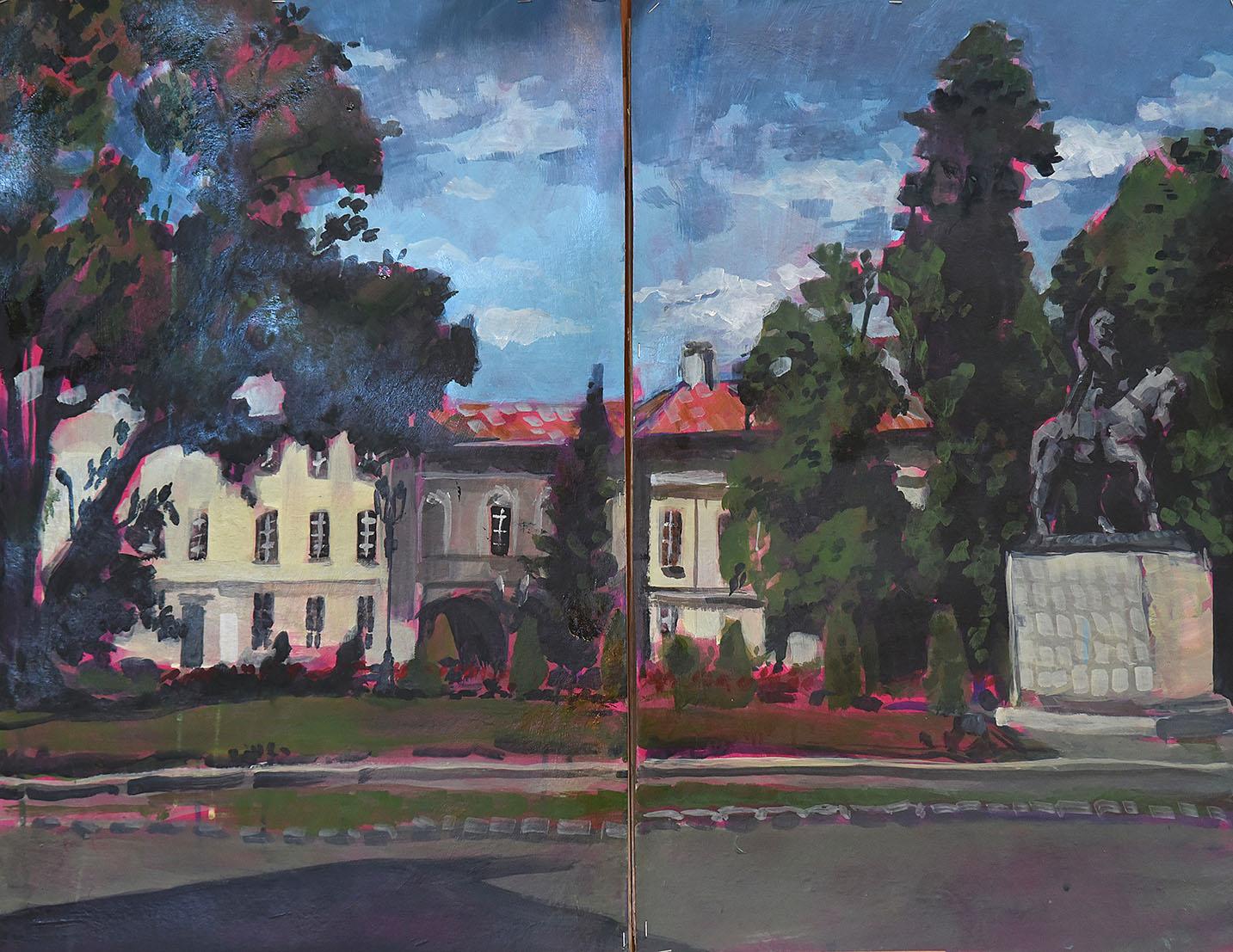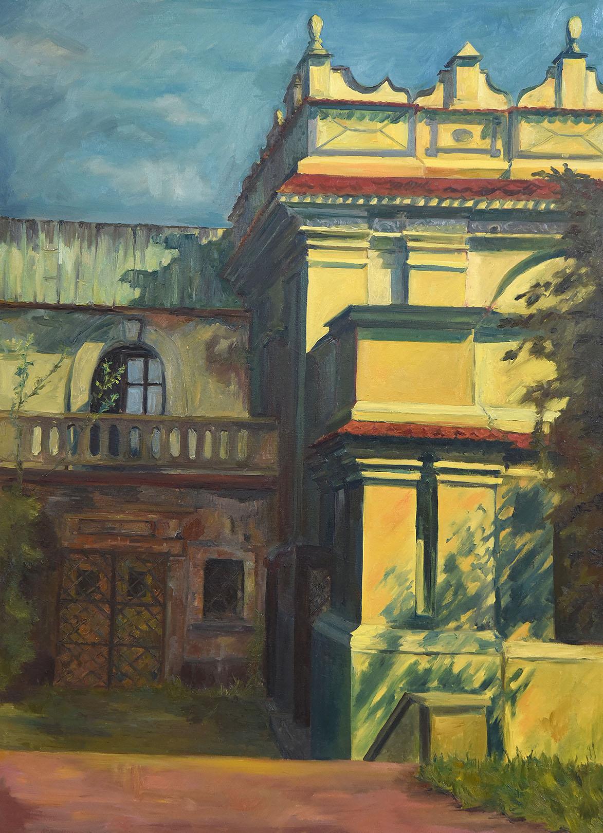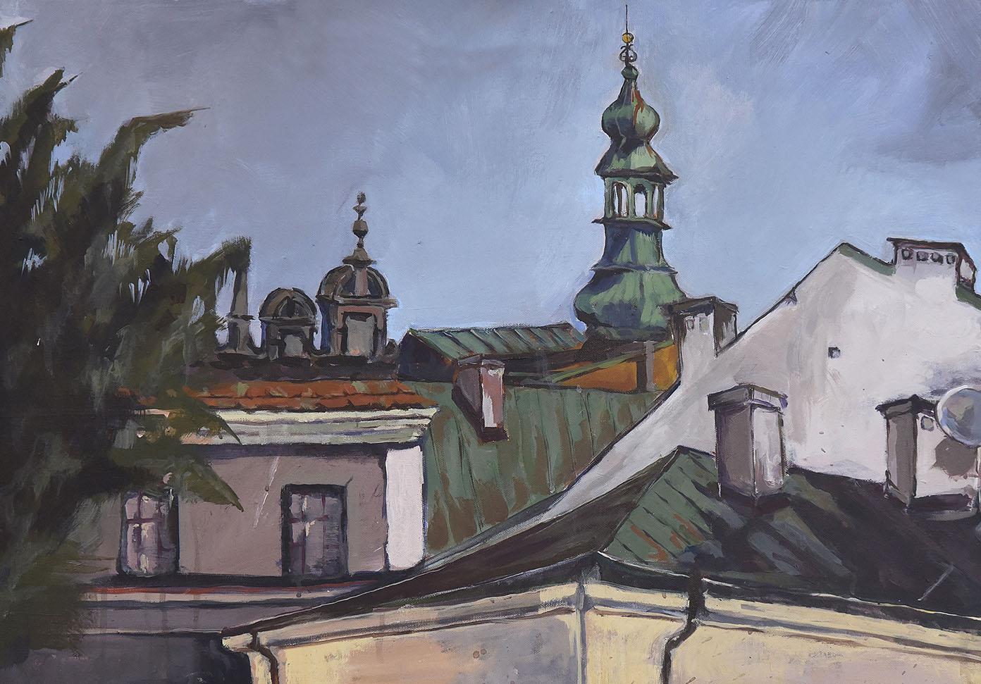 Już w poniedziałek po południu na płótnach pojawiły się pierwsze kadry z naszego miasta: fragmenty zamojskich kamieniczek odbijające się w kałużach, kameralne podwórka, synagoga, czy skąpane w słońcu, interesująco komponowane wieże zamojskiej Katedry czy ratusza. Zmienna aura nie przeszkadzała adeptom malarstwa w ich twórczych zmaganiach, przeciwnie, stała się inspiracją do formalnych poszukiwań i spełnionych prób przeniesienia na płótno wpływu zmiennego światła naturalnego na obiekt. Pracy towarzyszyło duże skupienie i radość. Zamość po raz kolejny okazał się miastem inspiracji dla naszych drogich Gości. Czas pleneru niestety dobiegł końca, ale przecież został zatrzymany i odzyskany w obrazach. Jesteśmy wdzięczni za minione dni i już czekamy na kolejną edycję Pleneru "ZAMOŚĆ PERŁA RENESANSU".