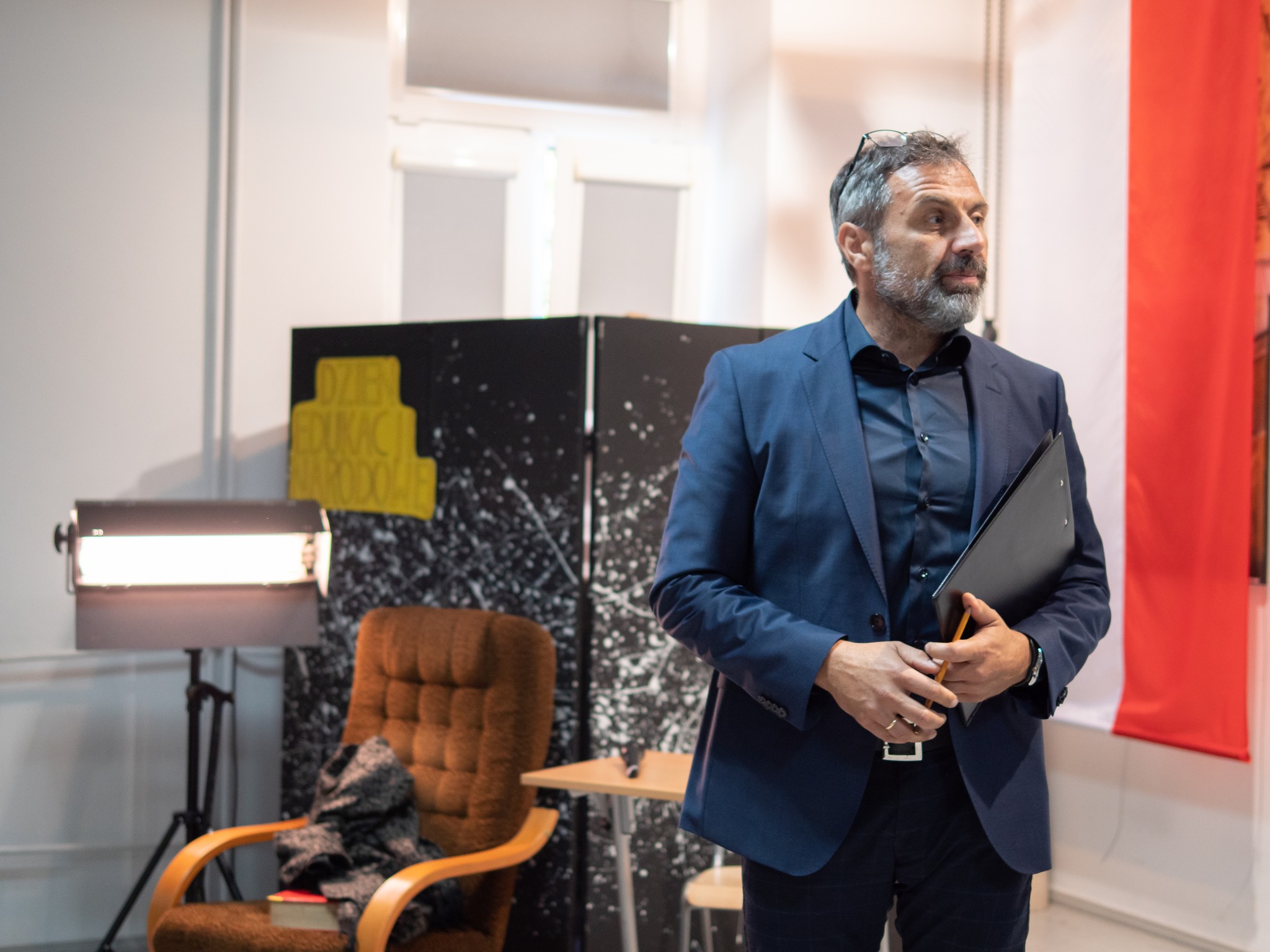 Dyrektor szkoły, Pan Witold Rajczak podziękował zgromadzonym za współpracę, zwracając uwagę, że naszą Radę Pedagogiczną wciąż zasilają nowi nauczyciele będący absolwentami Plastyka.