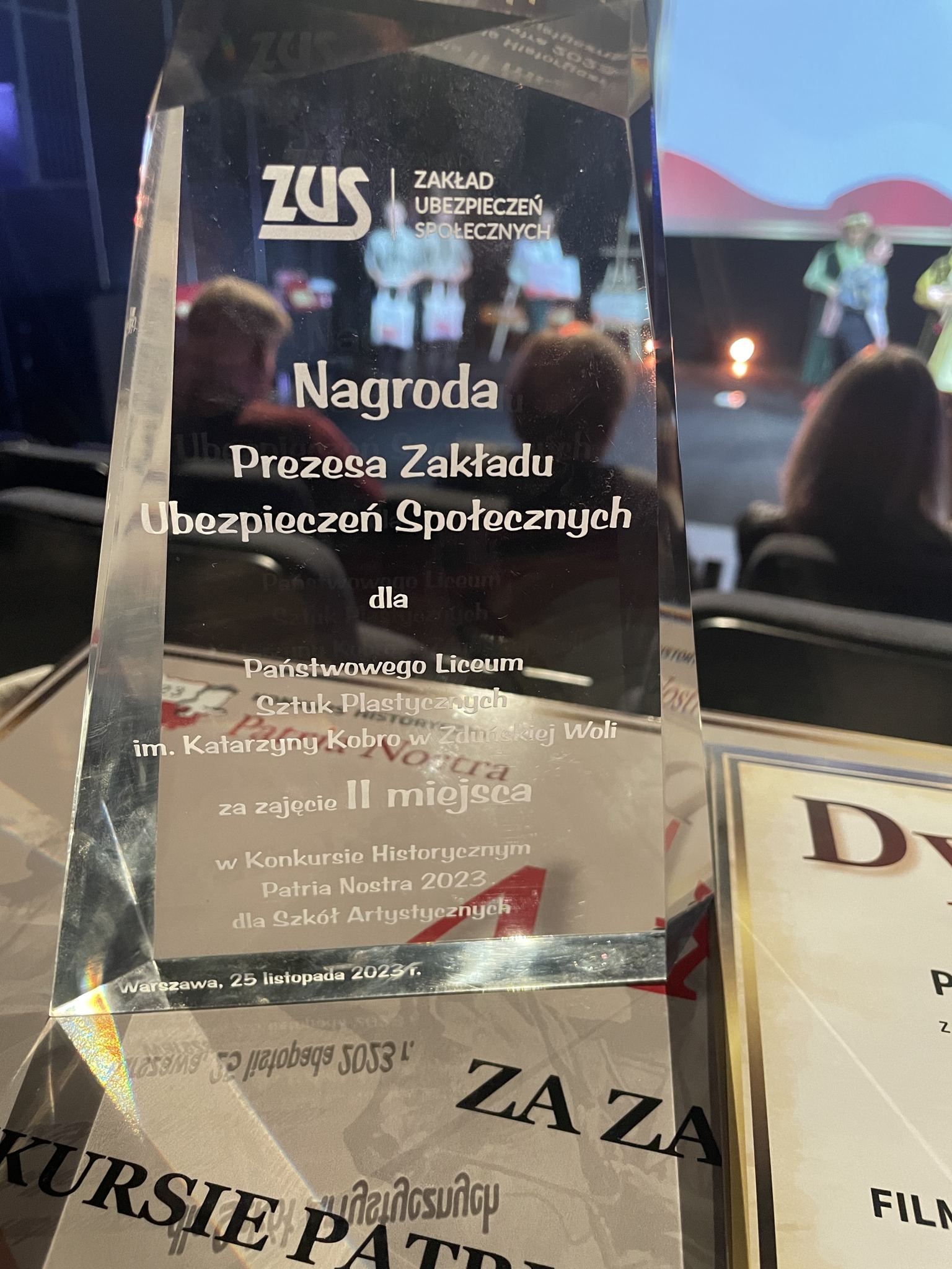 II miejsca dla naszej szkoły podczas I Edycji Filmowego Konkursu Historycznego Patria Nostra dla szkół artystycznych 2023 roku.