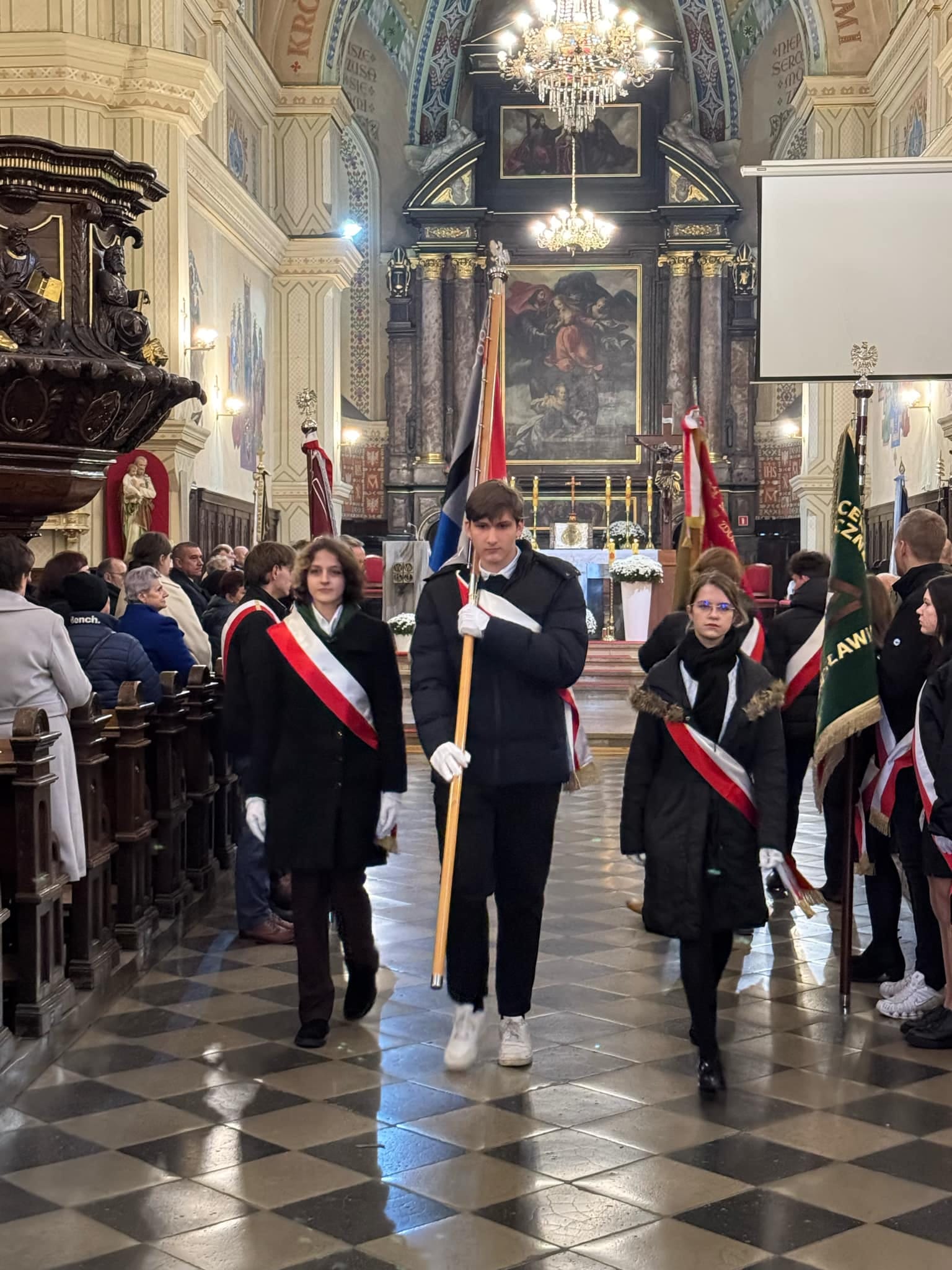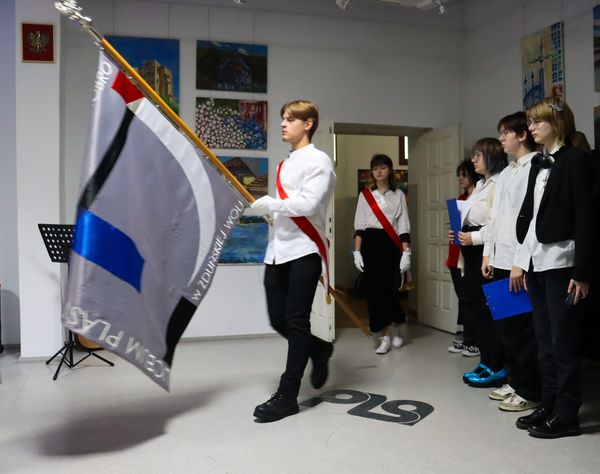 Poczet sztandarowy PLSP pod opieką pana Zbigniewa Gąsiorowskiego. reprezentowali uczniowie: Nikola Krok, Marta Kacprzak,Lena Żurawska, Gabrysia Skowronek,Grzegorz Wlazło i Paweł Malinowski.