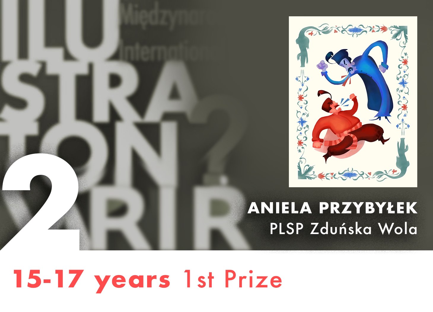 Z przyjemnością informujemy, że uczennica klasy III - Aniela Przybyłek, decyzją Jury Międzynarodowego Konkursu „ILUSTRATON 2” w składzie: dr Szymon Saliński (Polska), Bruno Nunez Coelho (Brazylia) i Ozlem Ayvaz (Turcja) zdobyła 1 nagrodę w kategorii wiekowej 15-17 lat!