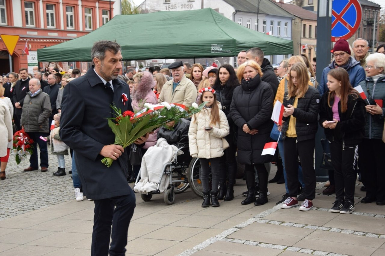 Symboliczną wiązankę kwiatów, przed pomnikiem marszałka Józefa Piłsudskiego, złożył Dyrektor szkoły pan Witold Rajczak.