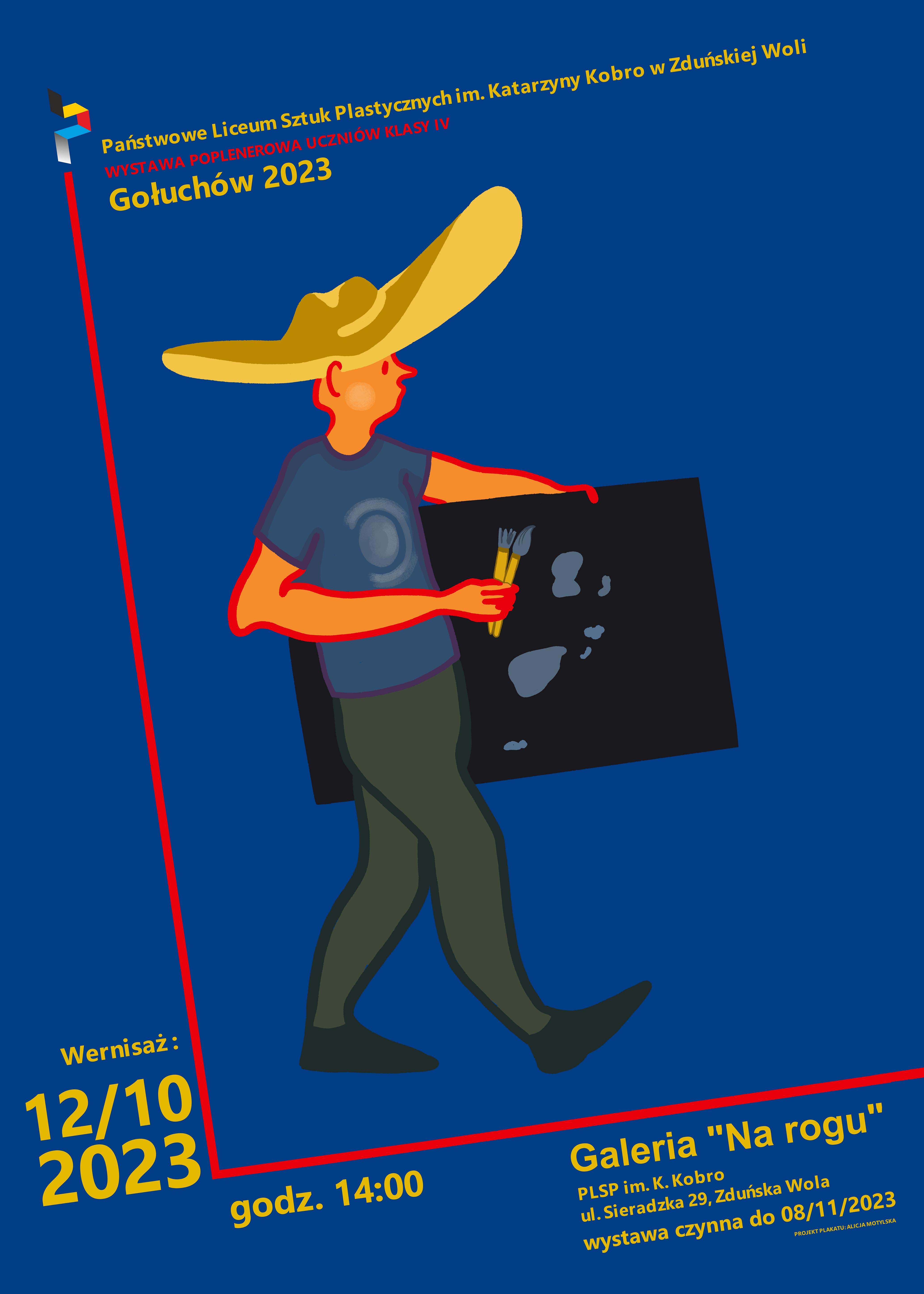 Wernisaż odbędzie się 12 października 2023 r. o godz. 14.00 w Galerii „Na rogu” Państwowego Liceum Sztuk Plastycznych im. Katarzyny Kobro w Zduńskiej Woli, ul. Sieradzka 29.