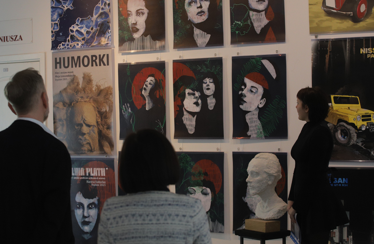 3 i 4 kwietnia 2025 roku odbyły się obrony prac dyplomowych uczniów klas piątych. Wydarzenie miało miejsce w dwóch lokalizacjach: w przestrzeni galeryjnej Wojewódzkiej i Miejskiej Biblioteki Publicznej im. C. K. Norwida w Zielonej Górze oraz na terenie szkoły. Uczniowie zaprezentowali efekty wielomiesięcznej pracy, przedstawiając prace z dwóch specjalizacji: projektowania graficznego i realizacji intermedialnych.