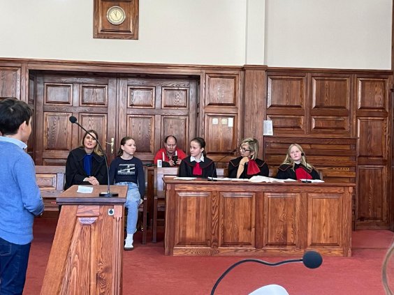 Uczniowie wzięli udział w symulacji rozprawy, podczas której wcielili się w role świadków, pokrzywdzonych, obrońców, oskarżycieli i sędziów.