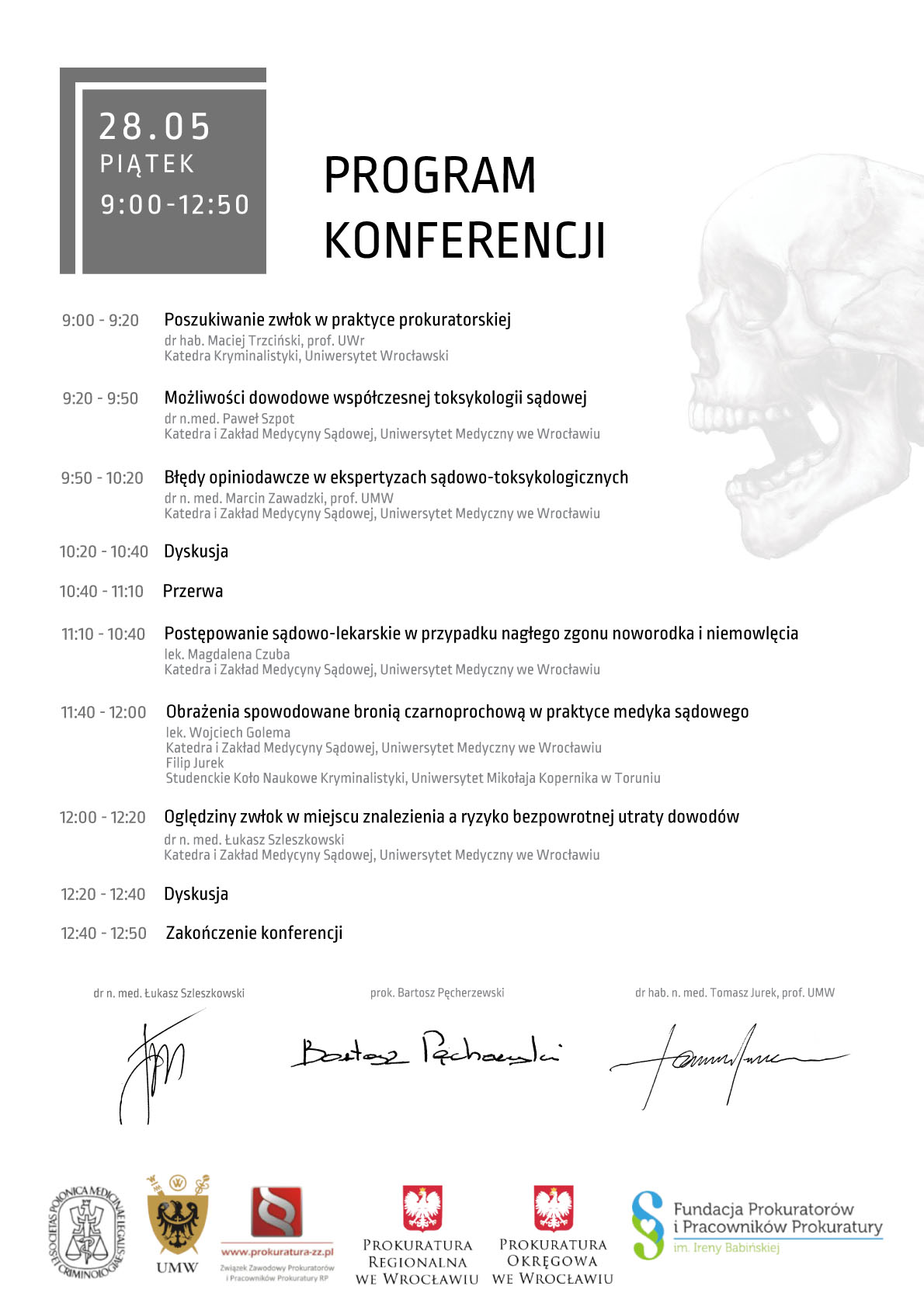 Zapraszamy do udziału w Konferencji naukowo-szkoleniowej pt. "Medycyna Sądowa i Nauki Pokrewne w Postępowaniu Prokuratorskim", która odbędzie się w dniach 27-28 maja 2021 r. Organizatorami są: Prokuratura Regionalna we Wrocławiu, Uniwersytet Piastów Śląskich Katedra Medycyny Sądowej oraz Związek Zawodowy Prokuratorów i Pracowników RP pod honorowym patronatem Fundacji im. Ireny Babińskiej