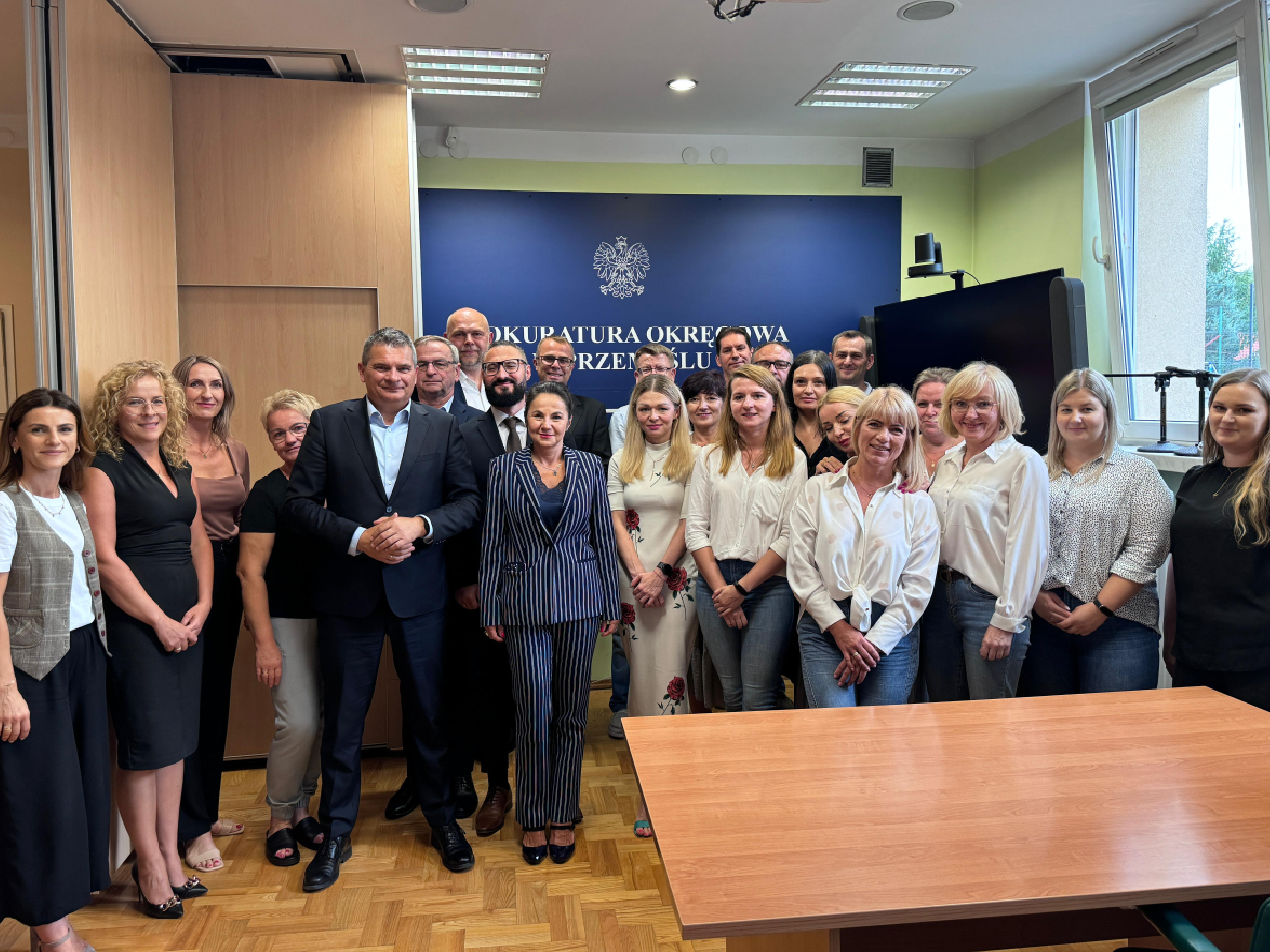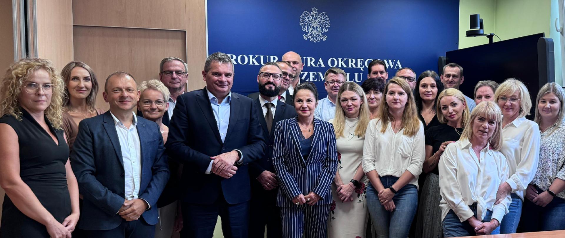 13 września 2024 roku Prokurator Krajowy Dariusz Korneluk odwiedził siedzibę Prokuratury Rejonowej oraz Okręgowej w Przemyślu. W tutejszej sali narad spotkał się kolejno z całą kadrą Prokuratury Rejonowej w Przemyślu a następnie Prokuratury Okręgowej w Przemyślu . Na obu spotkaniach wstępnie podkreślił wagę pracy Prokuratury oraz bezwzględnego honorowania niezależności prokuratura w podejmowaniu wszelkich decyzji procesowych. Podczas wizyty Prokurator Krajowy rozmawiał zarówno z pracownikami administracji jak i prokuratorami na temat bieżących problemów napotykanych w funkcjonowaniu tych jednostek, a także specyfiki pracy prokuratury przygranicznej. Podczas zebrania poruszono także kwestię warunków płacowych kadry administracyjnej Prokuratury i potrzebę ich niezwłocznej poprawy. Postulaty te spotkały się z pełną aprobatą Pana Prokuratora, który poinformował o już podjętych krokach w tym zakresie oraz dalszych planowanych działaniach. Dyskusja z kadrą obu jednostek trwała kilka godzin i zakończyła się wykonaniem wspólnych, pamiątkowych zdjęć.