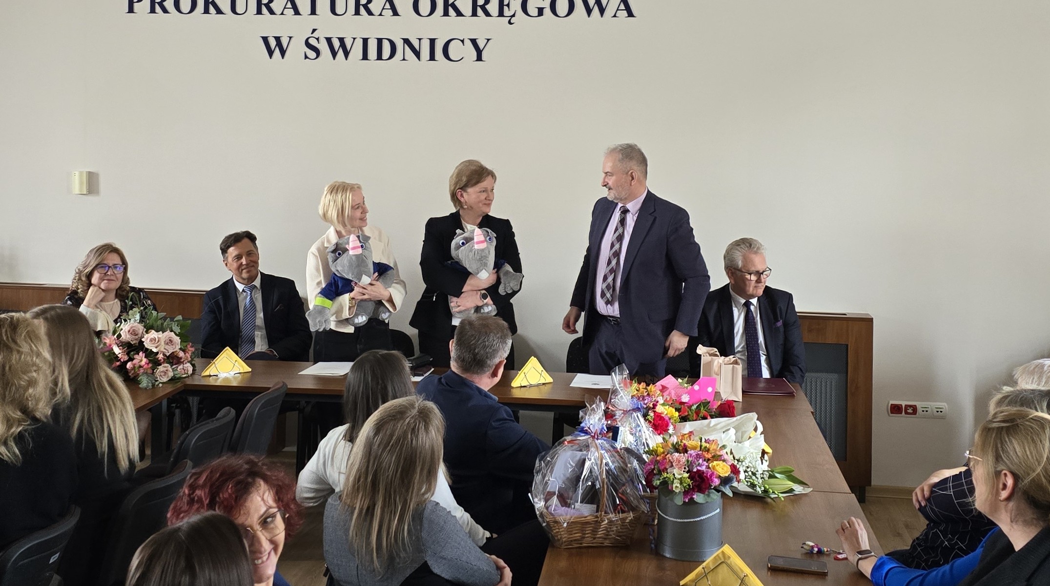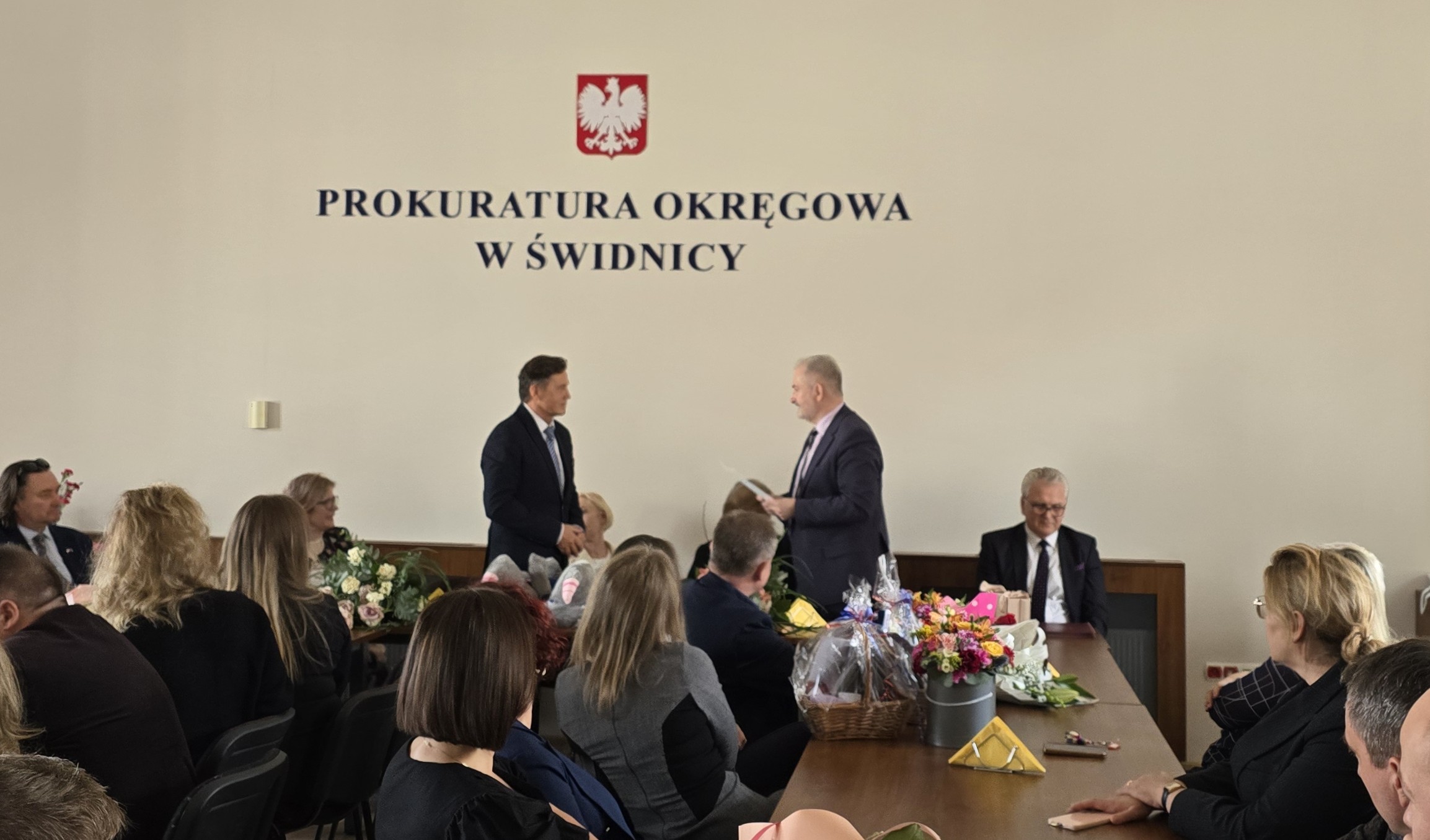 W uroczystym pożegnaniu obydwu odchodzących w stan spoczynku pań wzięli udział Prokuratorzy Okręgowi z Wrocławia, Opola, Legnicy i Jeleniej Góry oraz prokuratorzy i pracownicy jednostek prokuratur okręgu świdnickiego.