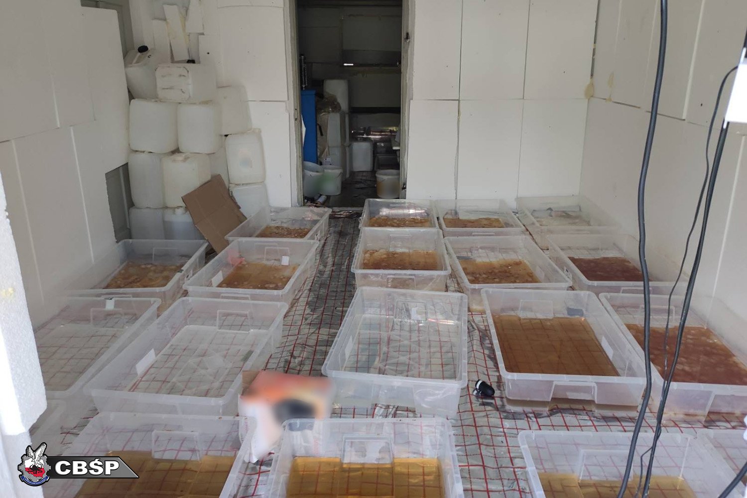 W wyniku przeszukań zabezpieczono ponad 360 litrów płynnego klofedronu, ok. 35 kg skrystalizowanej formy tej substancji, 9000 litrów klefedronu, ponad 114 litrów α-PVP. Szacunkowa wartość zabezpieczonych narkotyków na czarnym rynku wynosi ponad 145 milionów złotych.