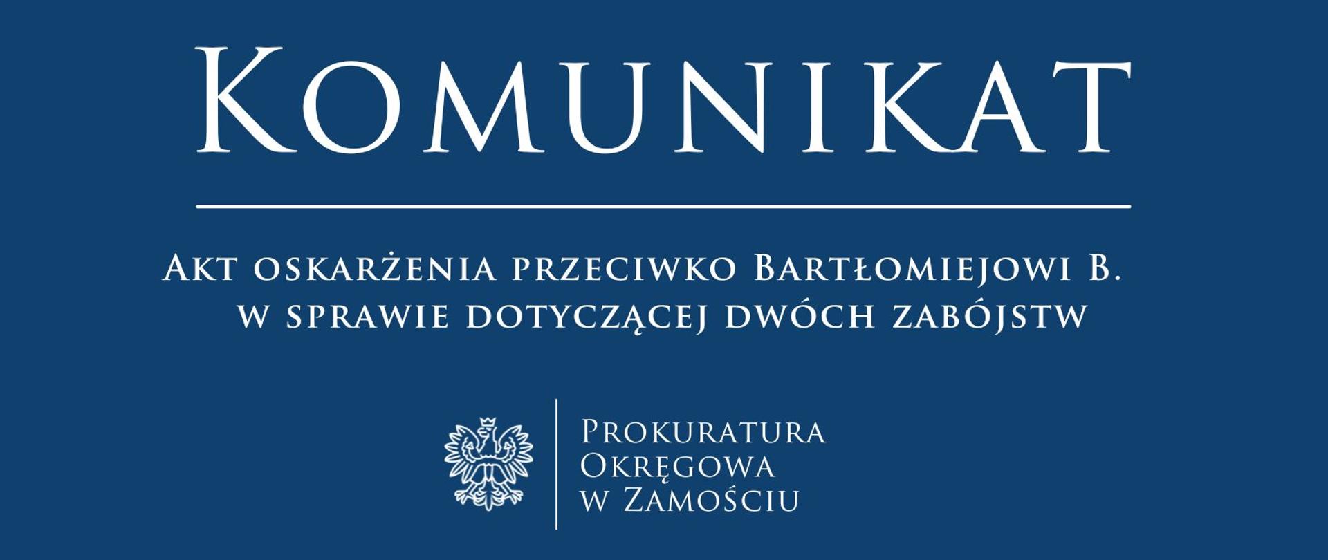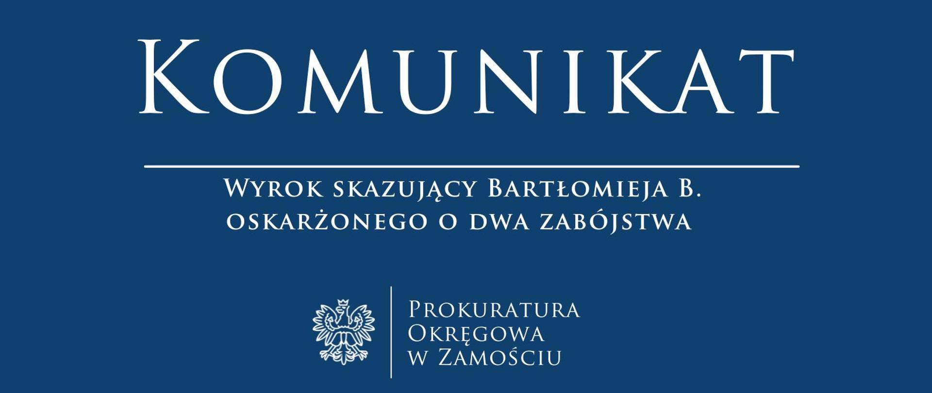 27.01.2026Komunikat prasowy dotyczący wyroku skazującego w sprawie sygn. 3025-1.Ds.62.2024 Prokuratury Okręgowej Zamościu prowadzonej przeciwko Wiesławowi H. dotyczącej zabójstwa w Biłgoraju.Prokuratura Okręgowa w Zamościu w dniu 13 czerwca 2025r. skierowała do Sądu Okręgowego w Zamościu akt oskarżenia przeciwko Wiesławowi H., w którym oskarżono go o popełnienie dwóch przestępstw: zabójstwa swojej żony tj. czynu z art. 148 par. 1 k.k. i sprowadzenia bezpośredniego niebezpieczeństwa katastrofy budynku tj. czynu z art. 164 par. 1 k.k.
